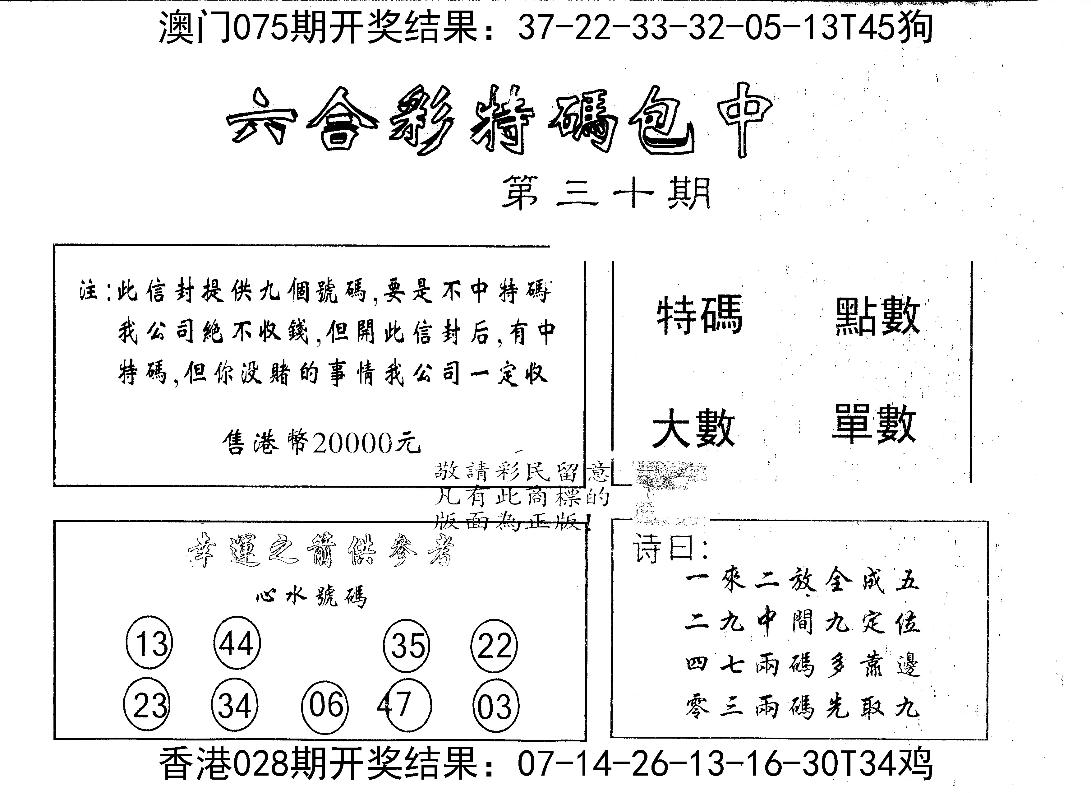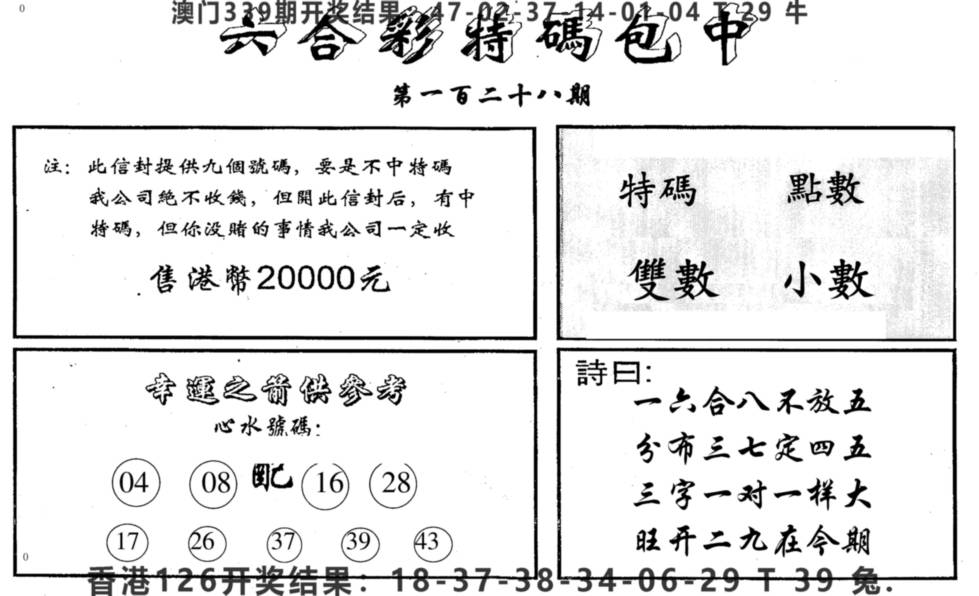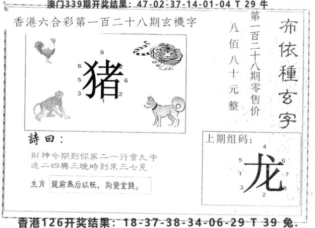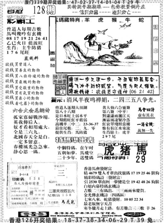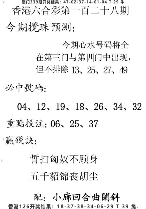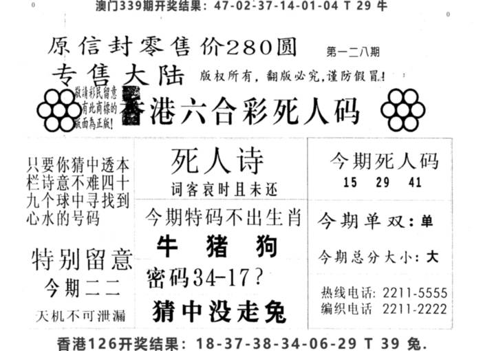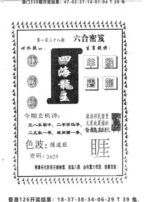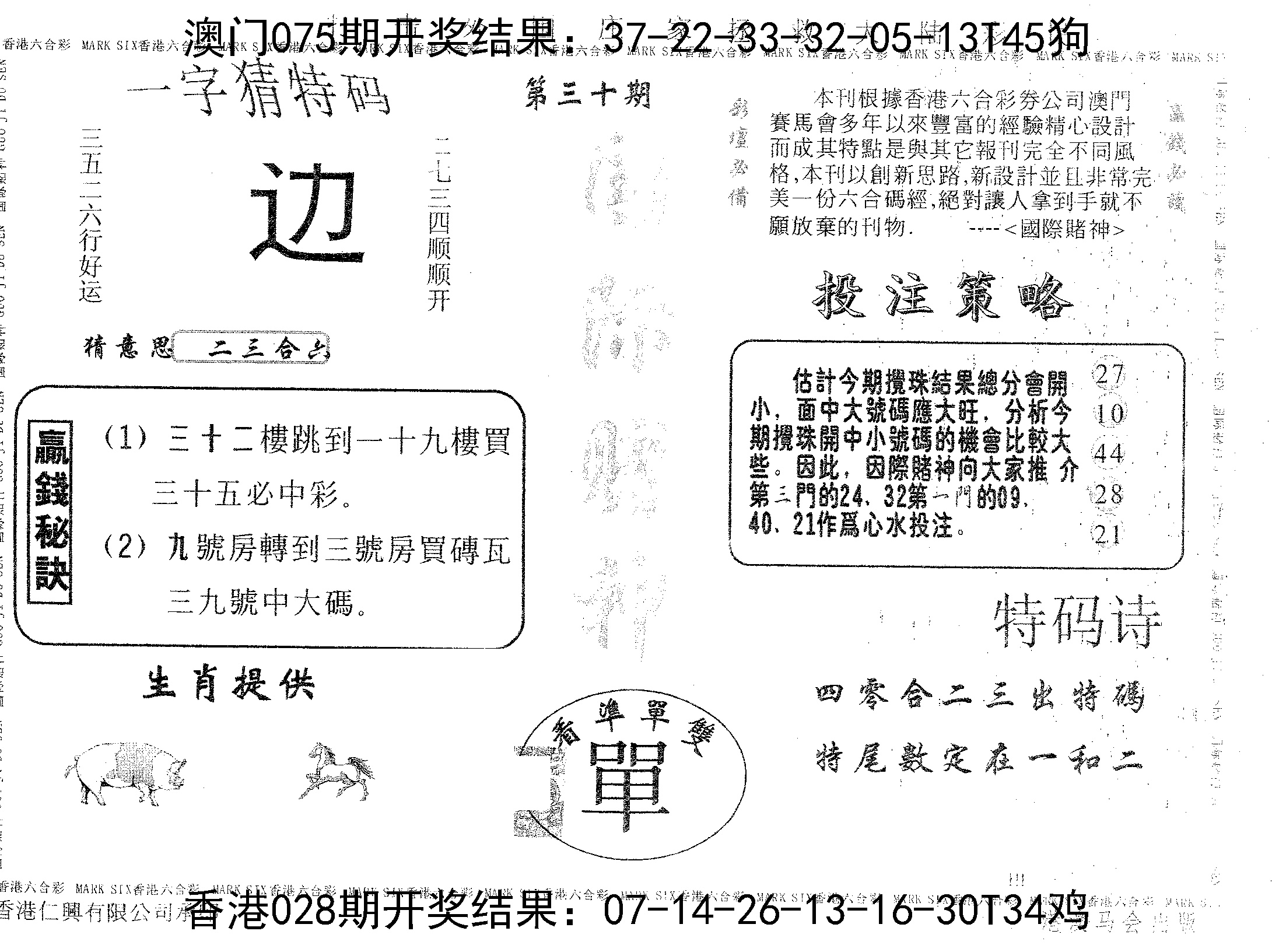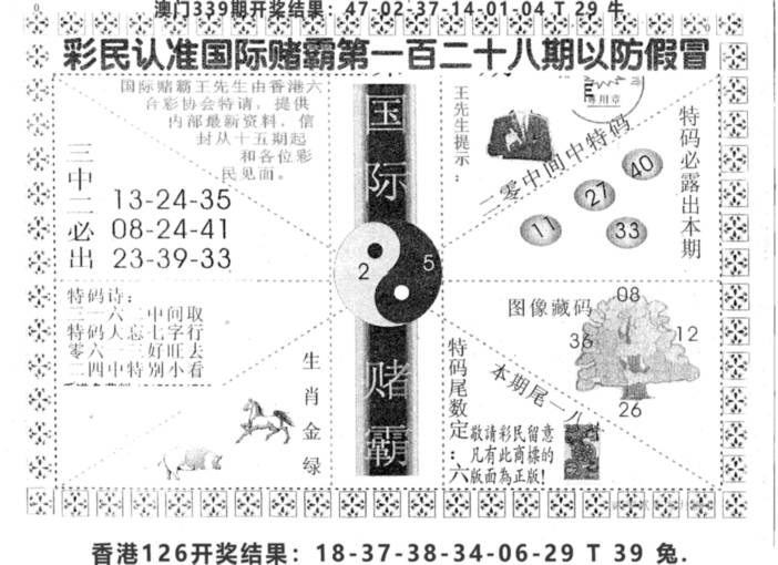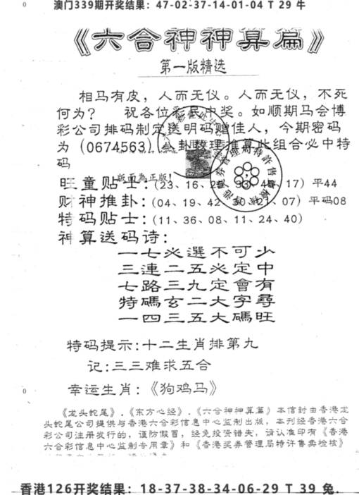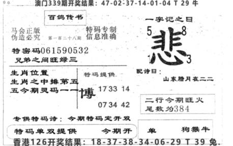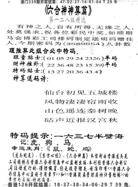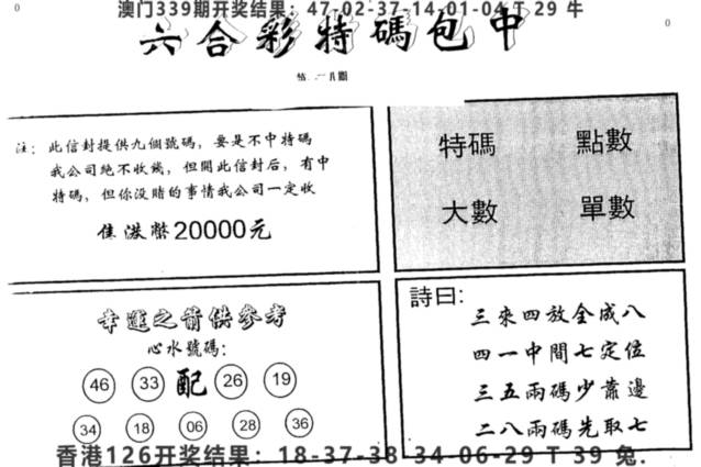 ·香港六合彩葡京印刷图库提倡有節制博彩,下重注須防上有父老下有妻小。