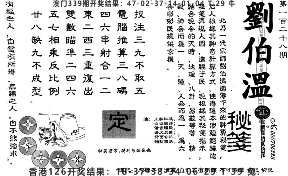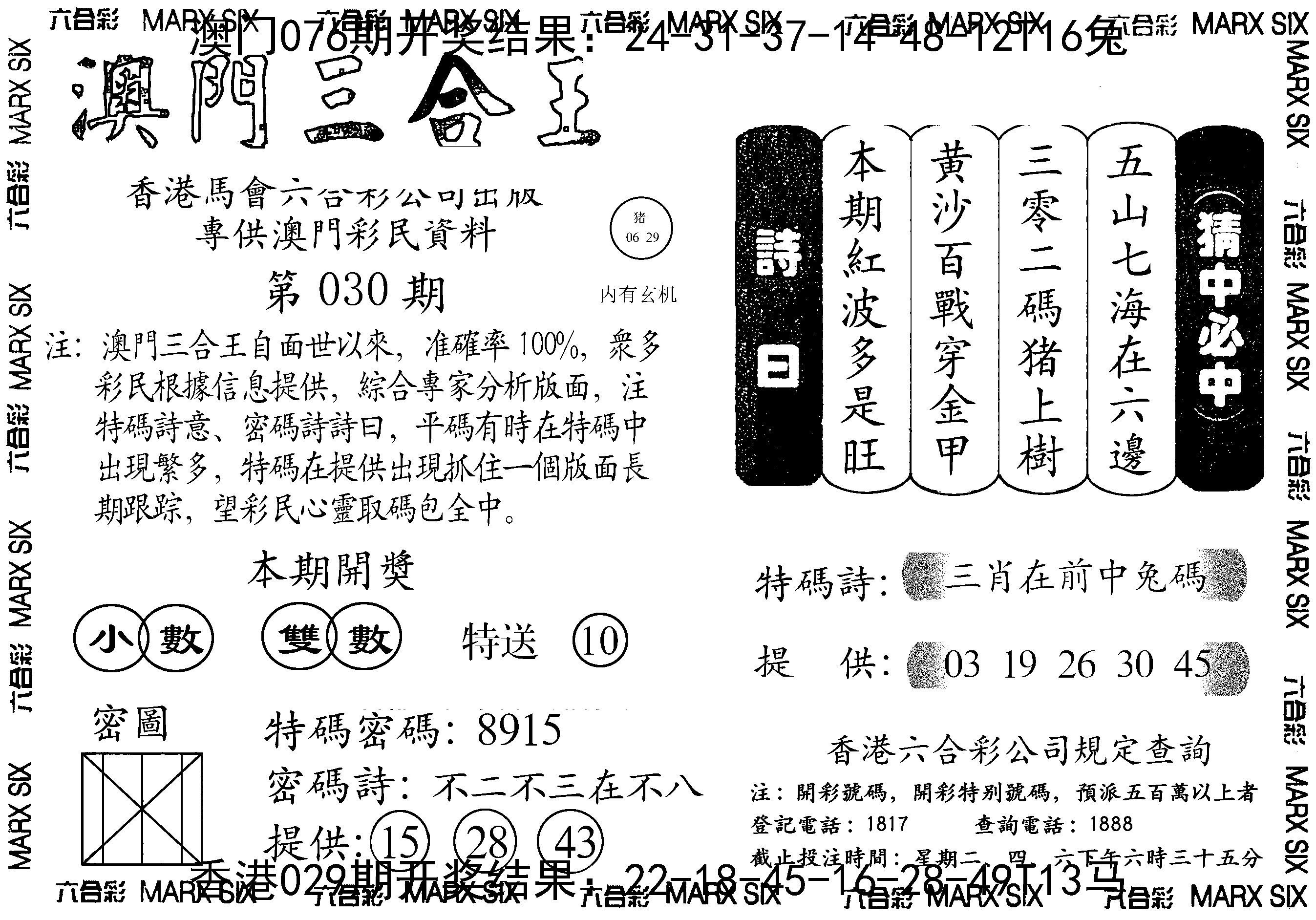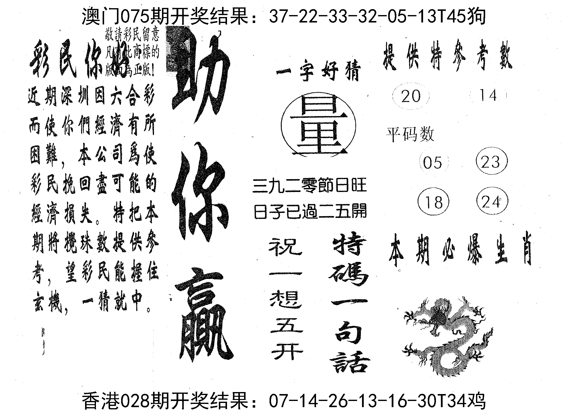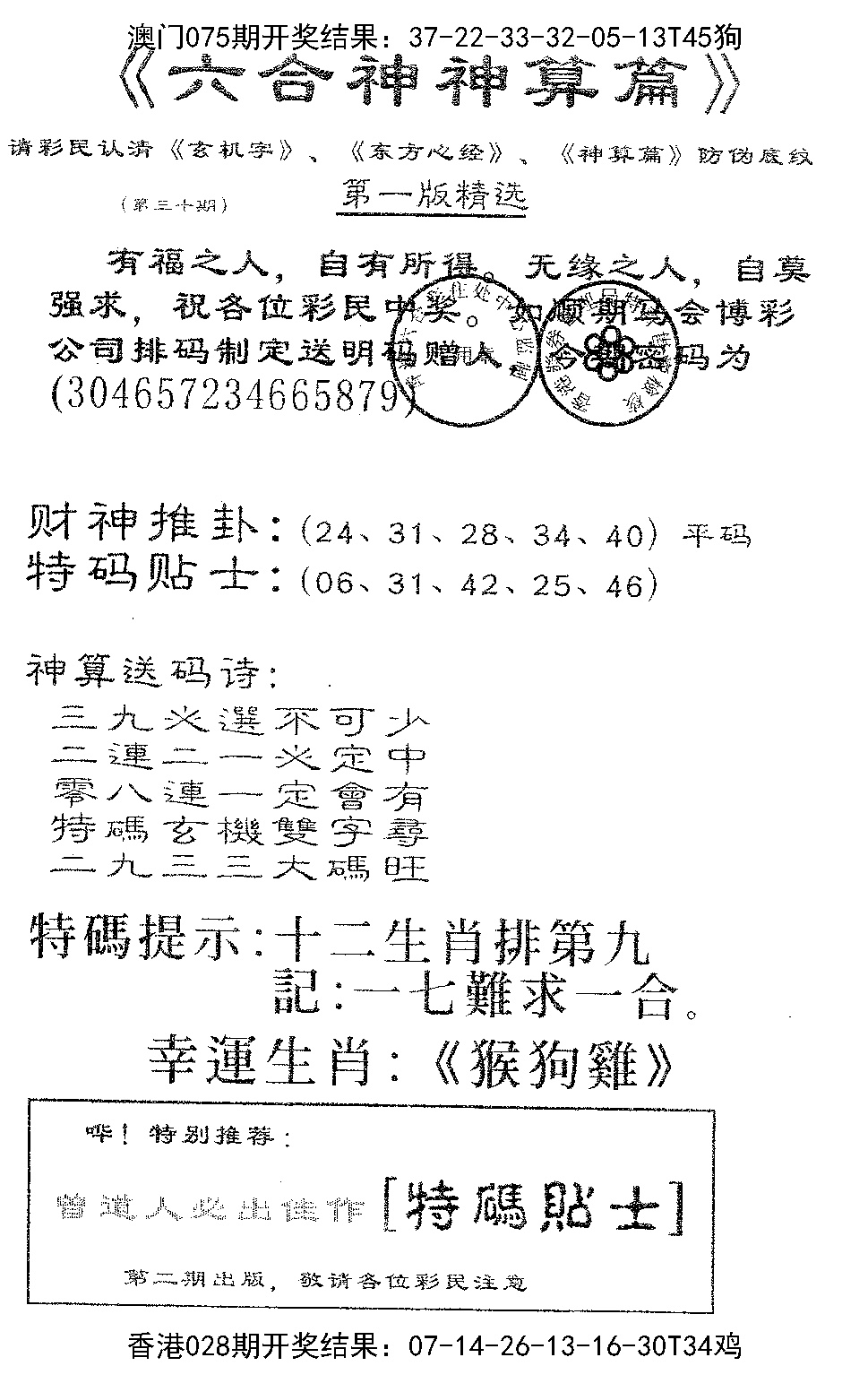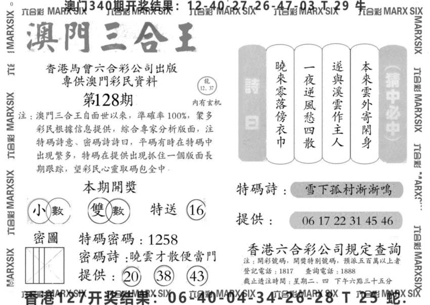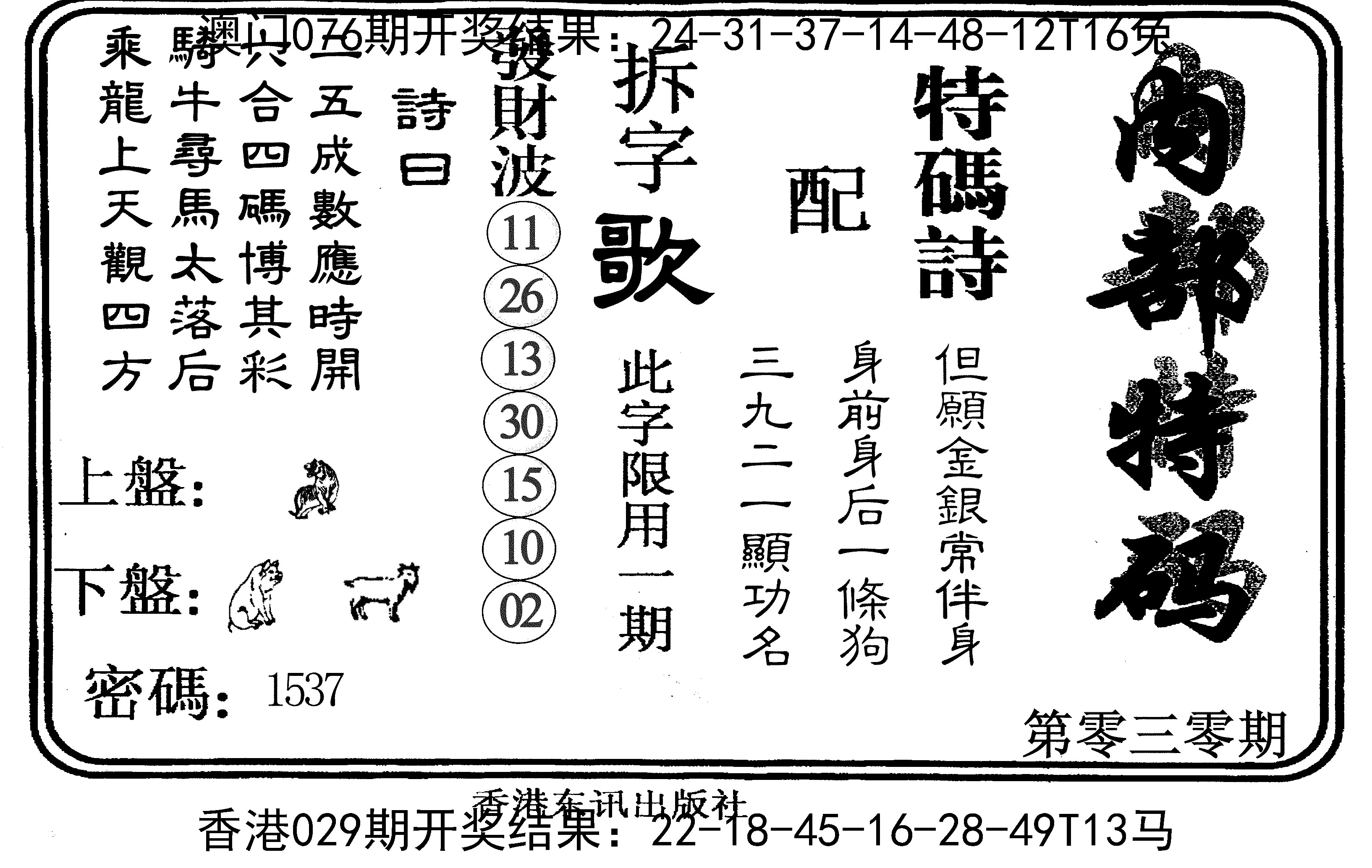 ·香港六合彩葡京印刷图库提倡有節制博彩,下重注須防上有父老下有妻小。