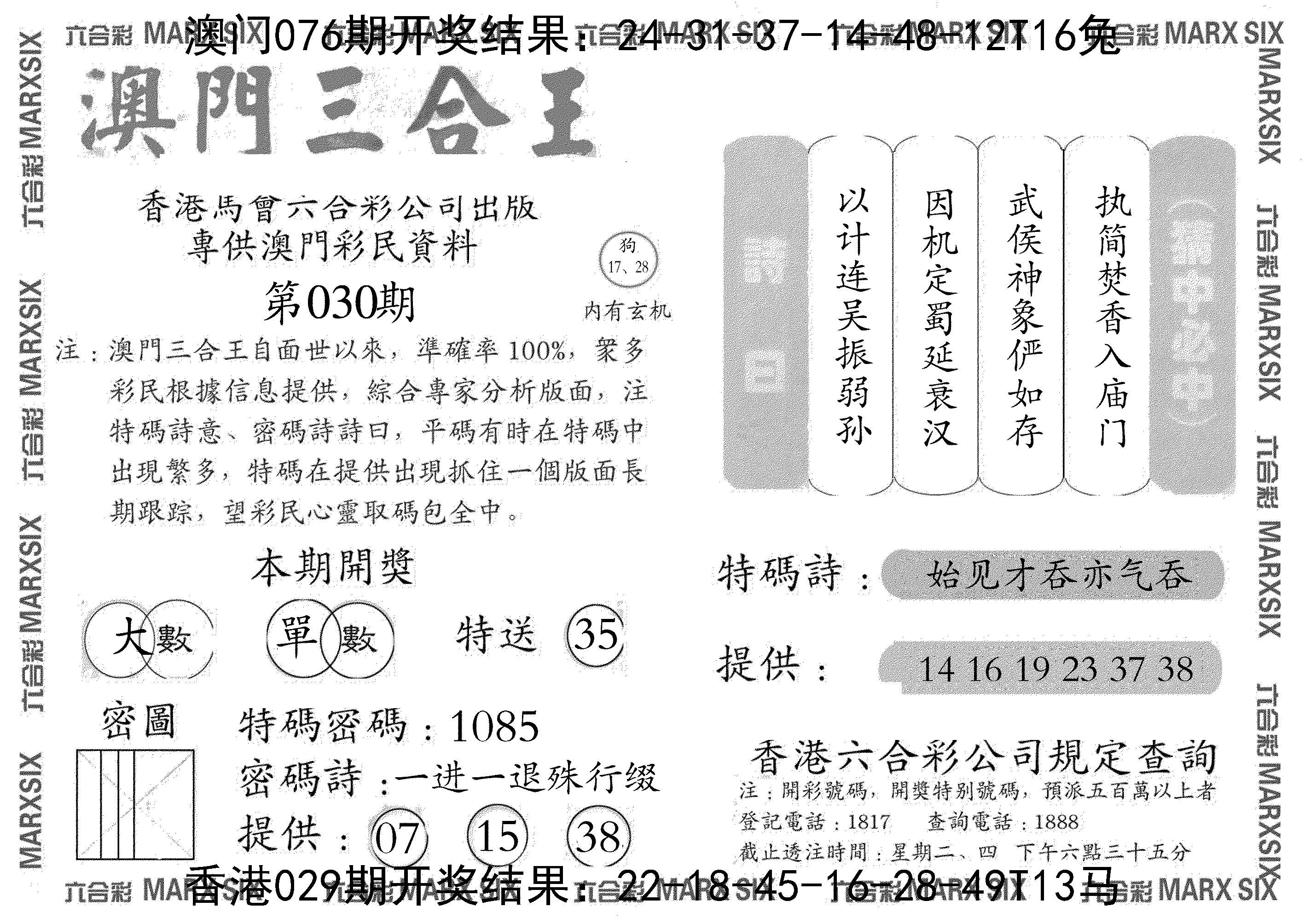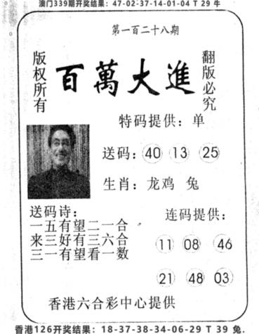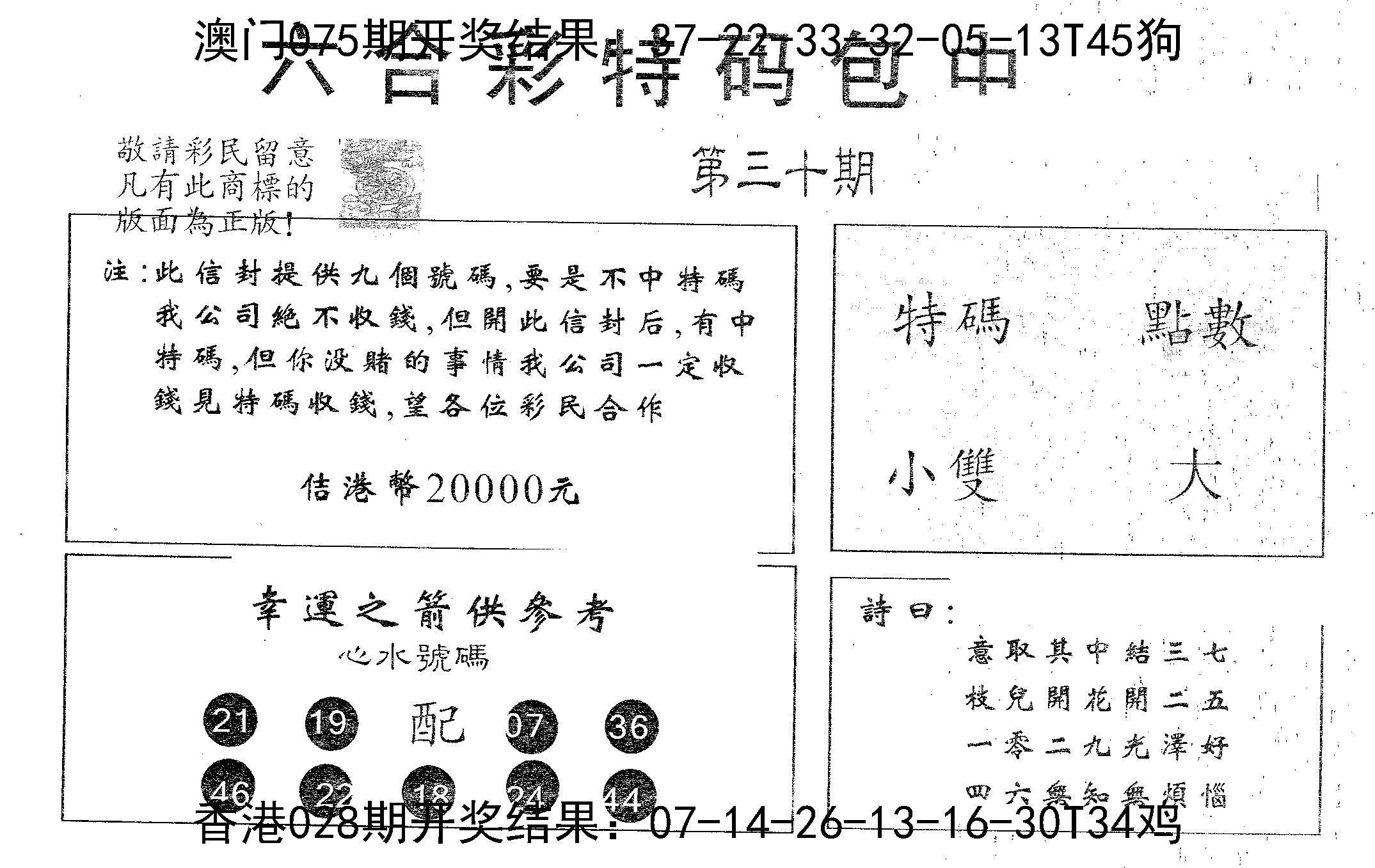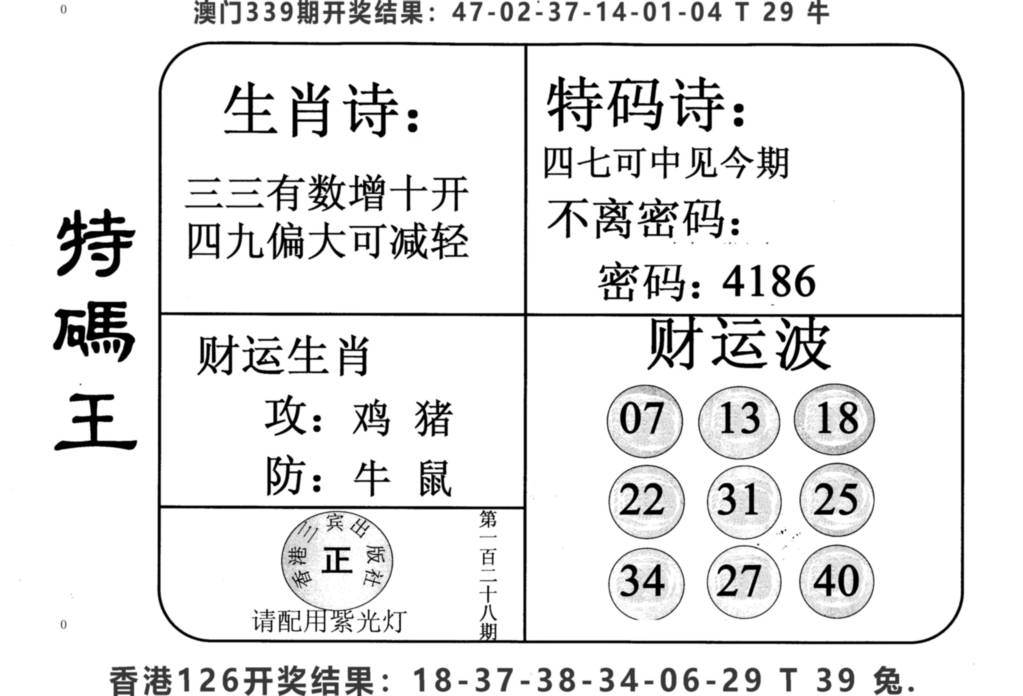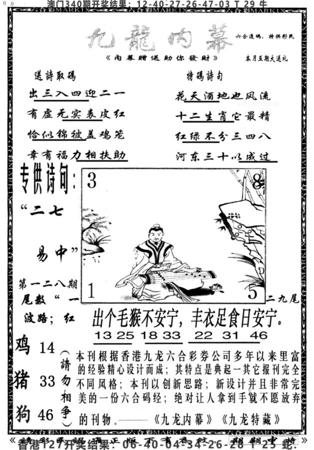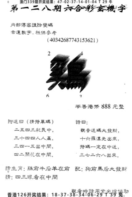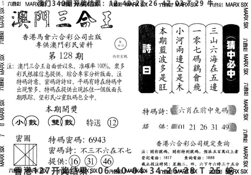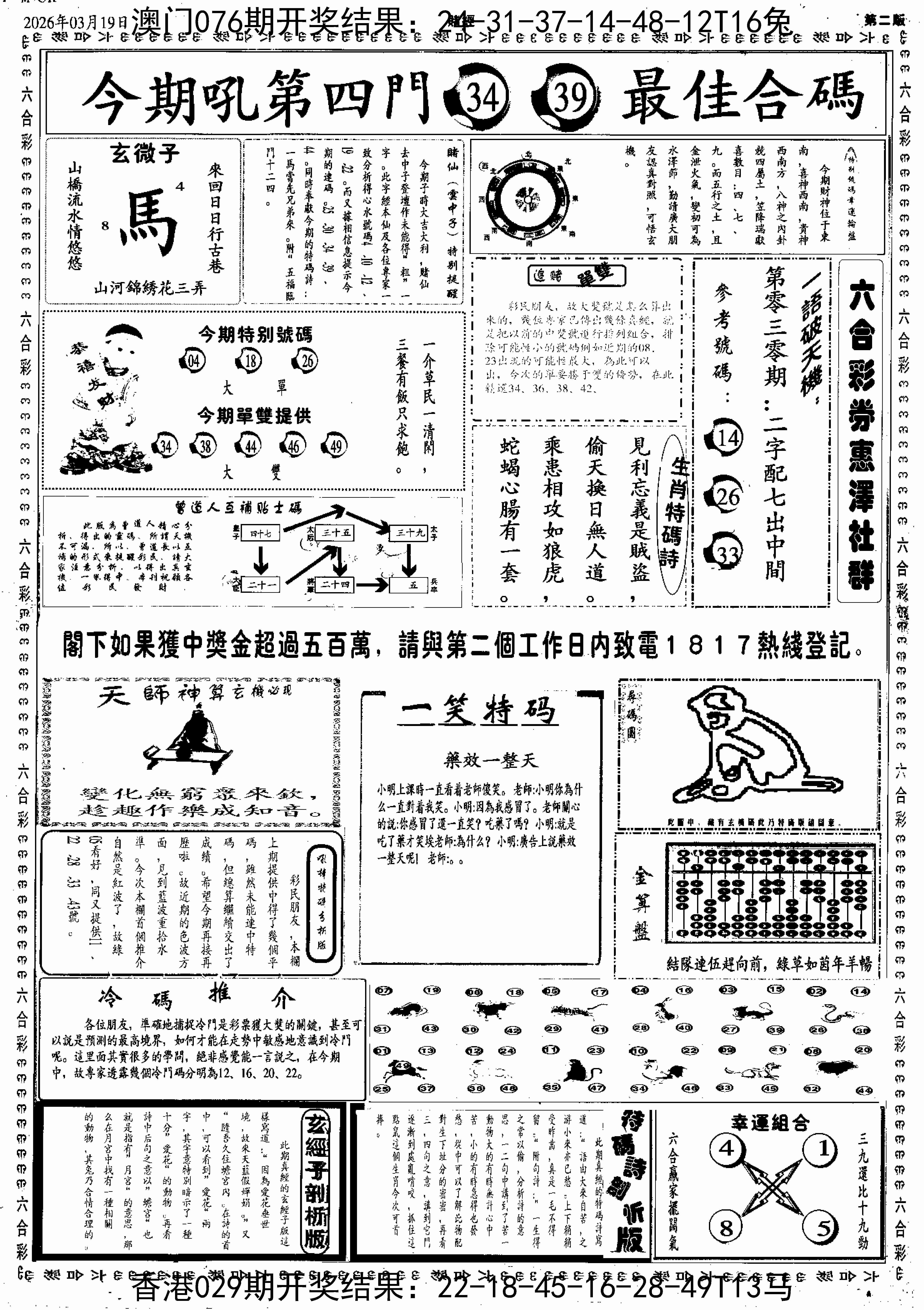 ·香港六合彩葡京印刷图库提倡有節制博彩,下重注須防上有父老下有妻小。