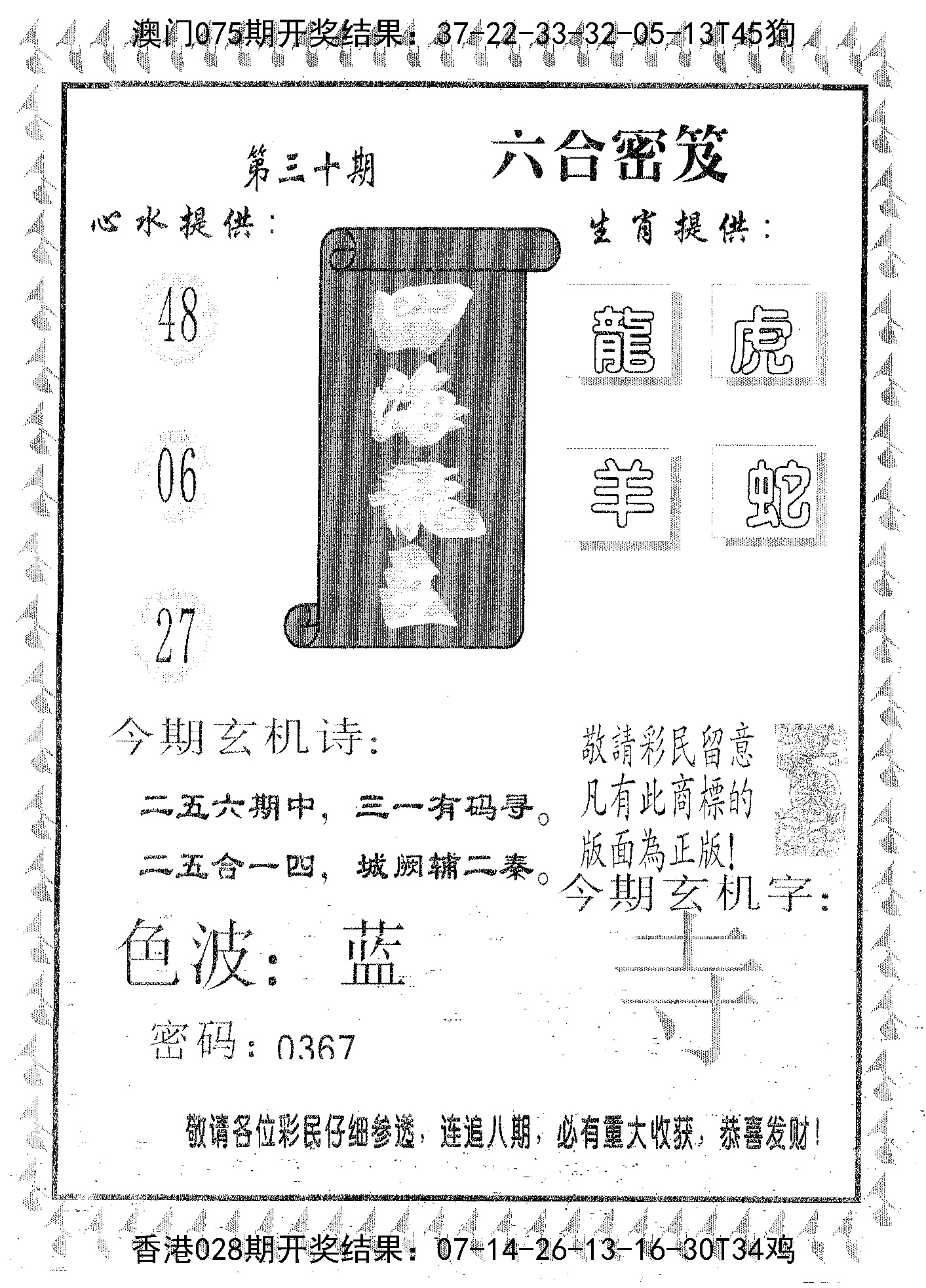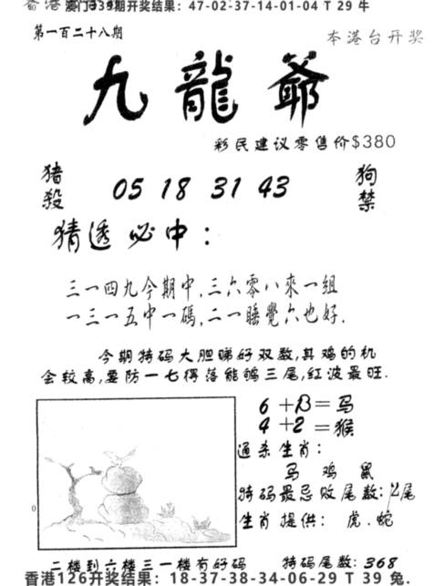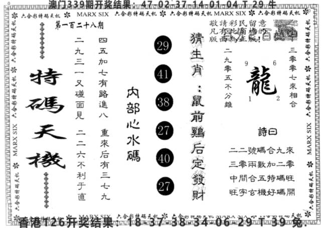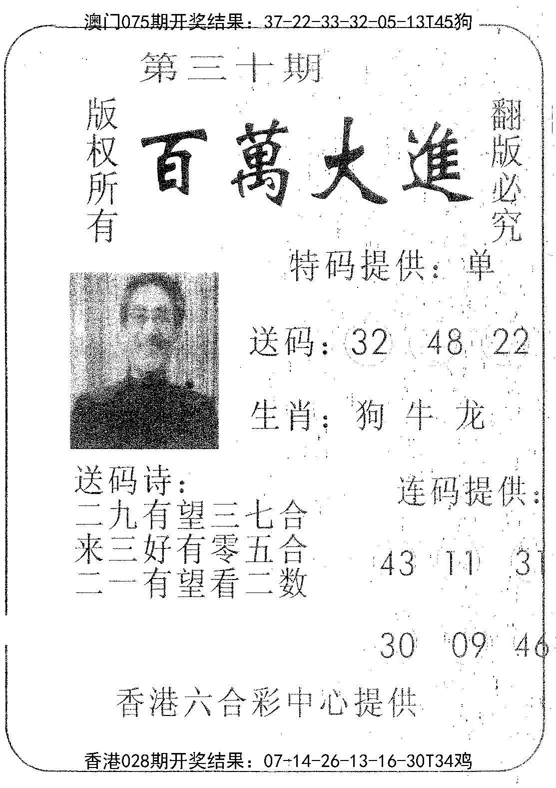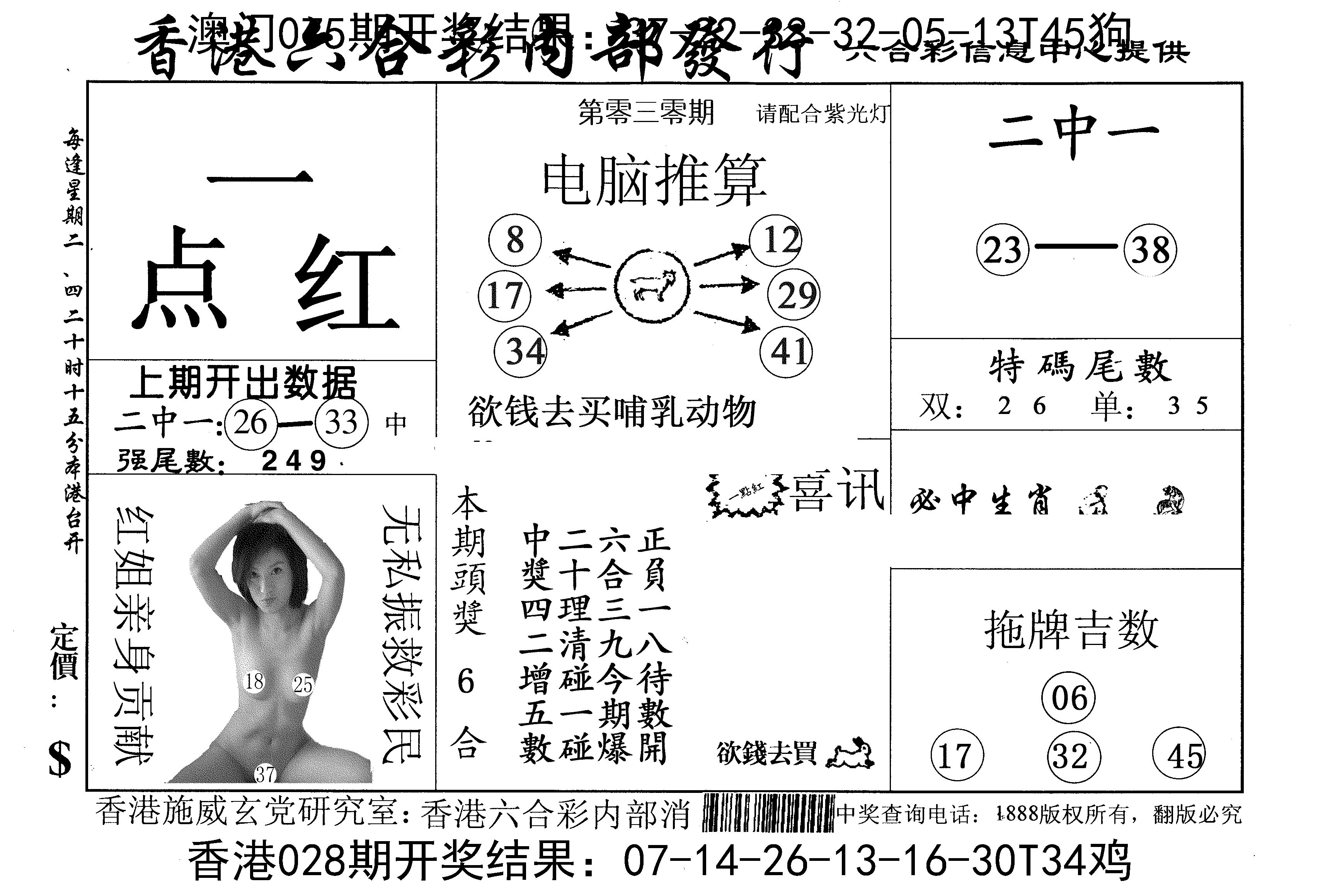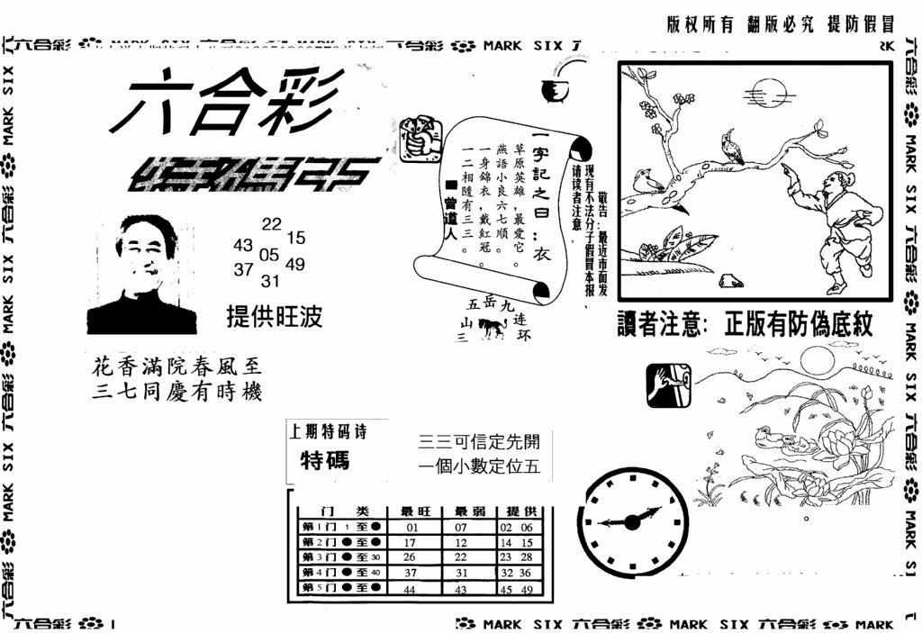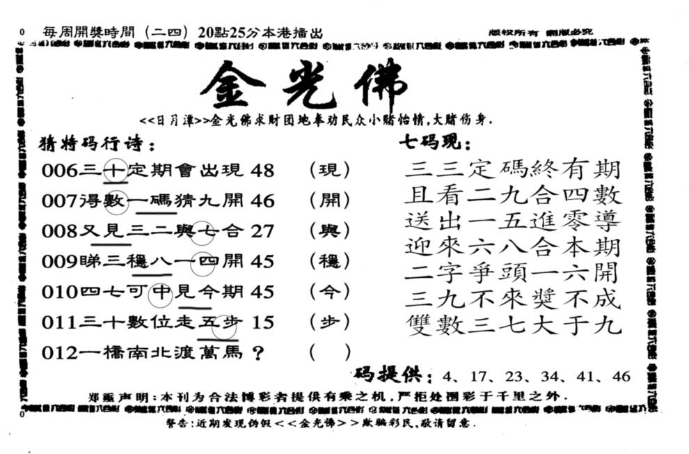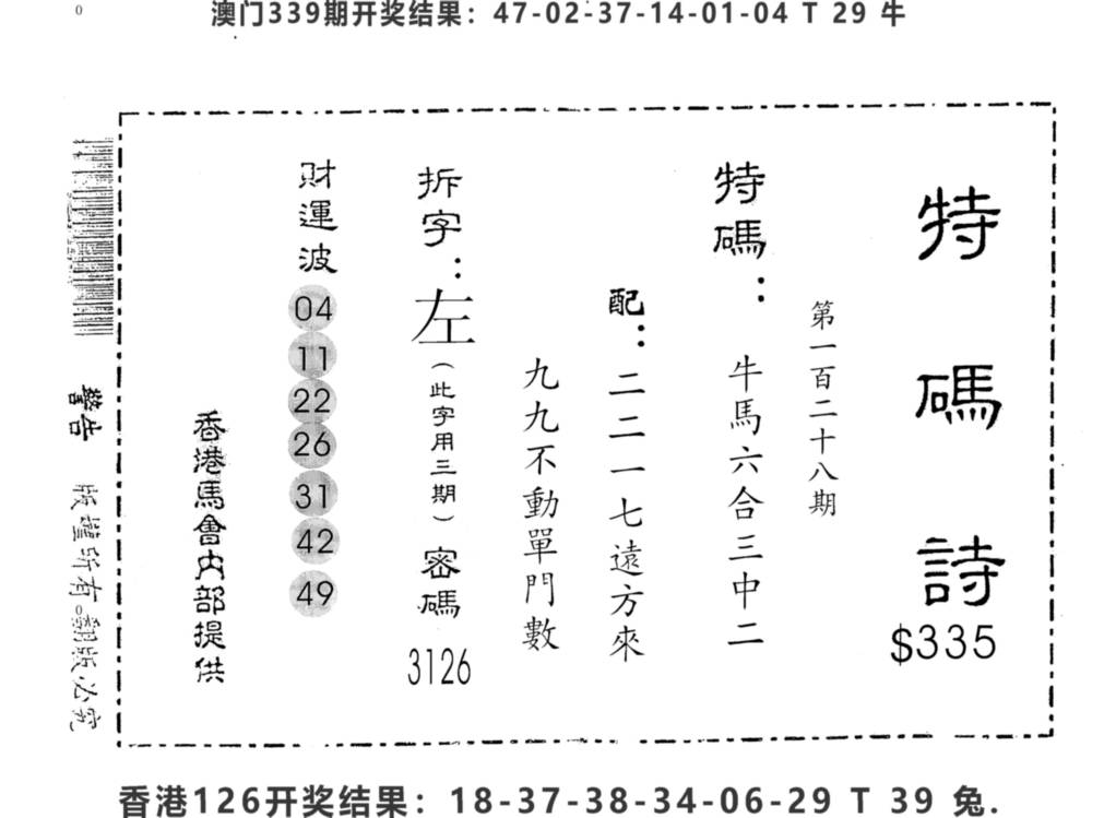·香港六合彩葡京印刷图库提倡有節制博彩,下重注須防上有父老下有妻小。