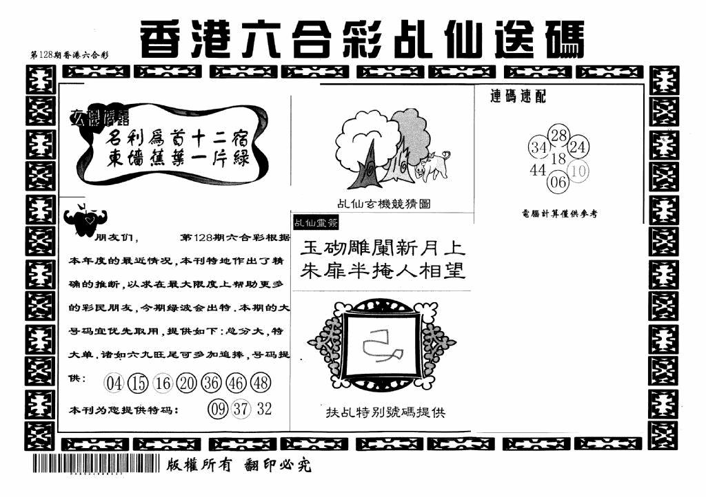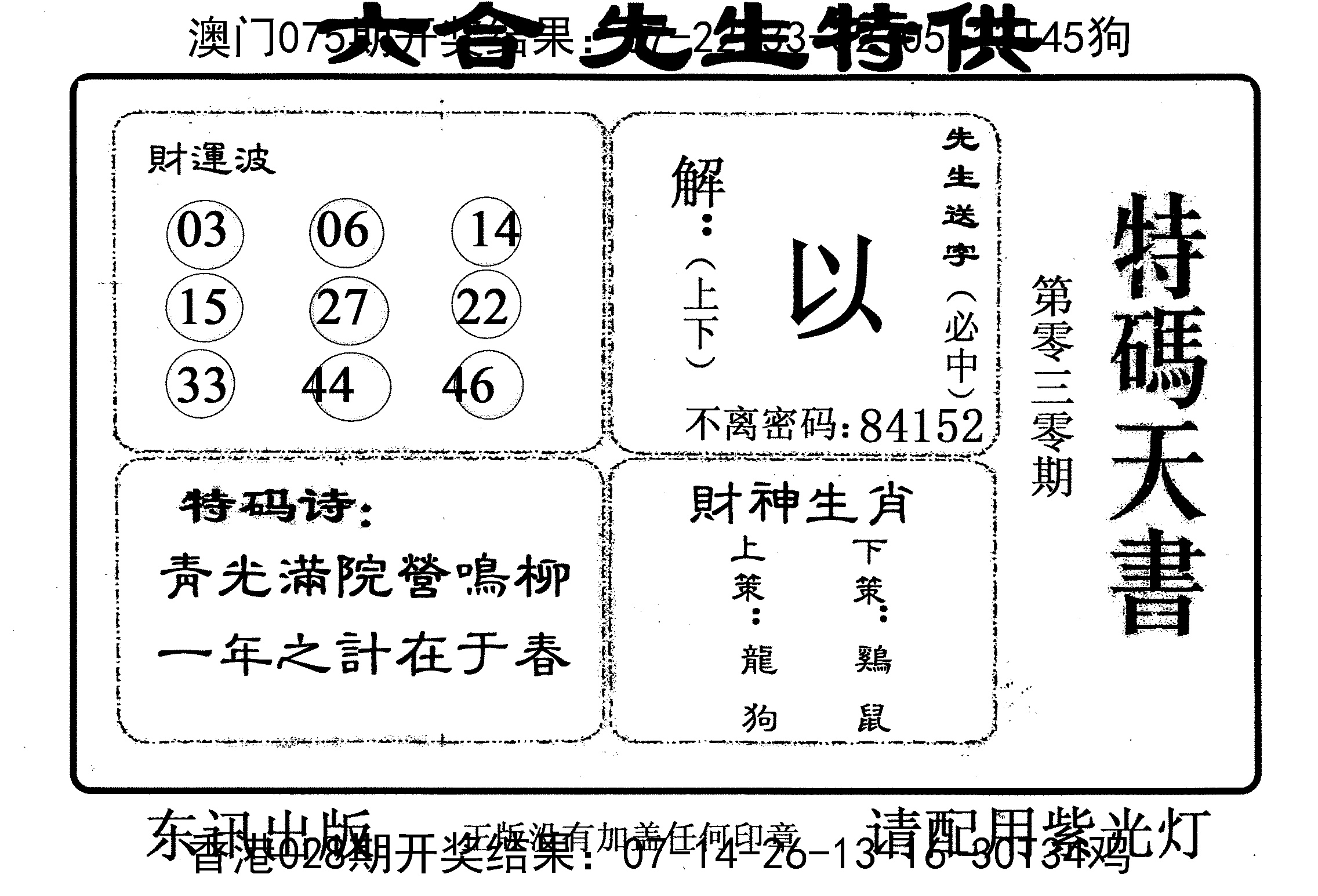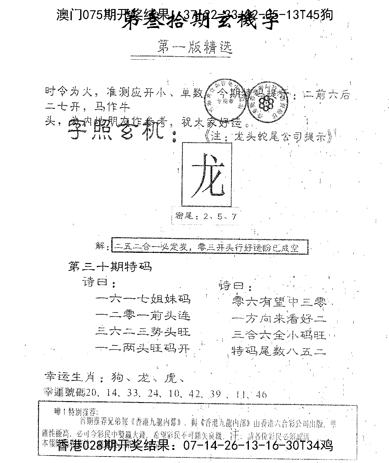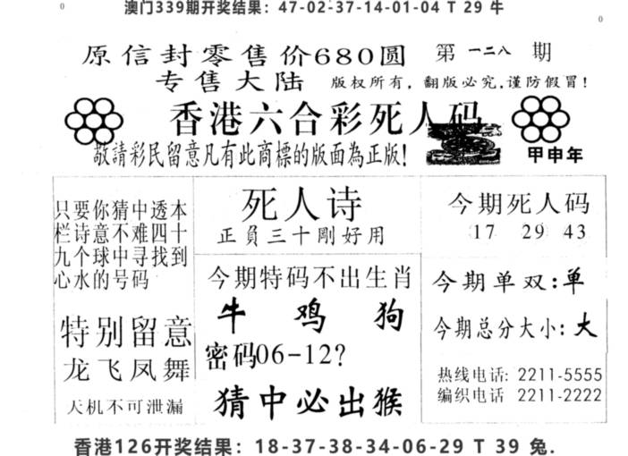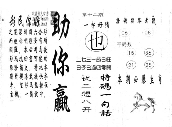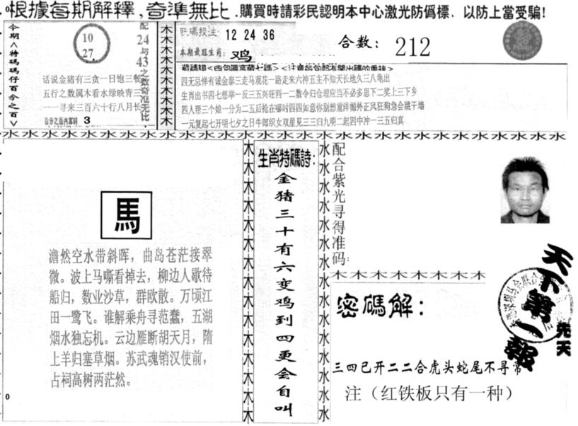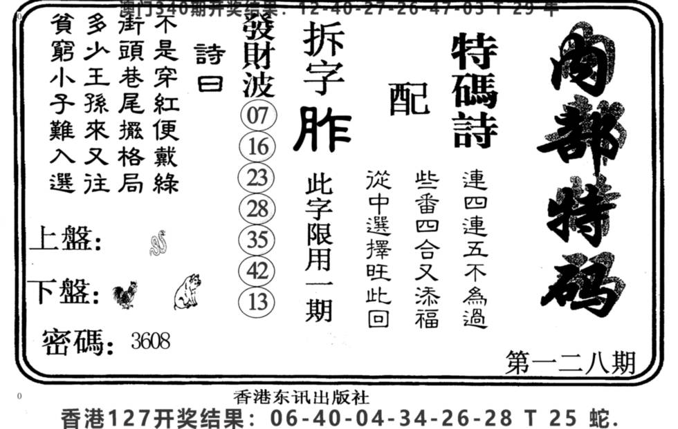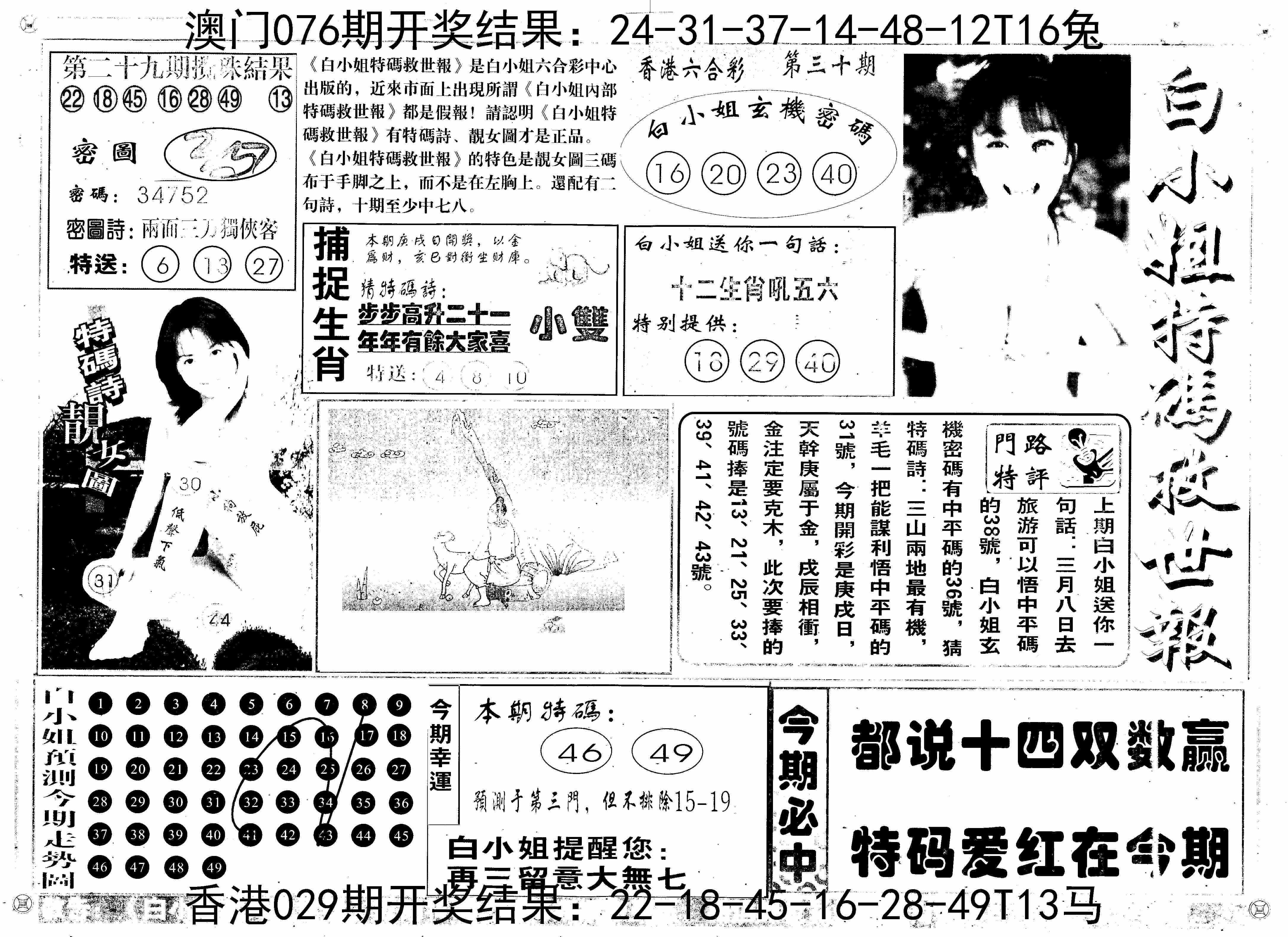 ·香港六合彩葡京印刷图库提倡有節制博彩,下重注須防上有父老下有妻小。