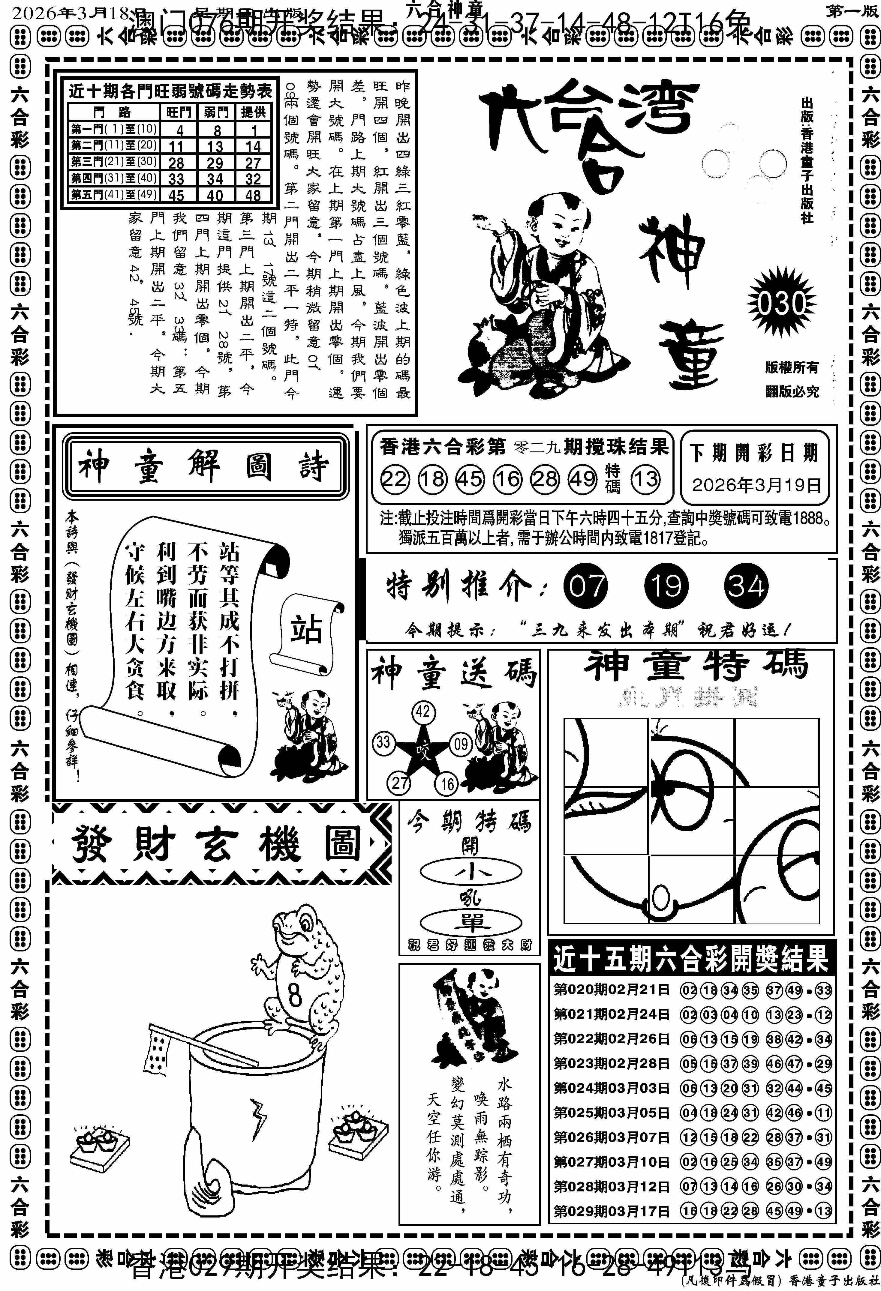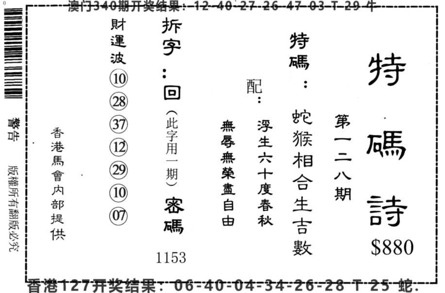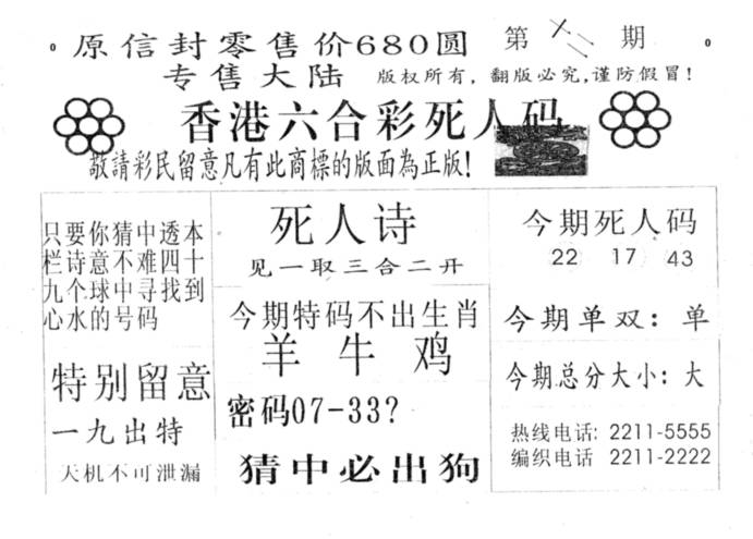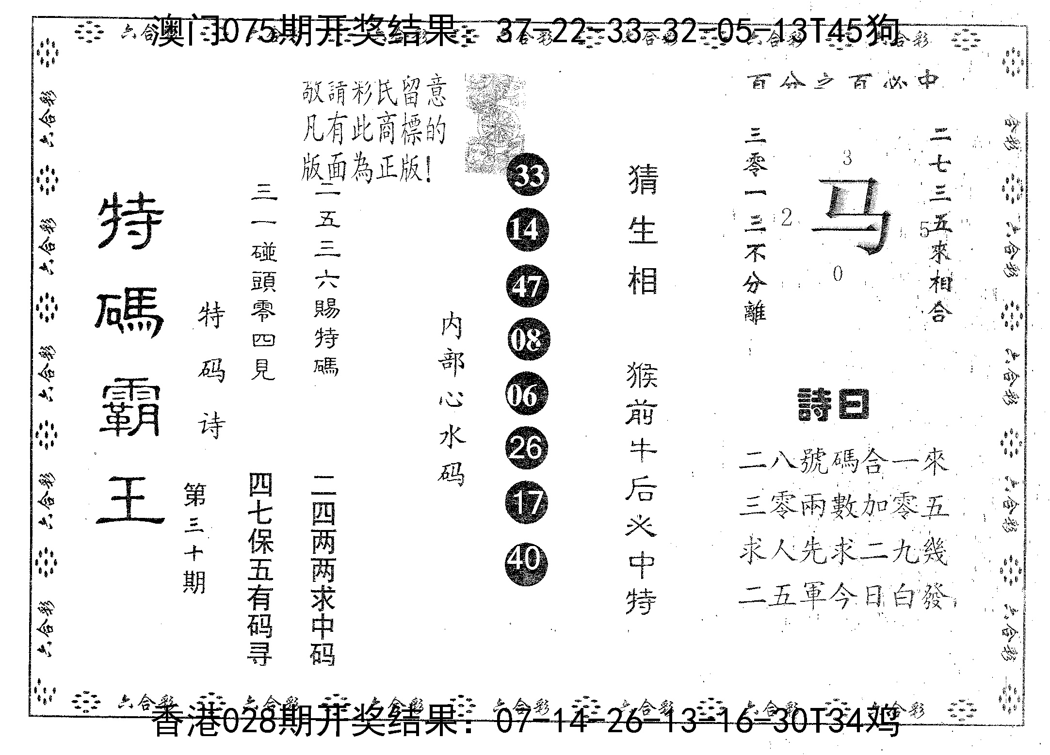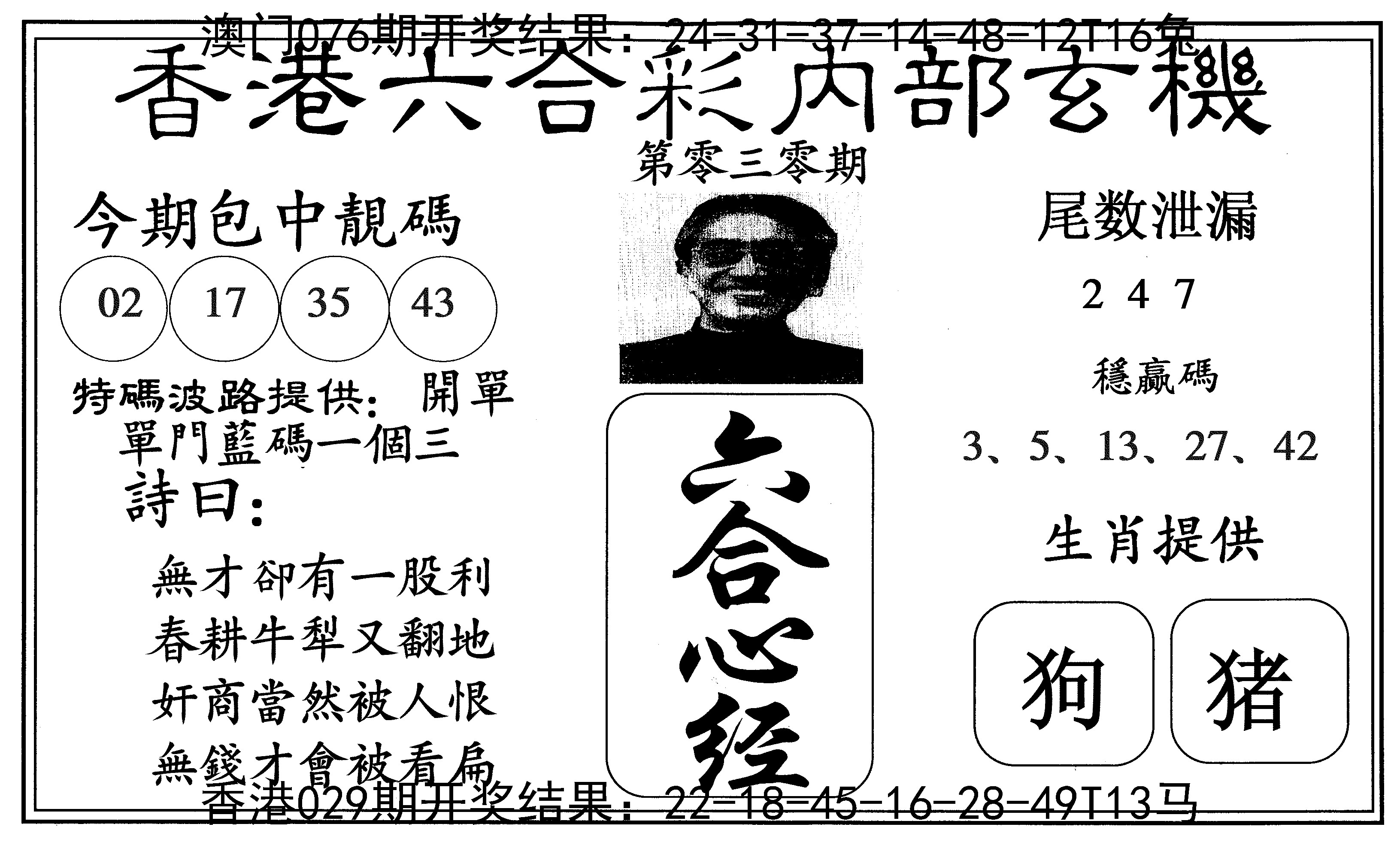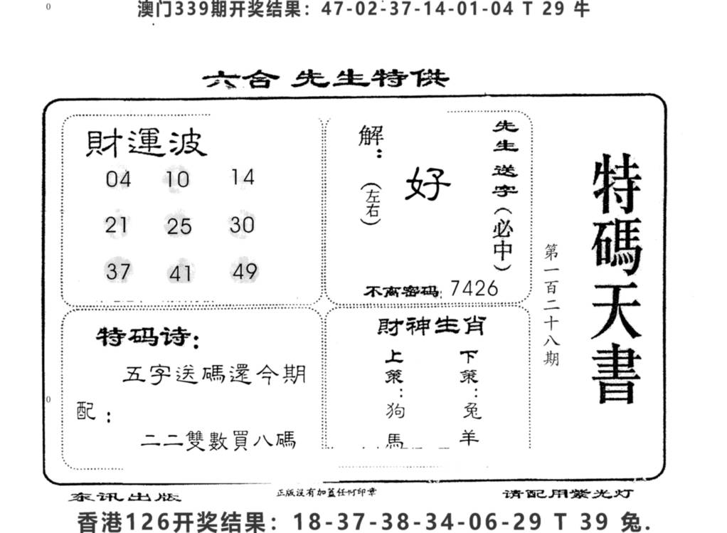 ·香港六合彩葡京印刷图库提倡有節制博彩,下重注須防上有父老下有妻小。