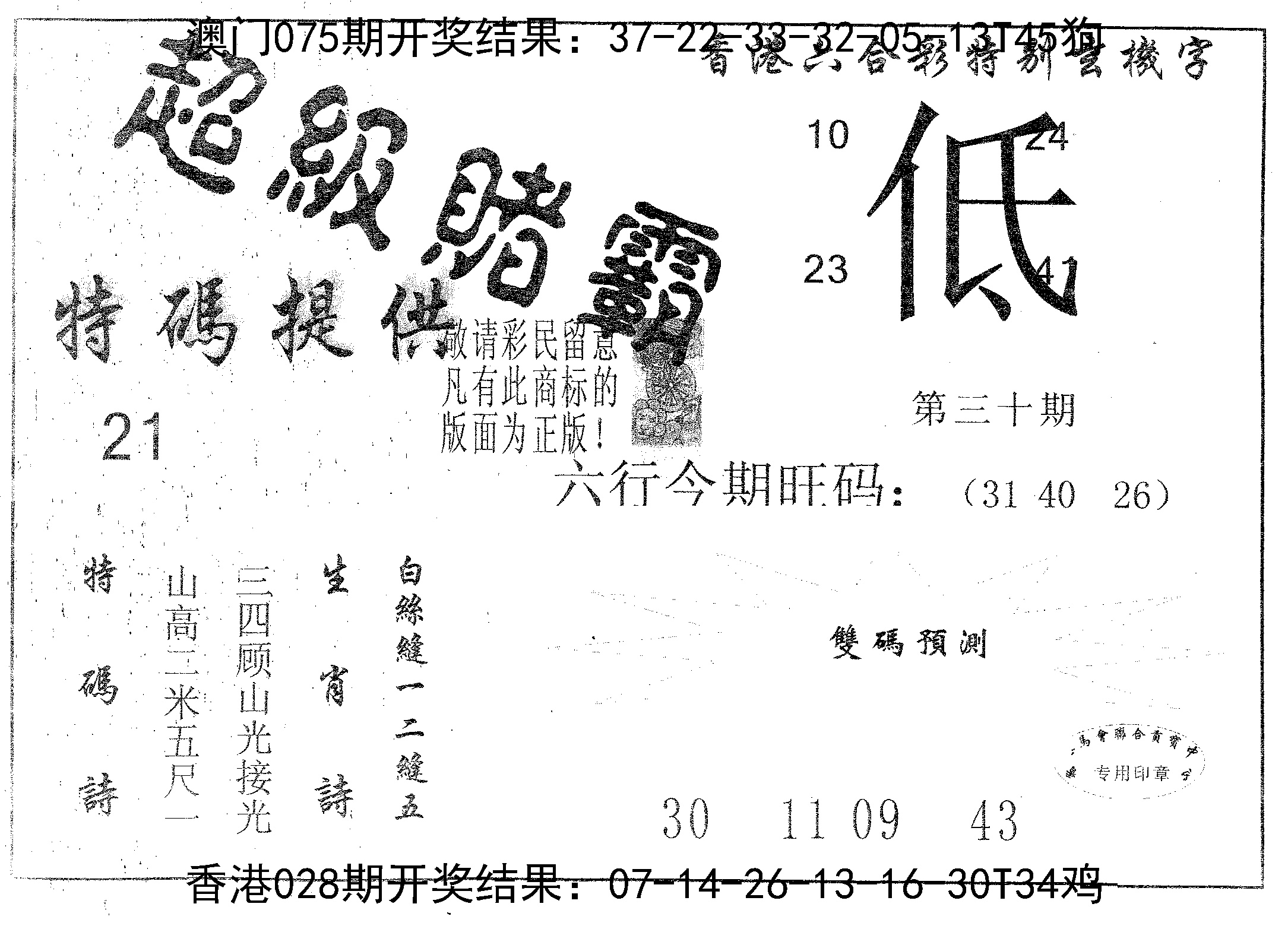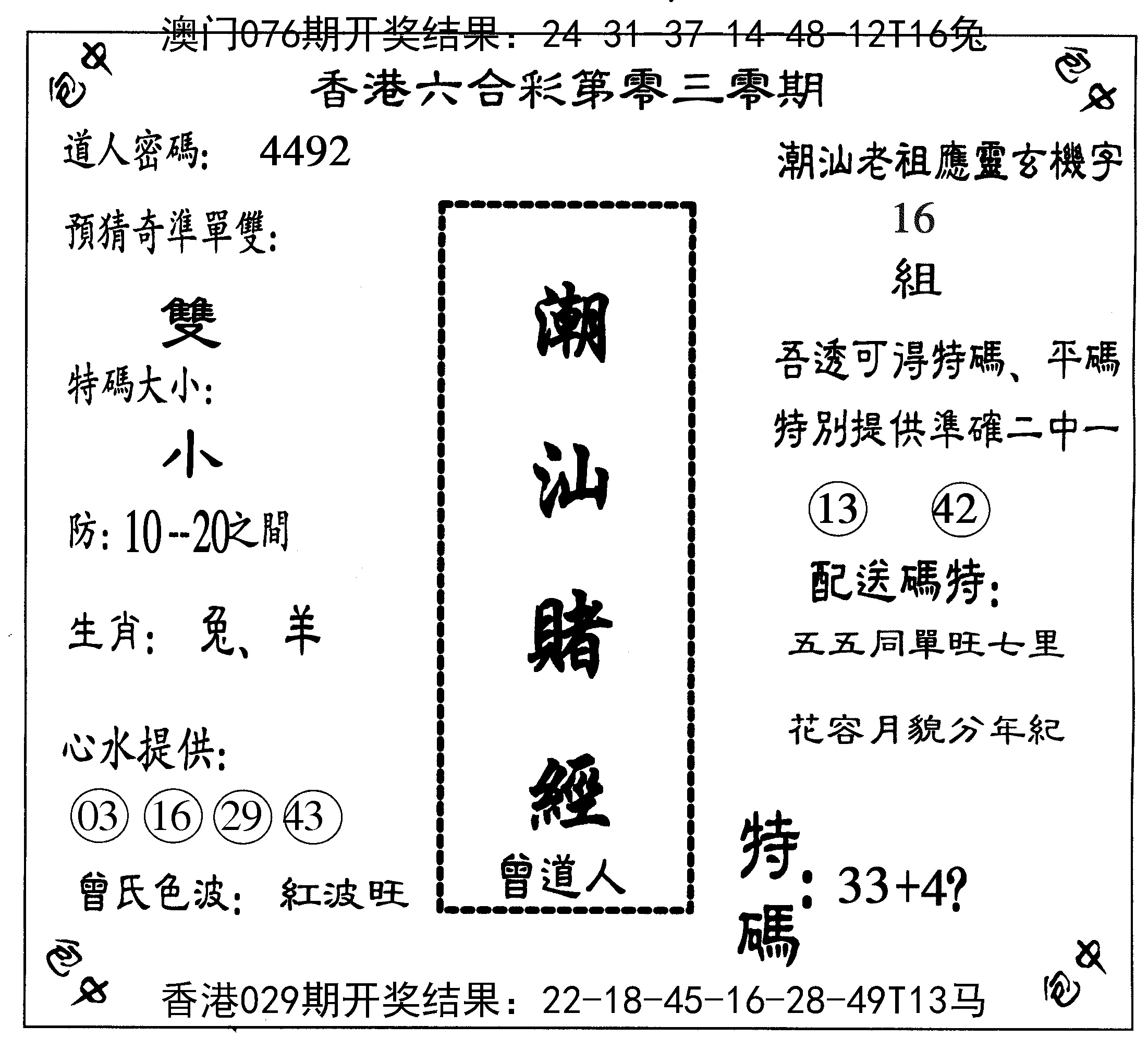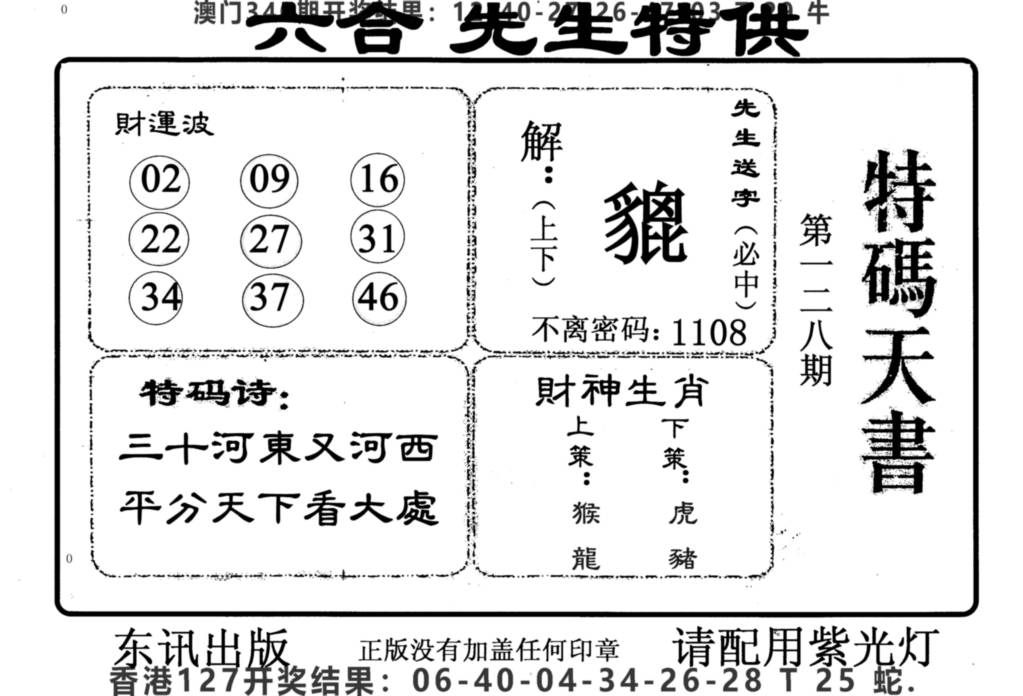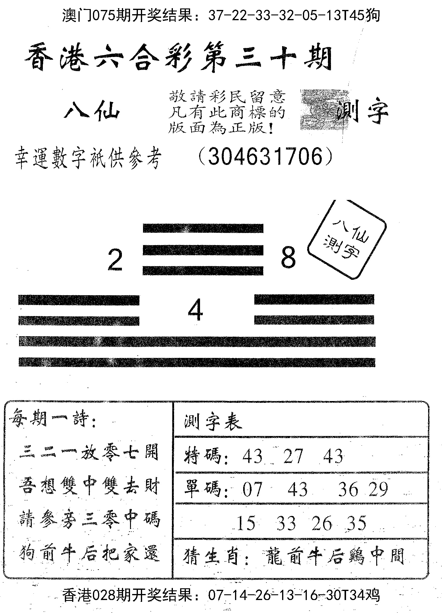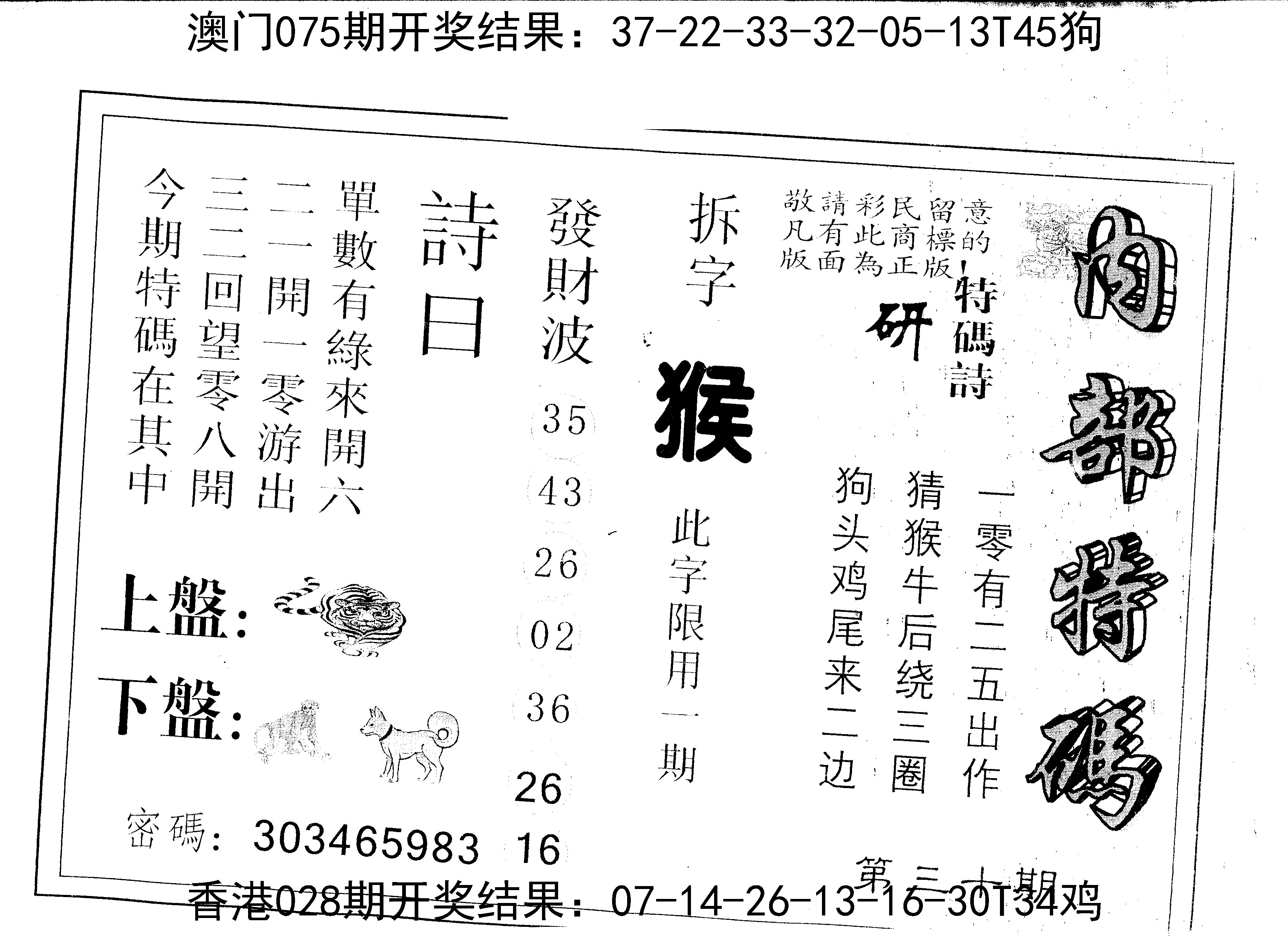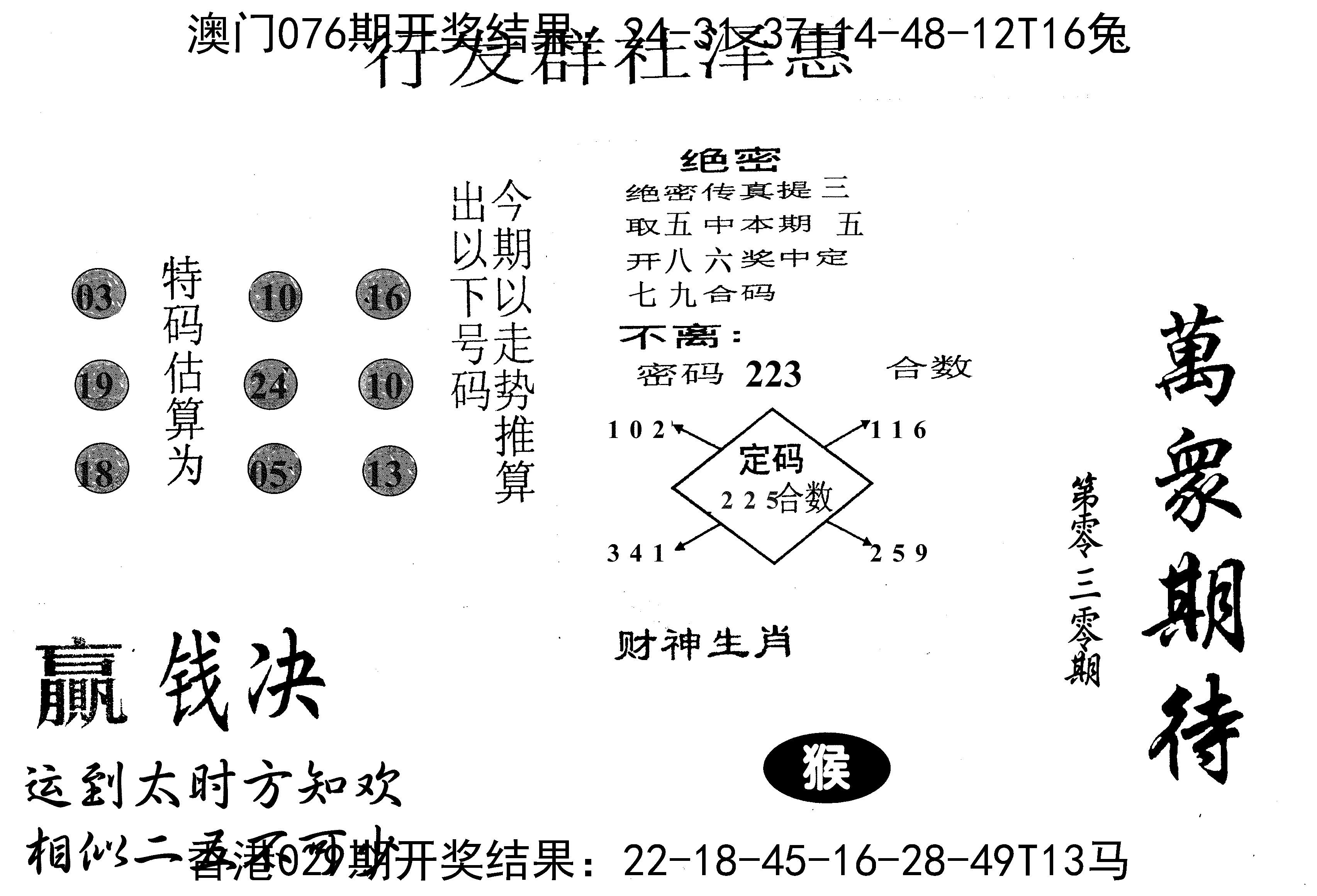·香港六合彩葡京印刷图库提倡有節制博彩,下重注須防上有父老下有妻小。