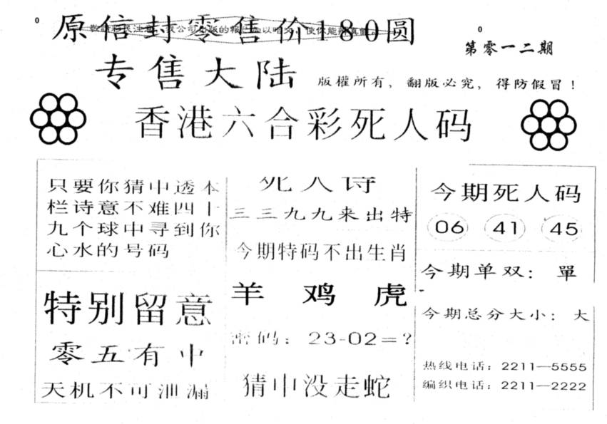 ·香港六合彩是非牟利机构,所得盈余均拨捐本港慈善公益;如要下注,请选择香港六合彩公司