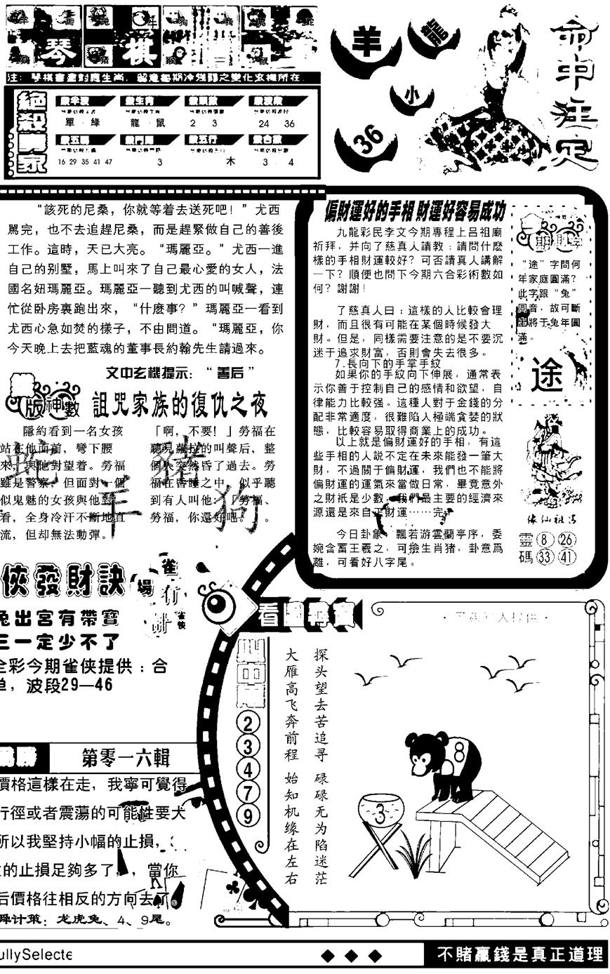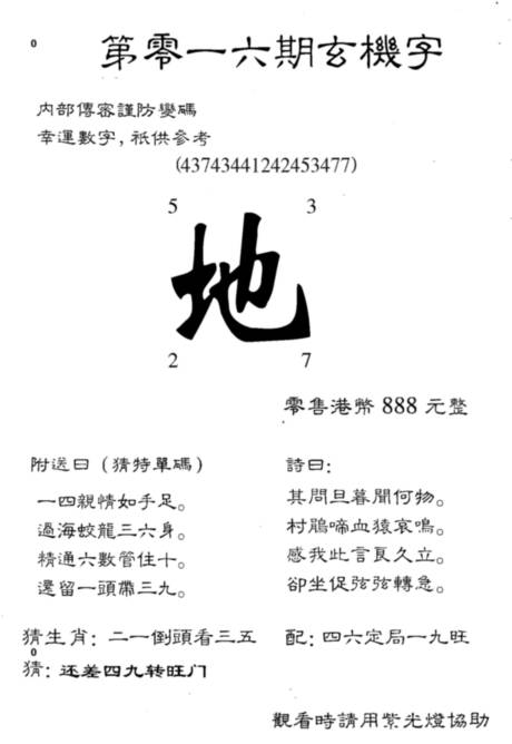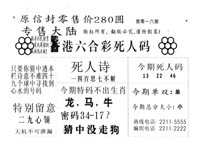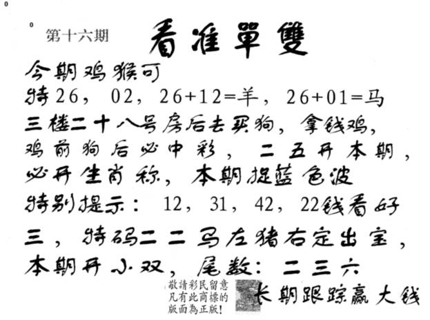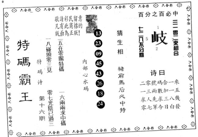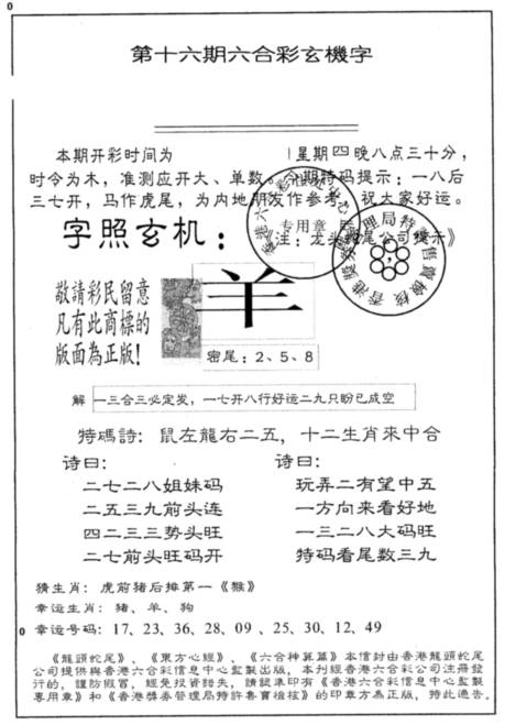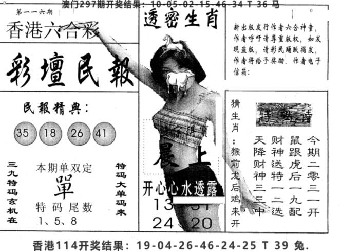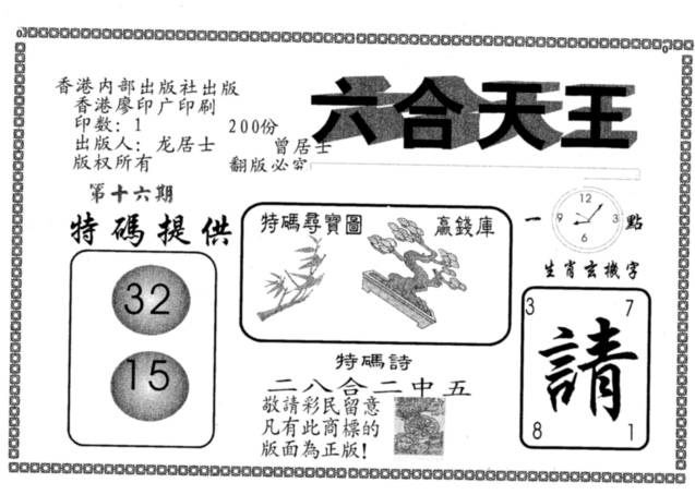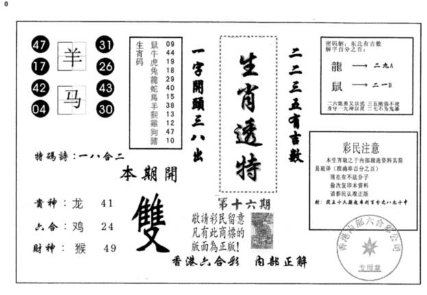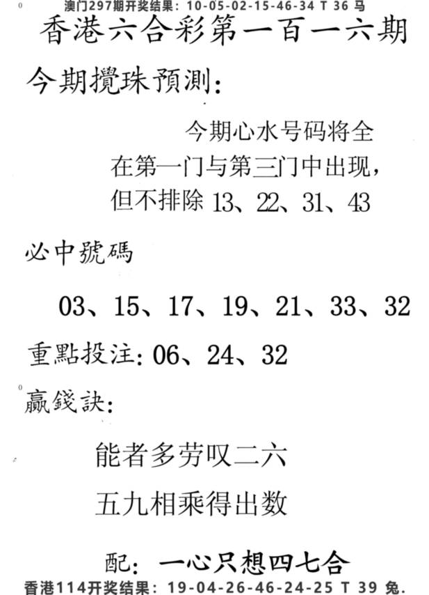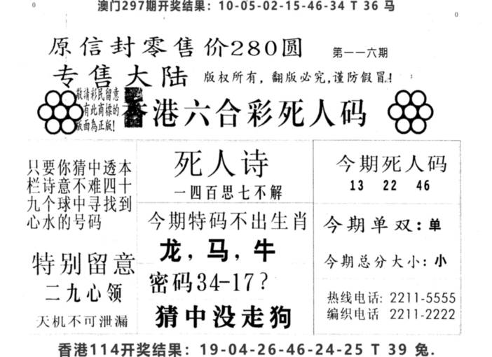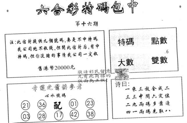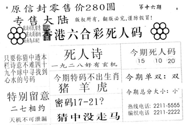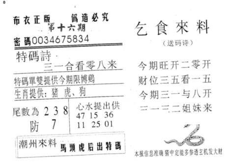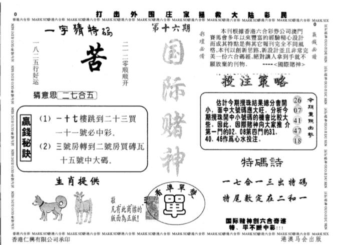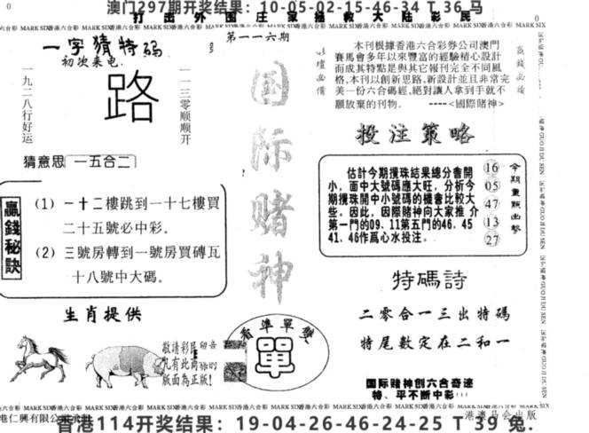 ·香港六合彩葡京印刷图库提倡有節制博彩,下重注須防上有父老下有妻小。