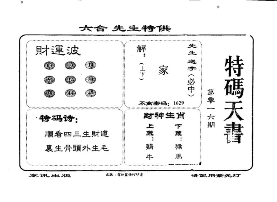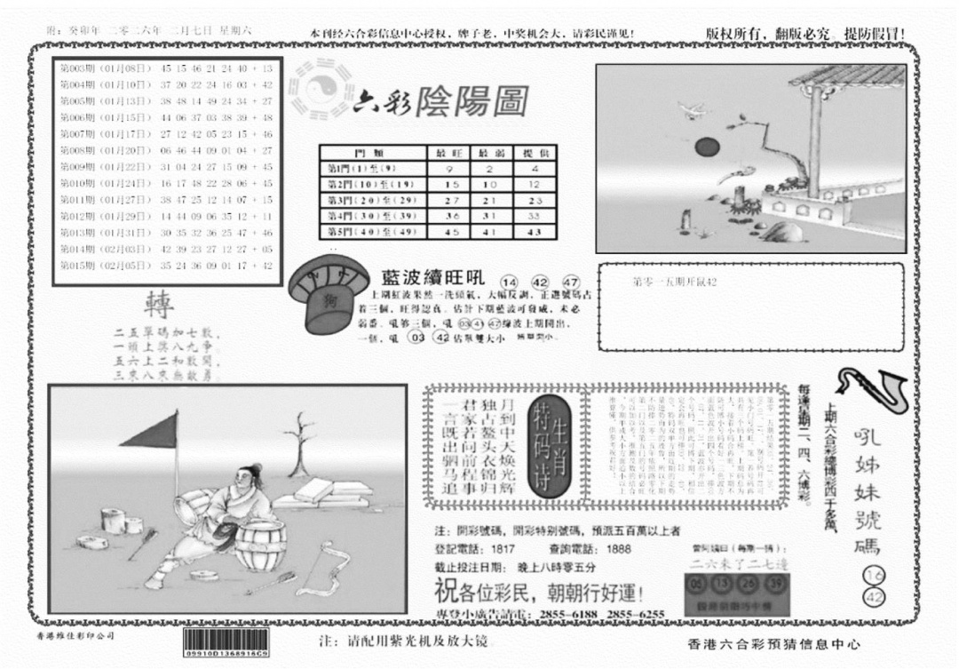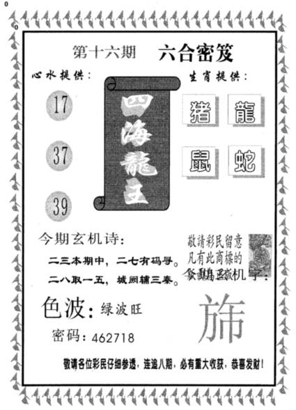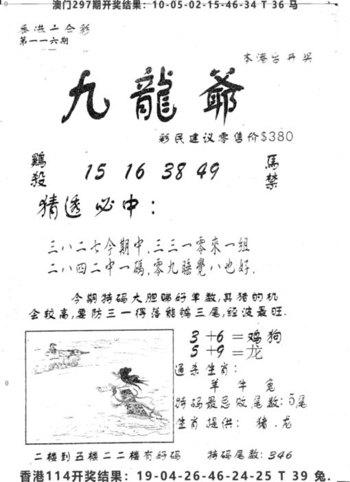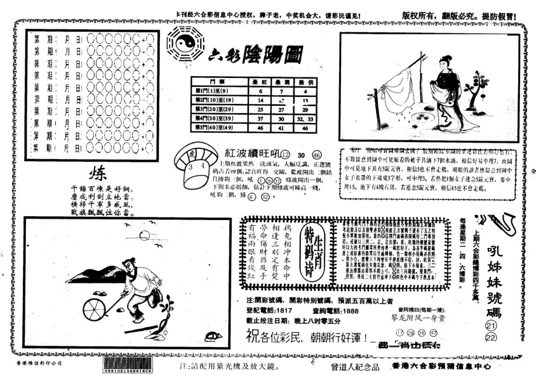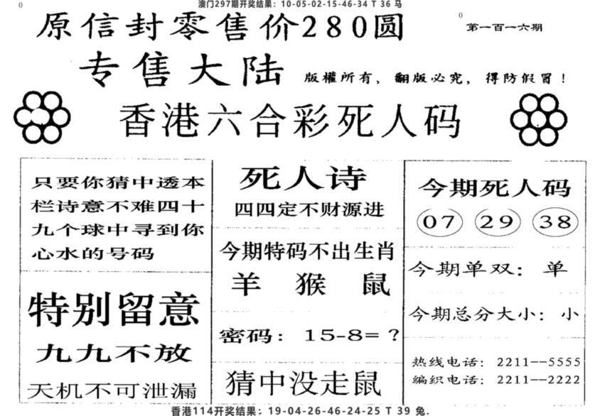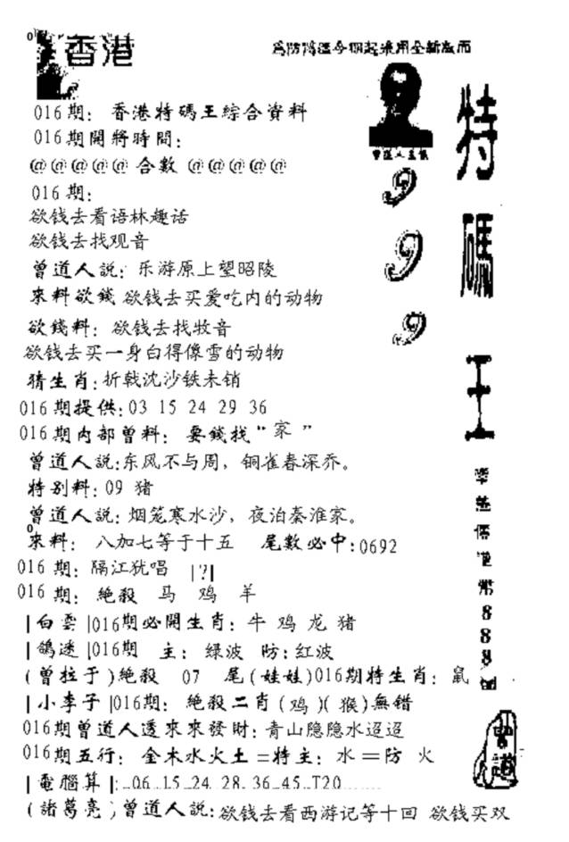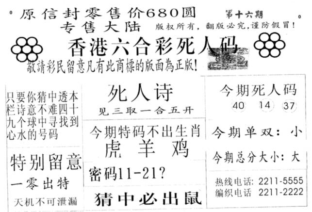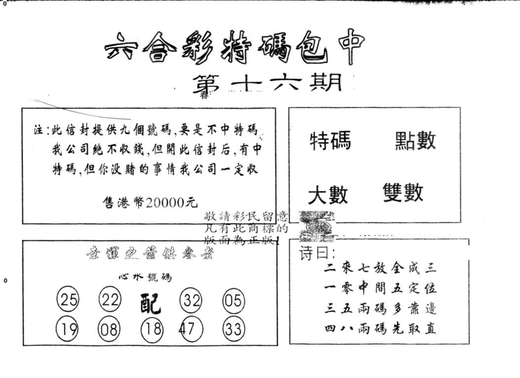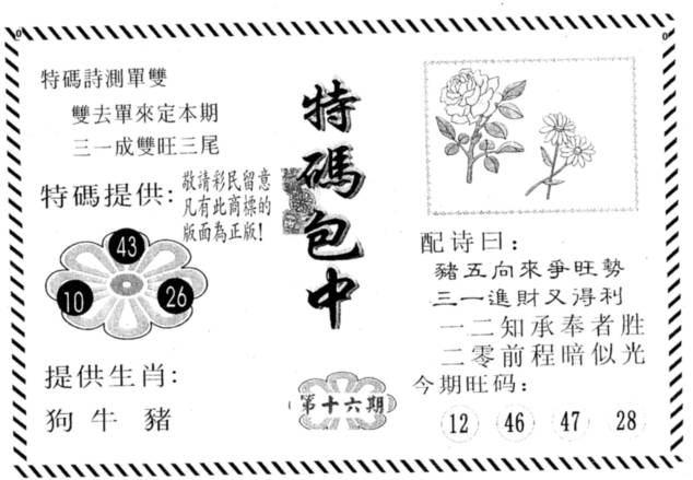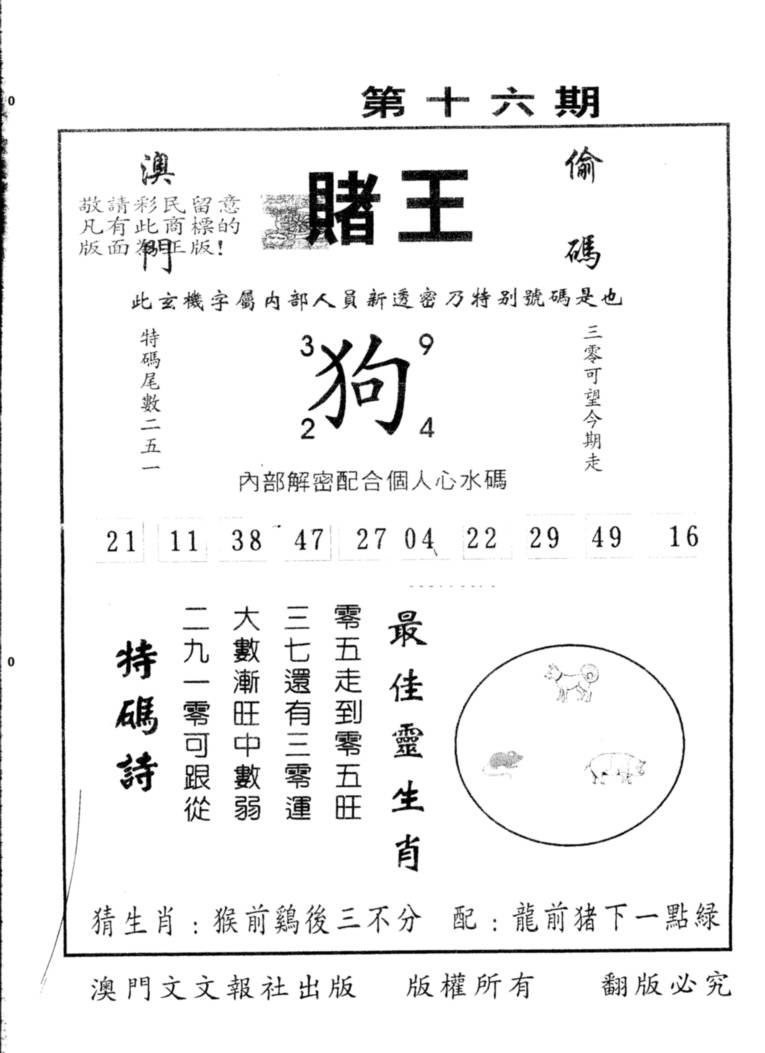 ·香港六合彩葡京印刷图库提倡有節制博彩,下重注須防上有父老下有妻小。