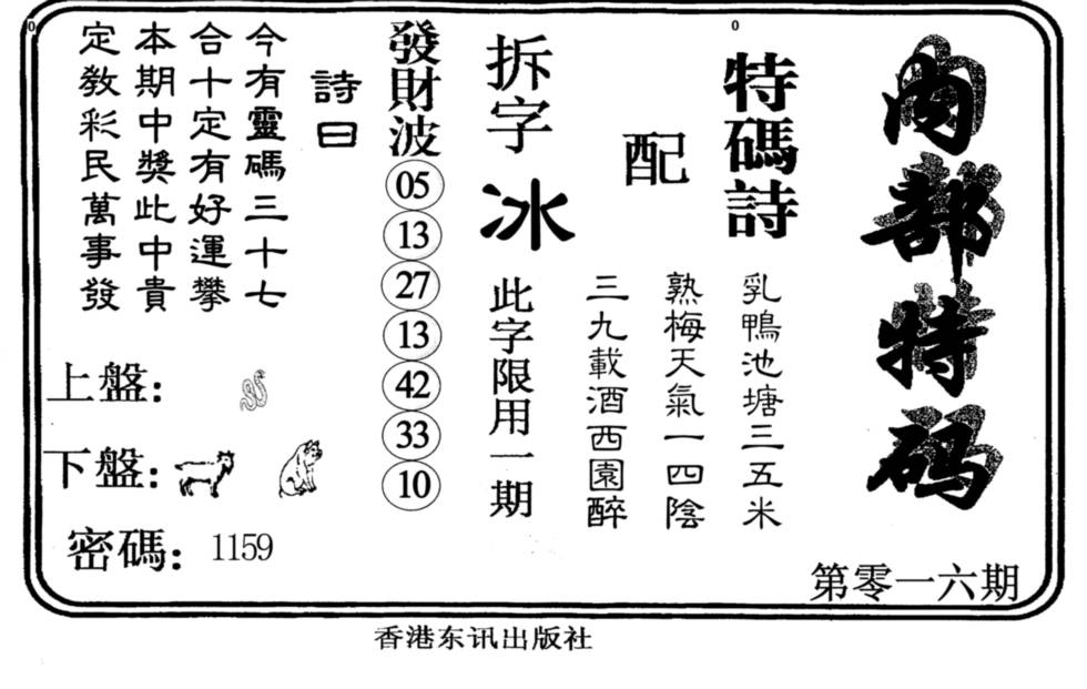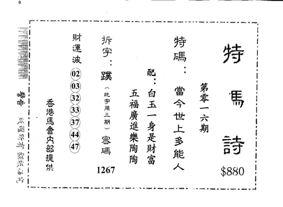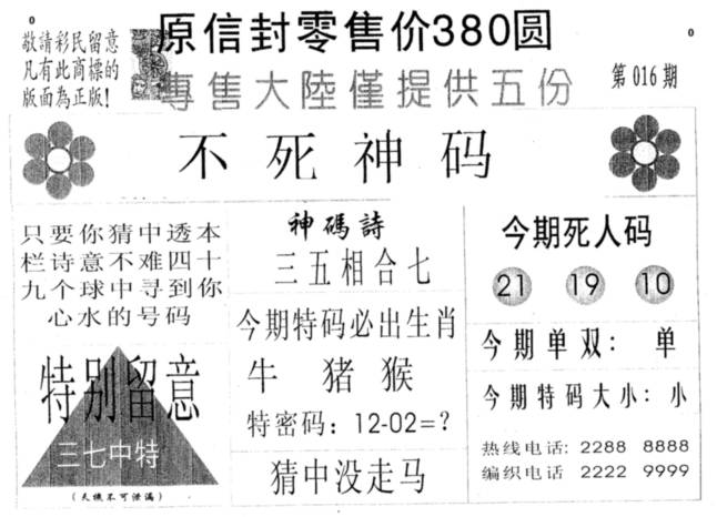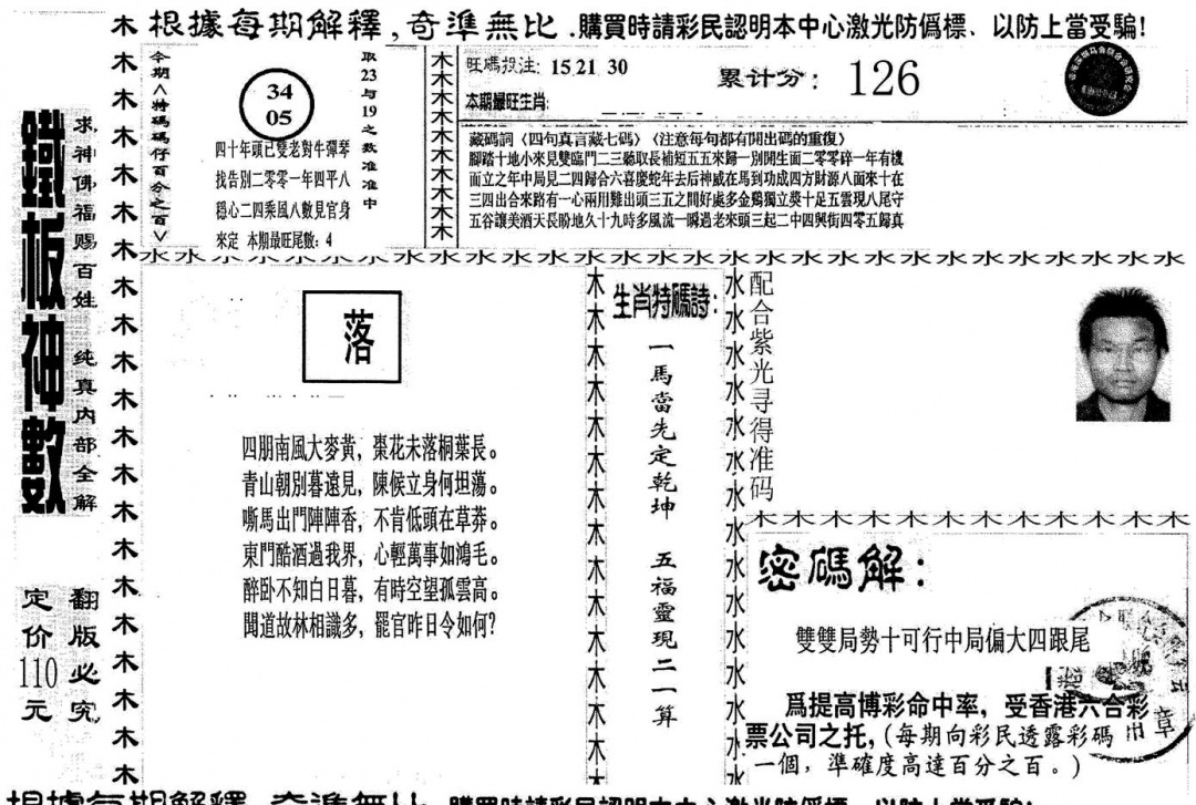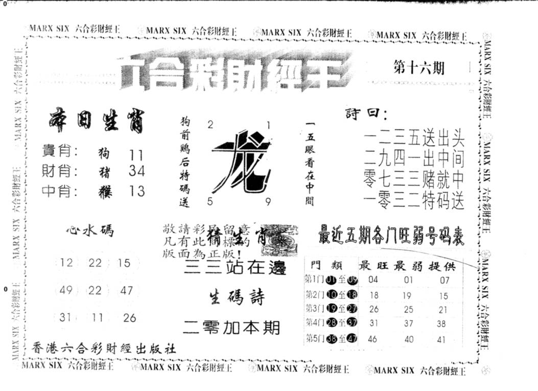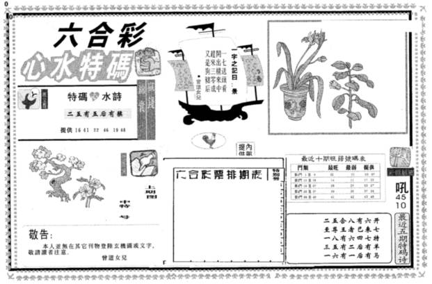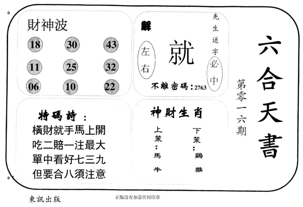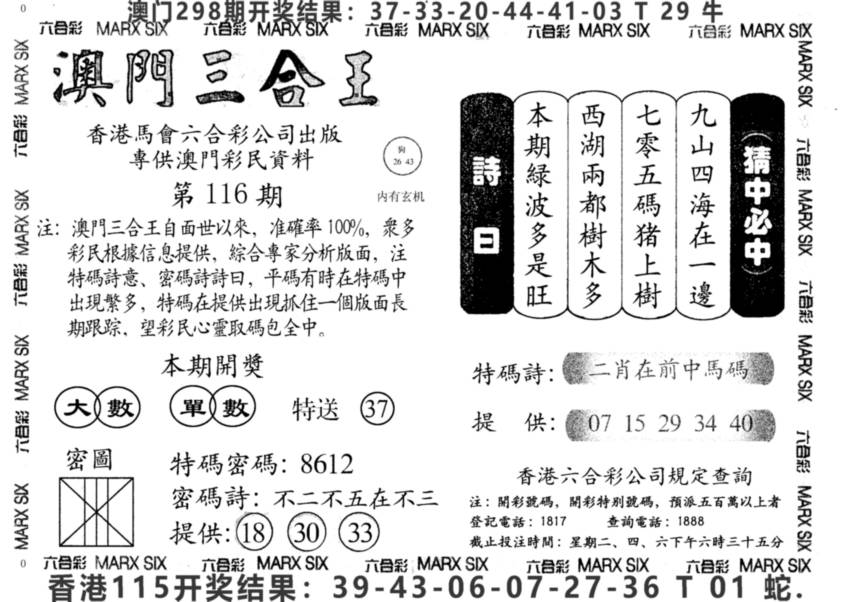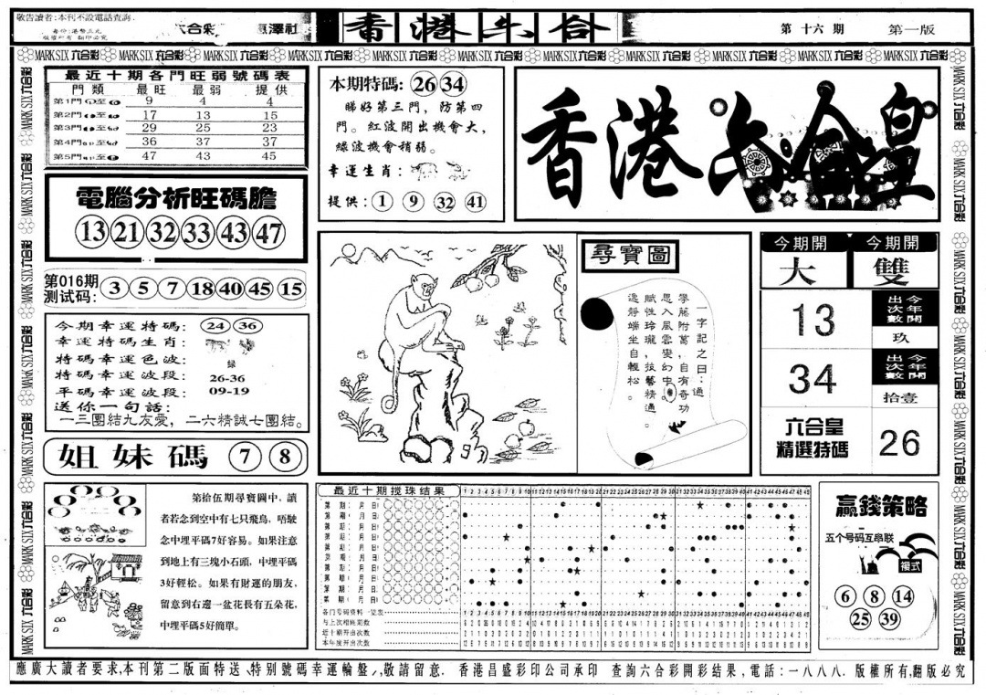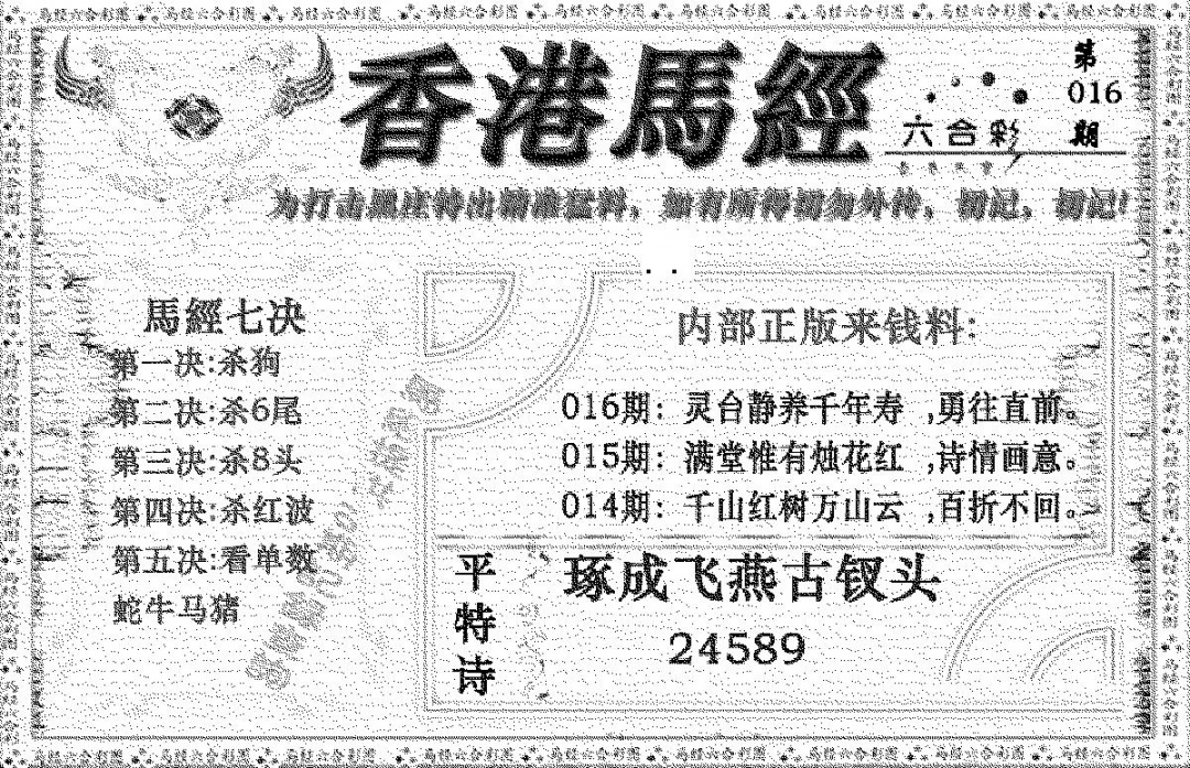 ·香港六合彩葡京印刷图库提倡有節制博彩,下重注須防上有父老下有妻小。