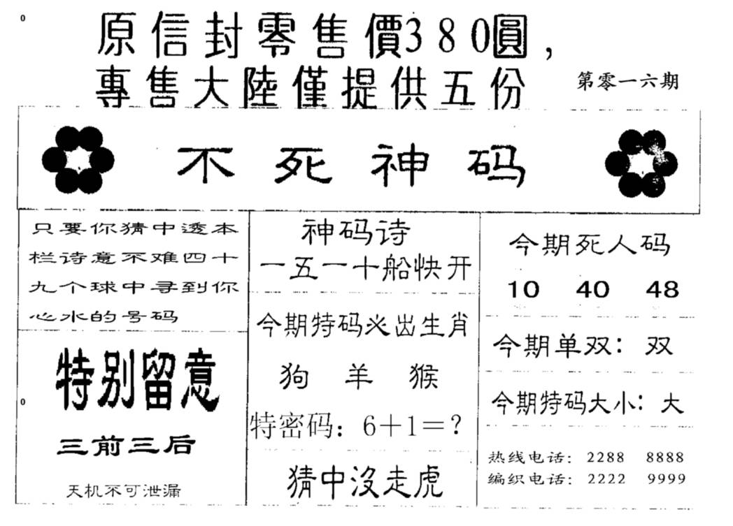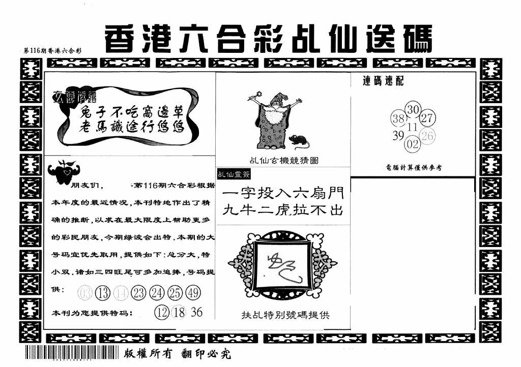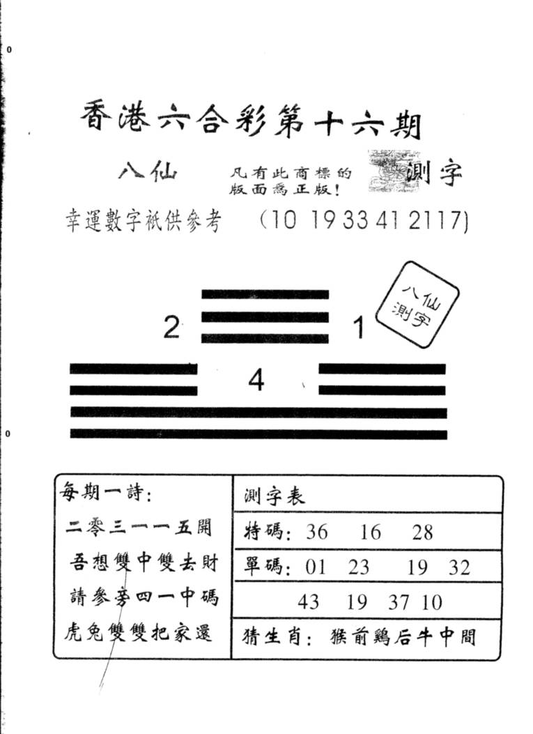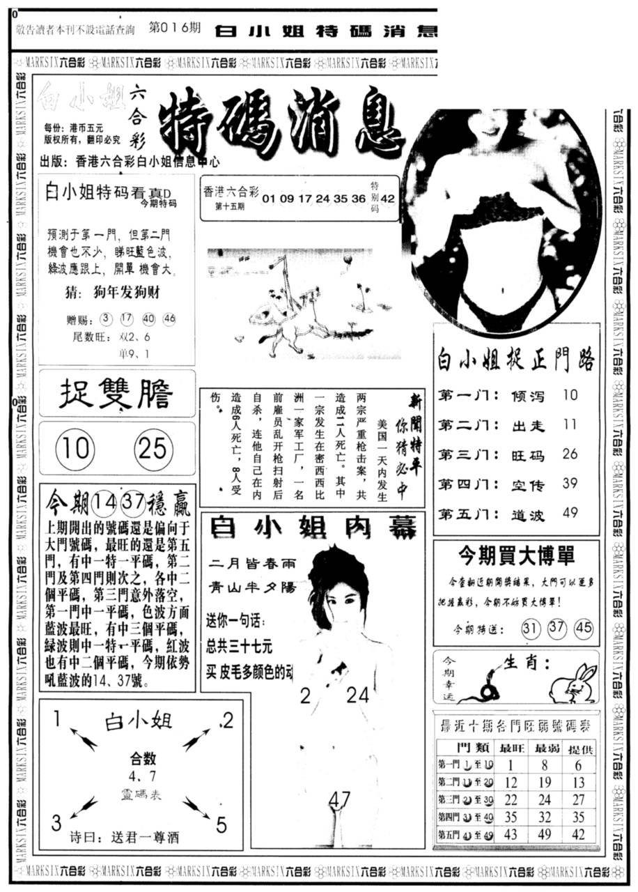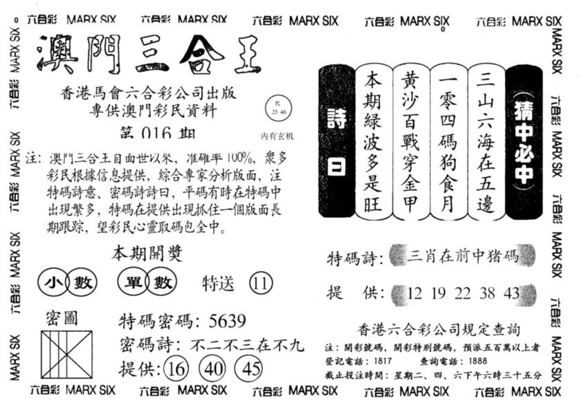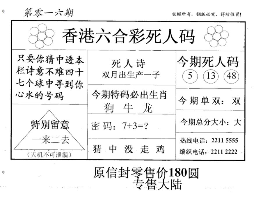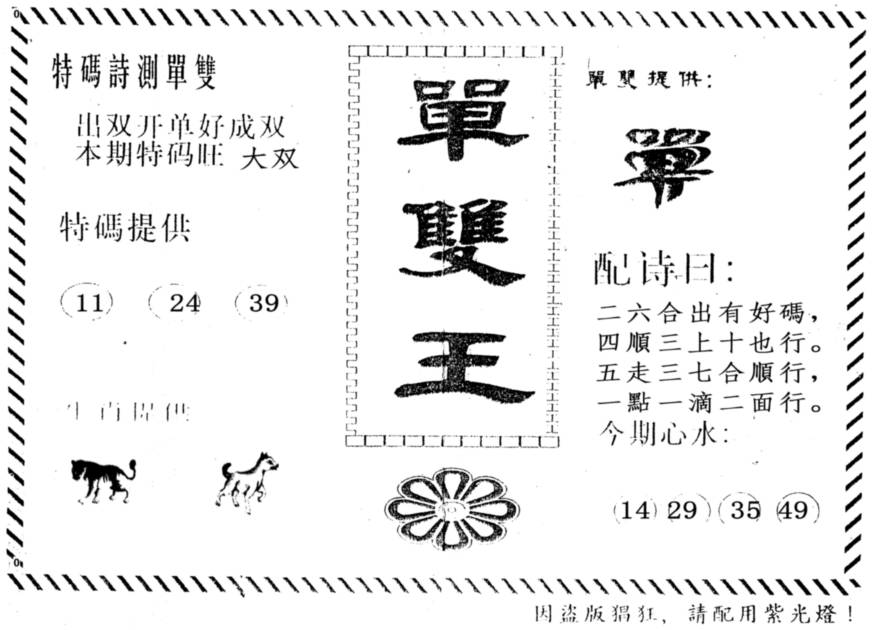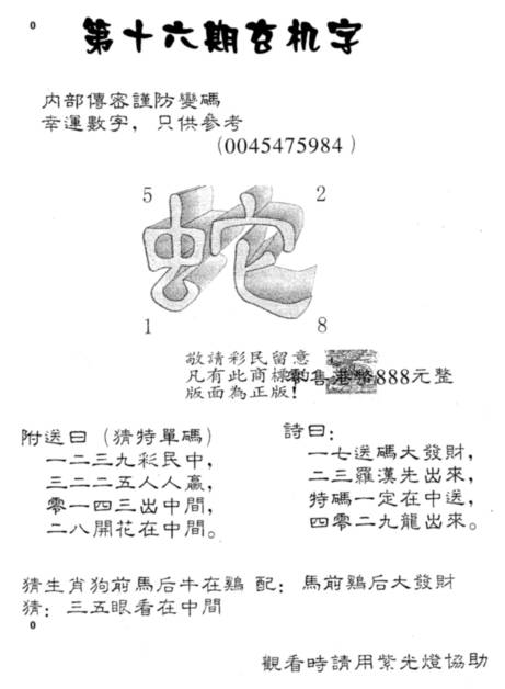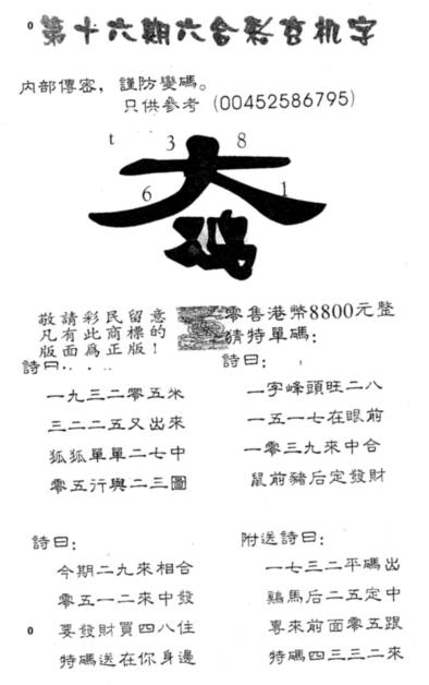 ·香港六合彩葡京印刷图库提倡有節制博彩,下重注須防上有父老下有妻小。