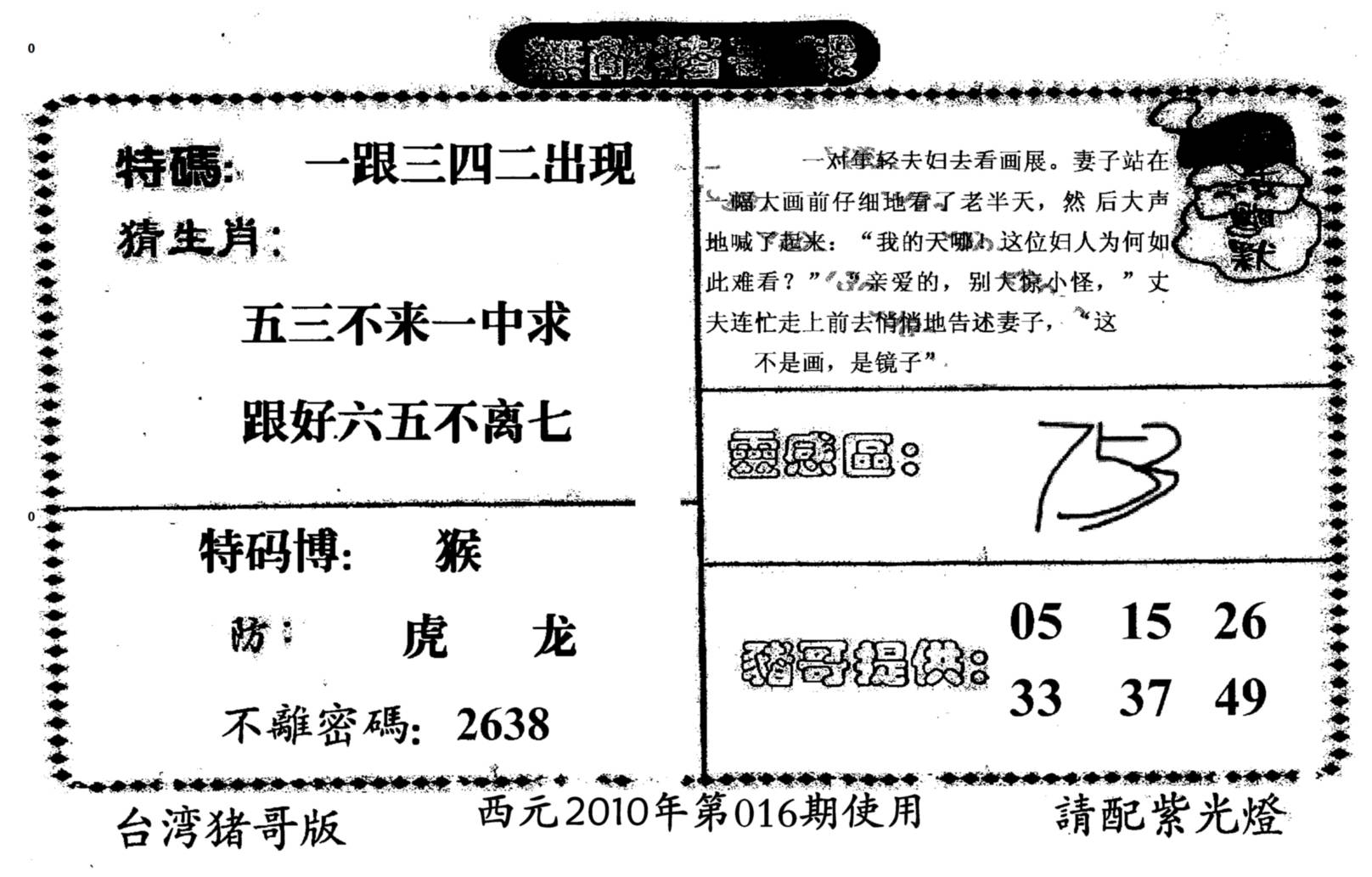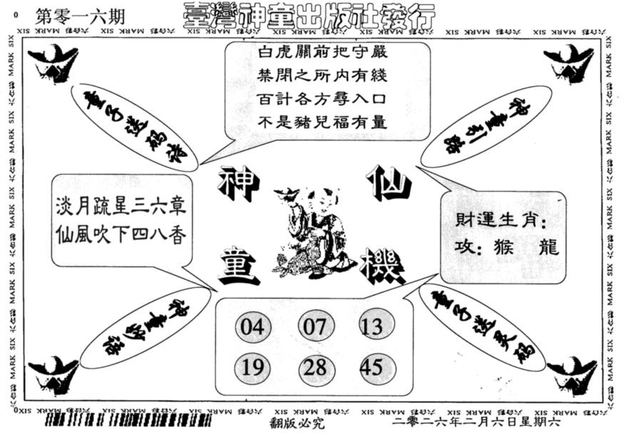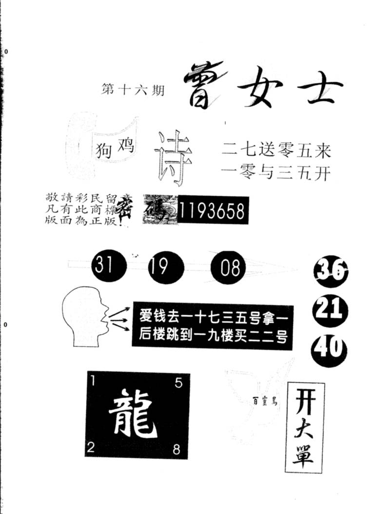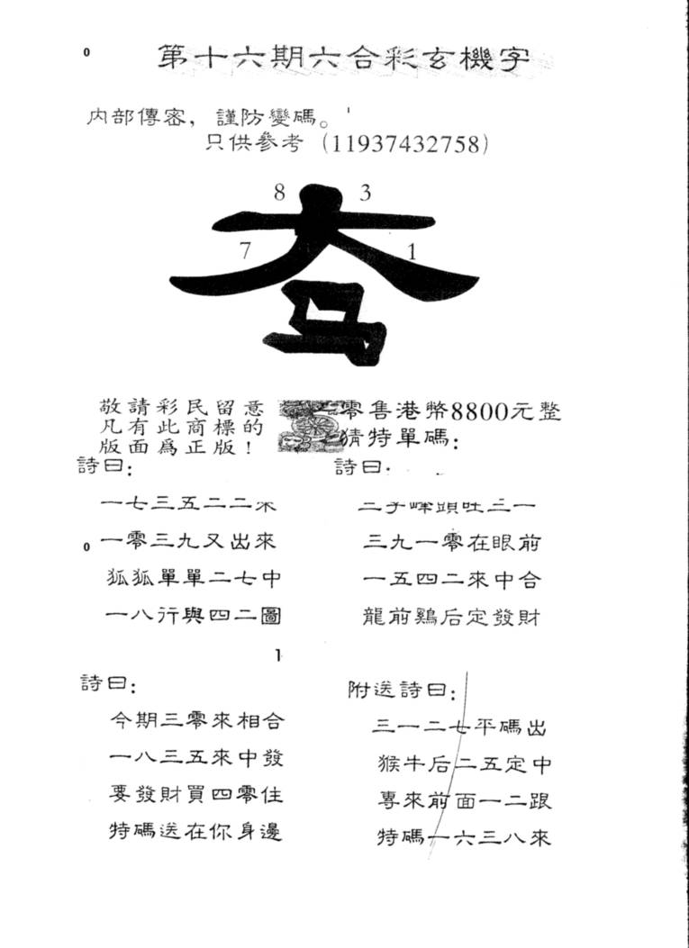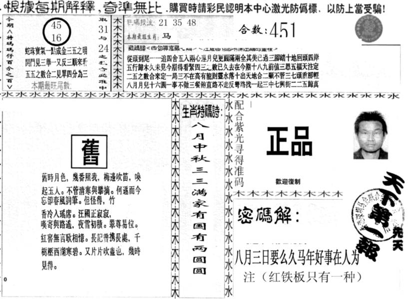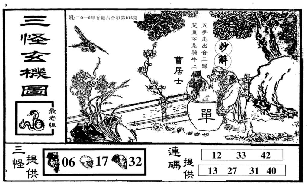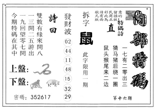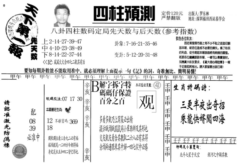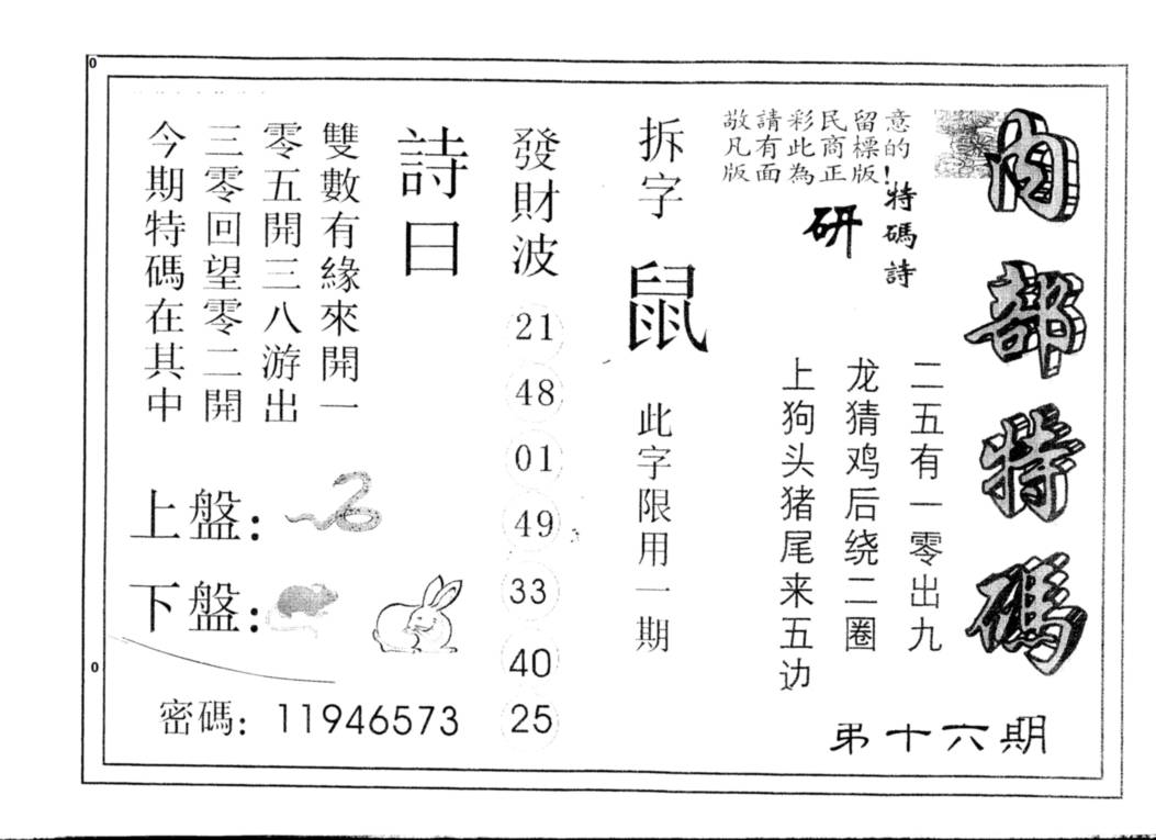 ·香港六合彩葡京印刷图库提倡有節制博彩,下重注須防上有父老下有妻小。