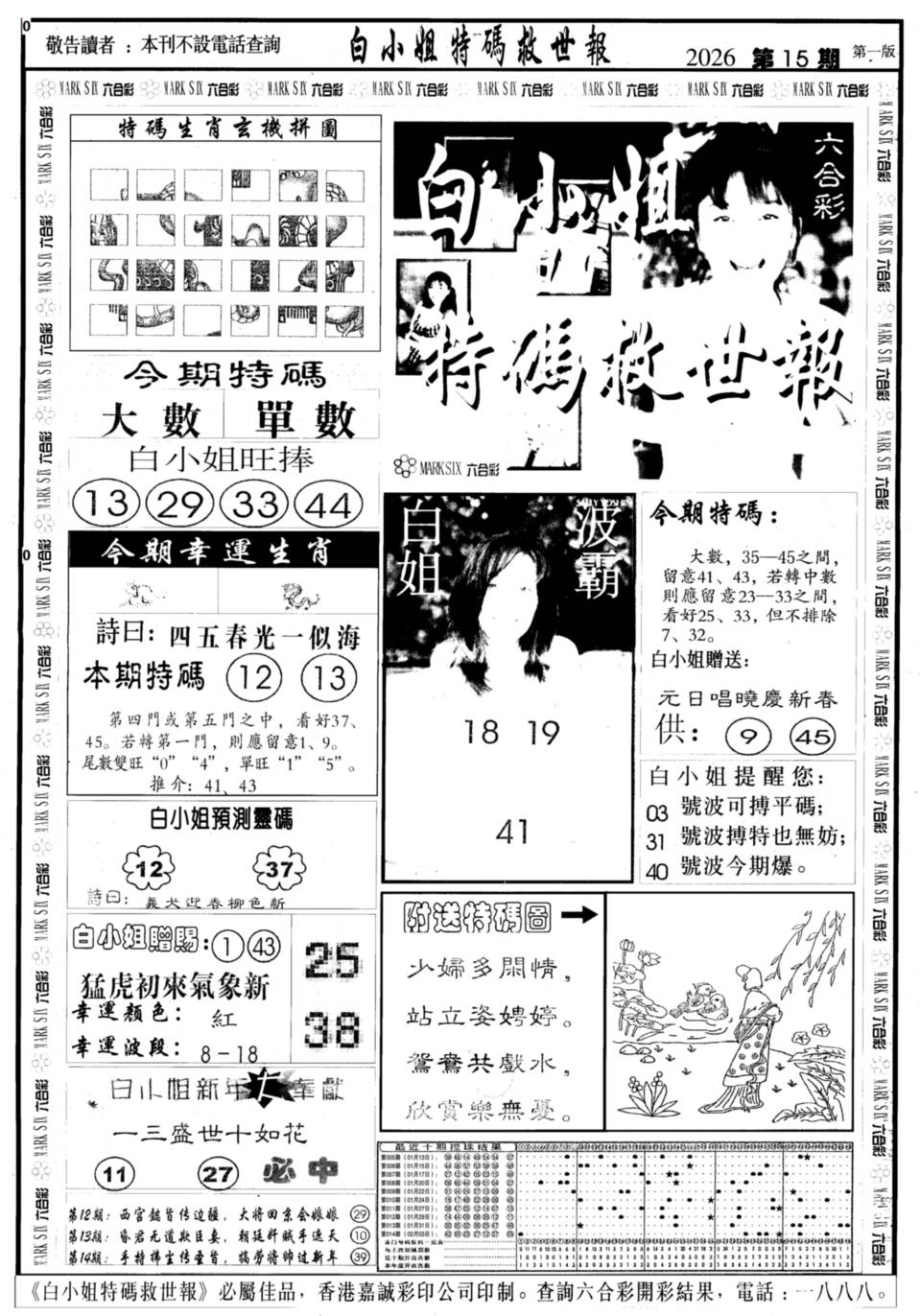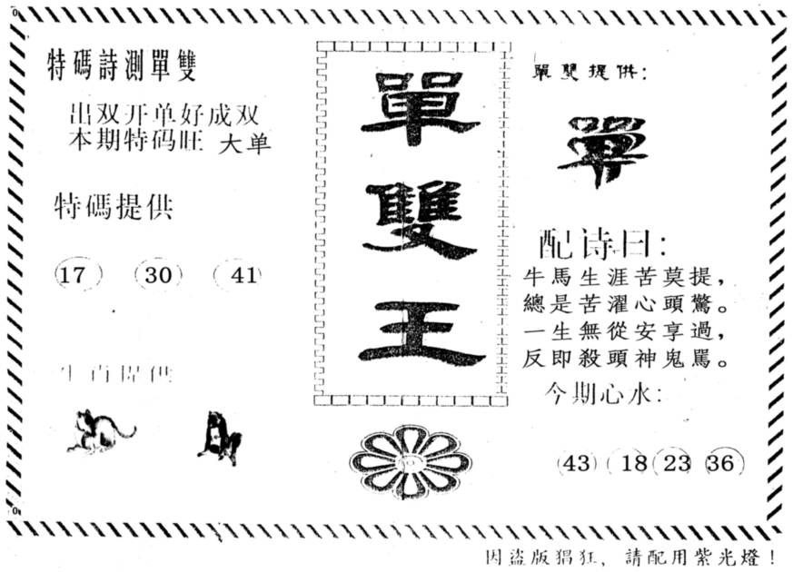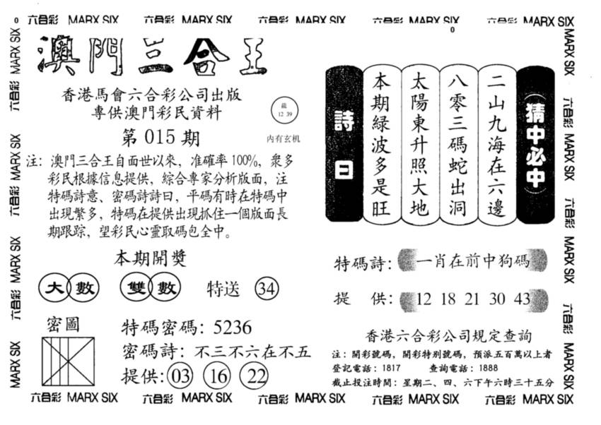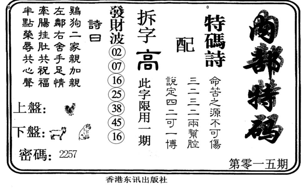 ·香港六合彩葡京印刷图库提倡有節制博彩,下重注須防上有父老下有妻小。