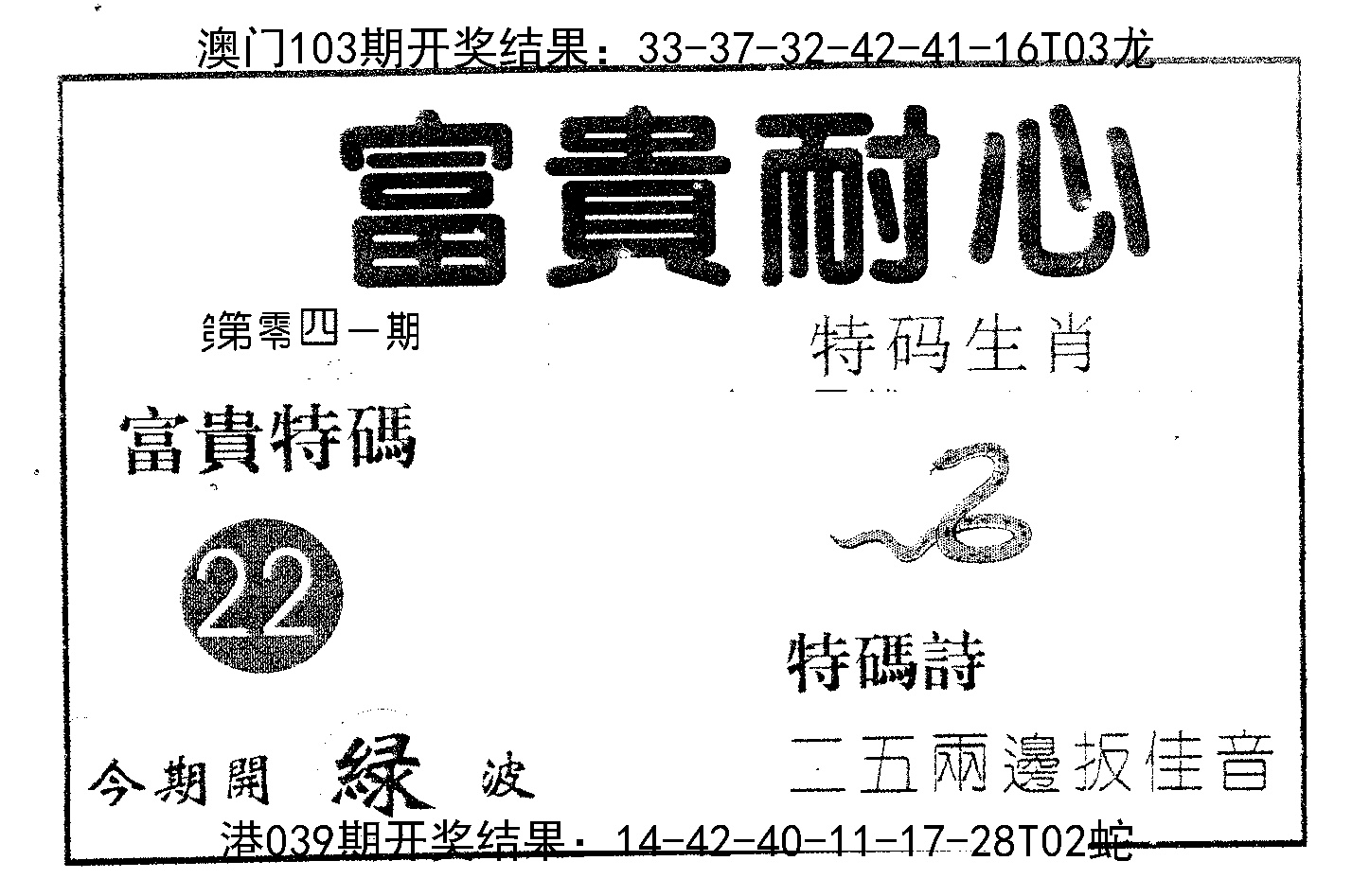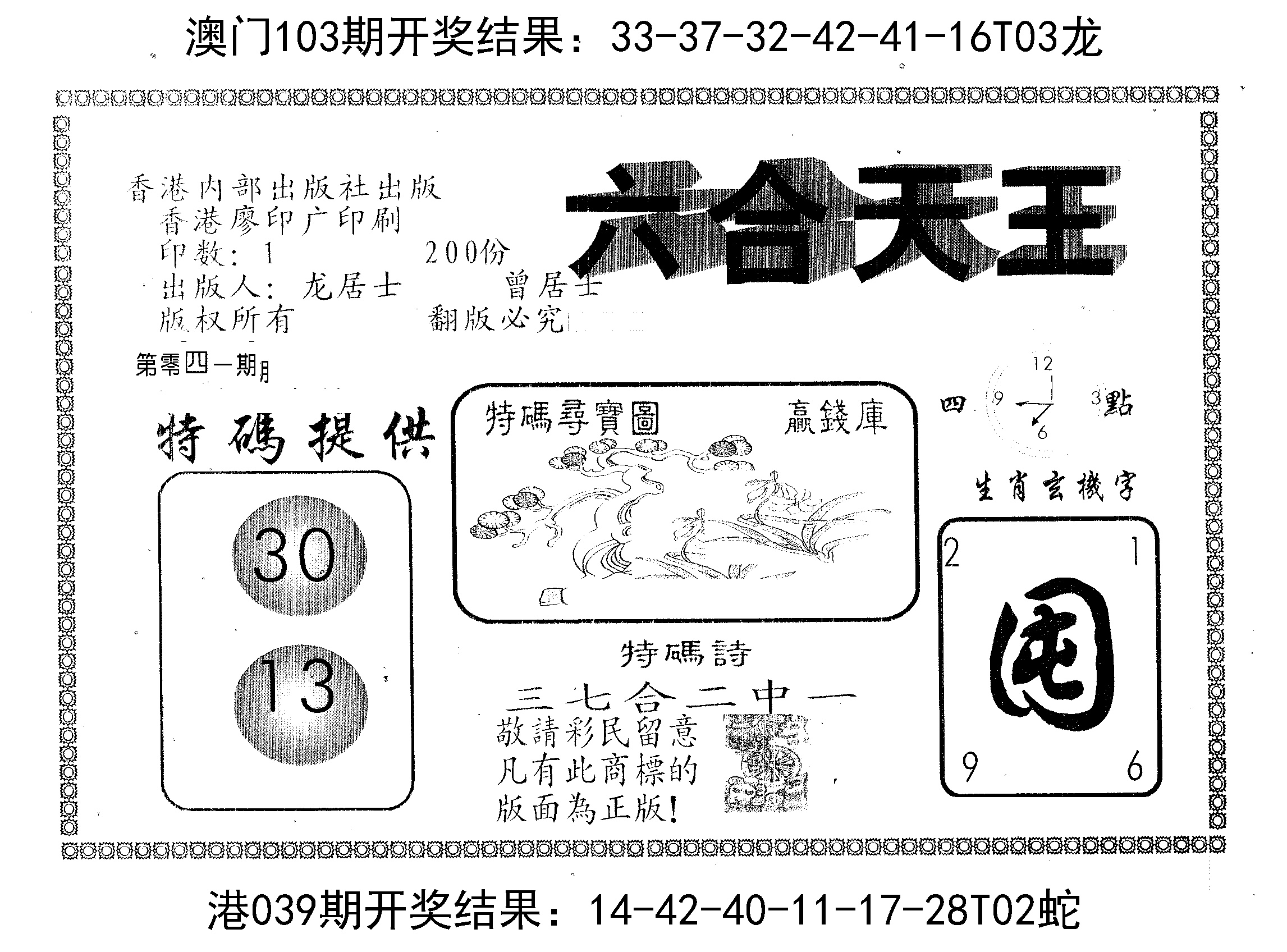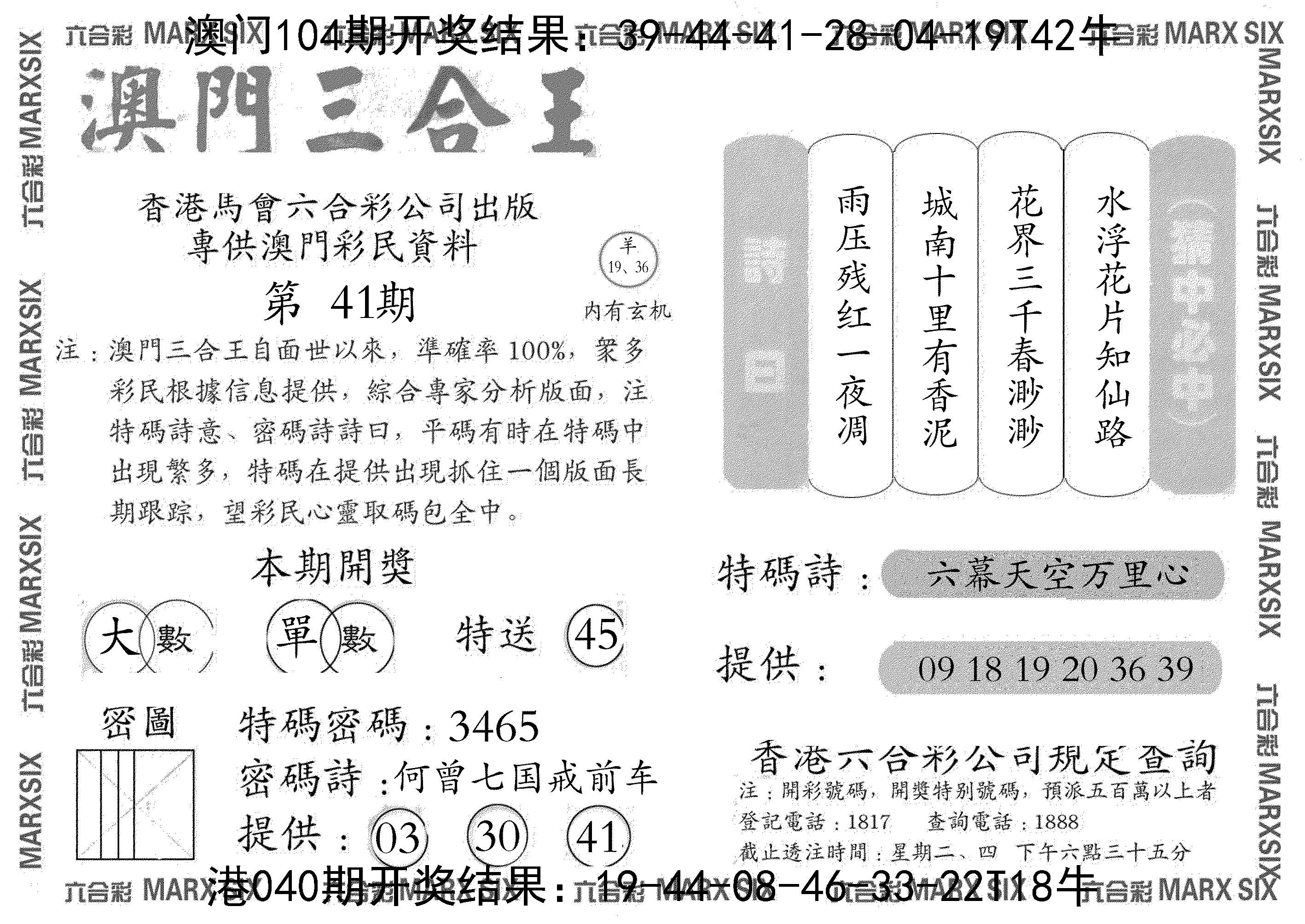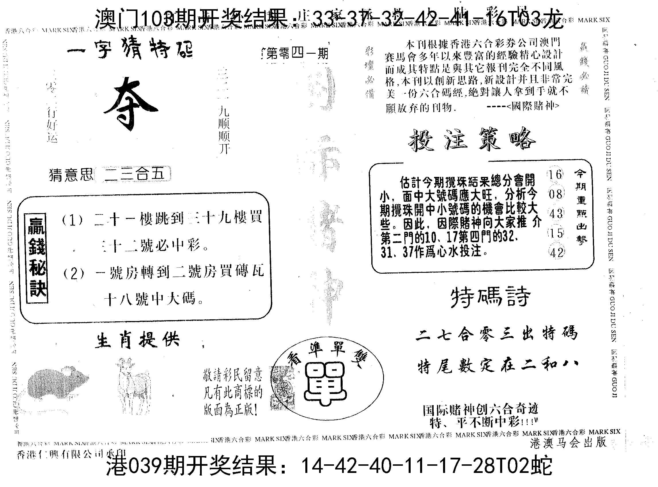 ·香港六合彩葡京印刷图库提倡有節制博彩,下重注須防上有父老下有妻小。