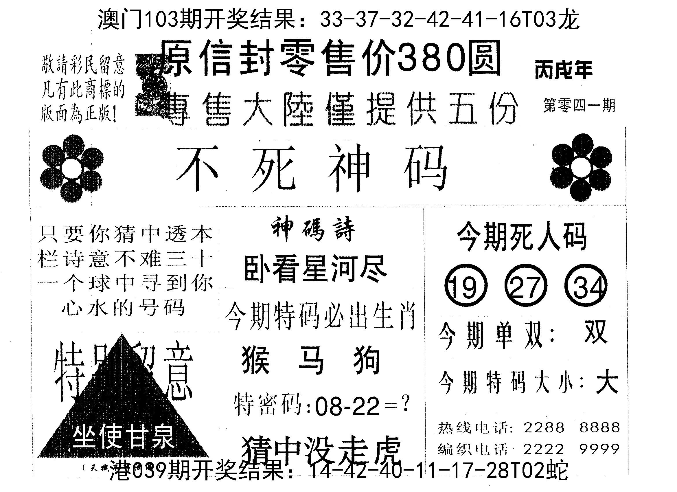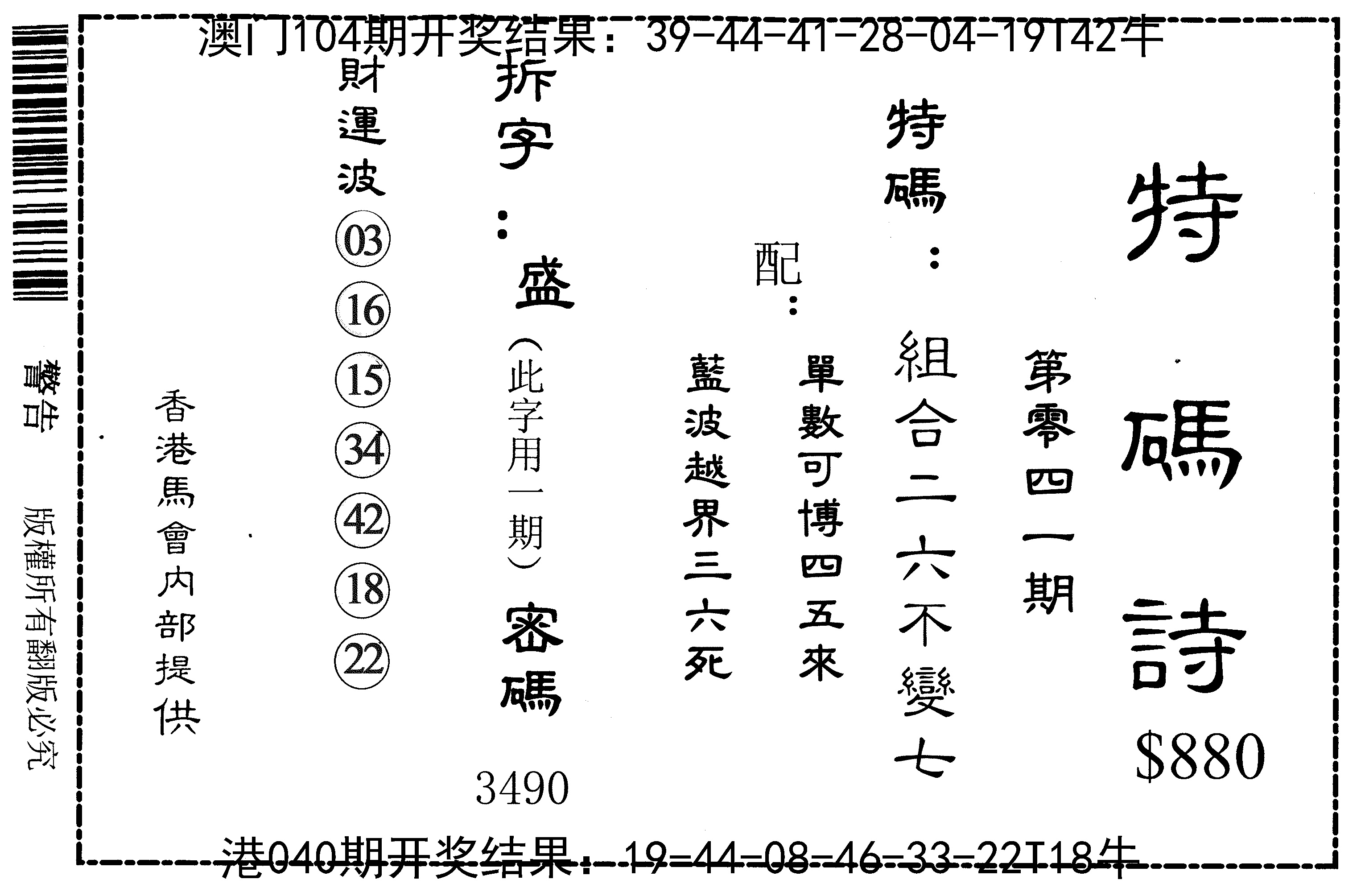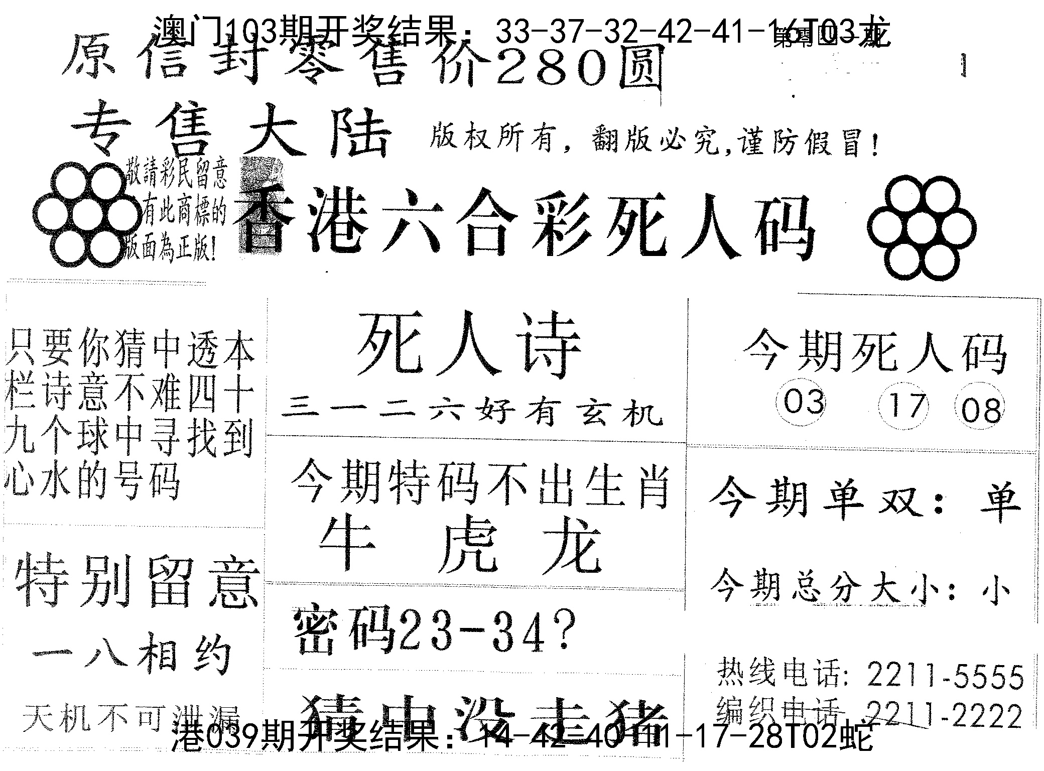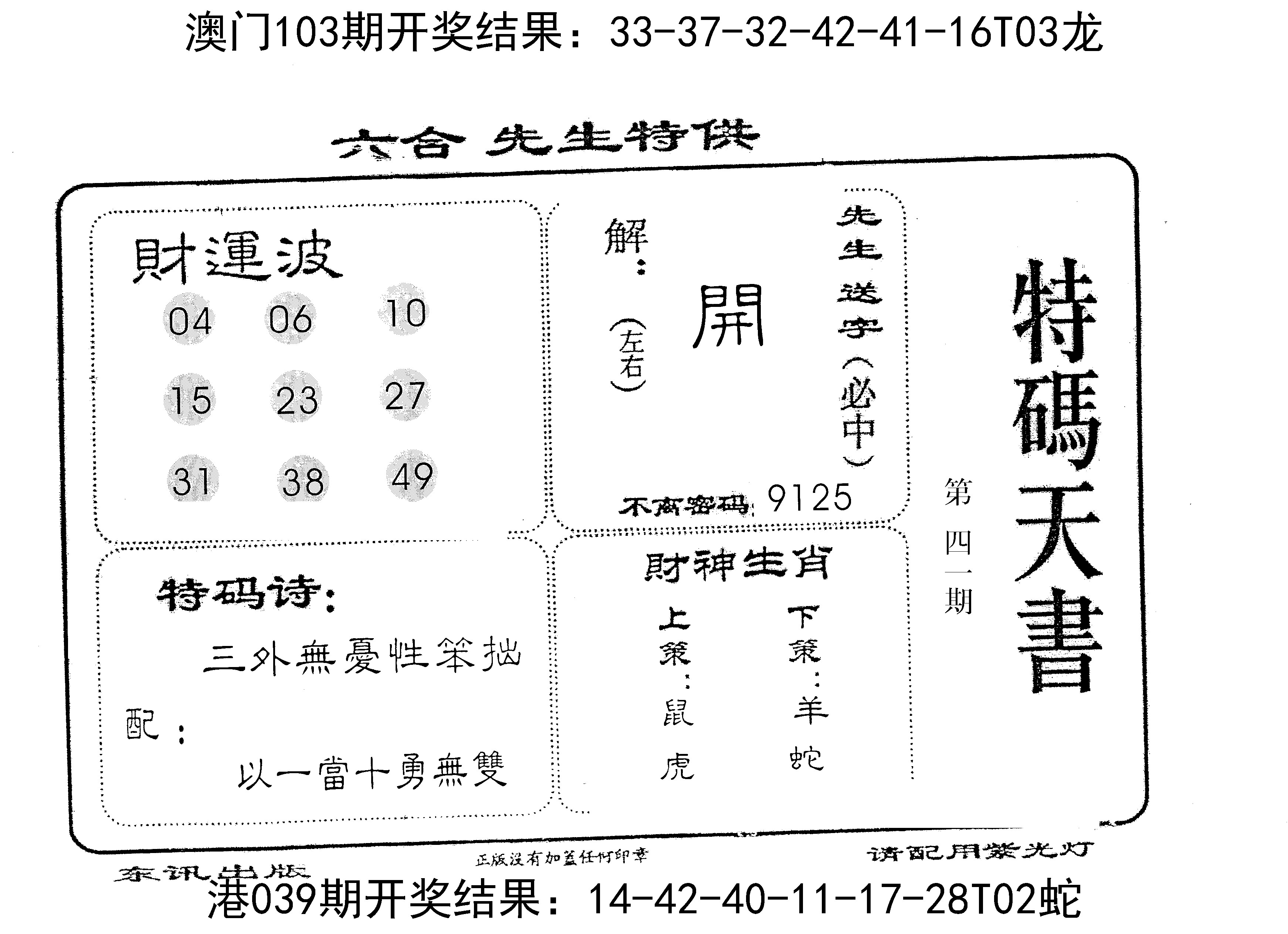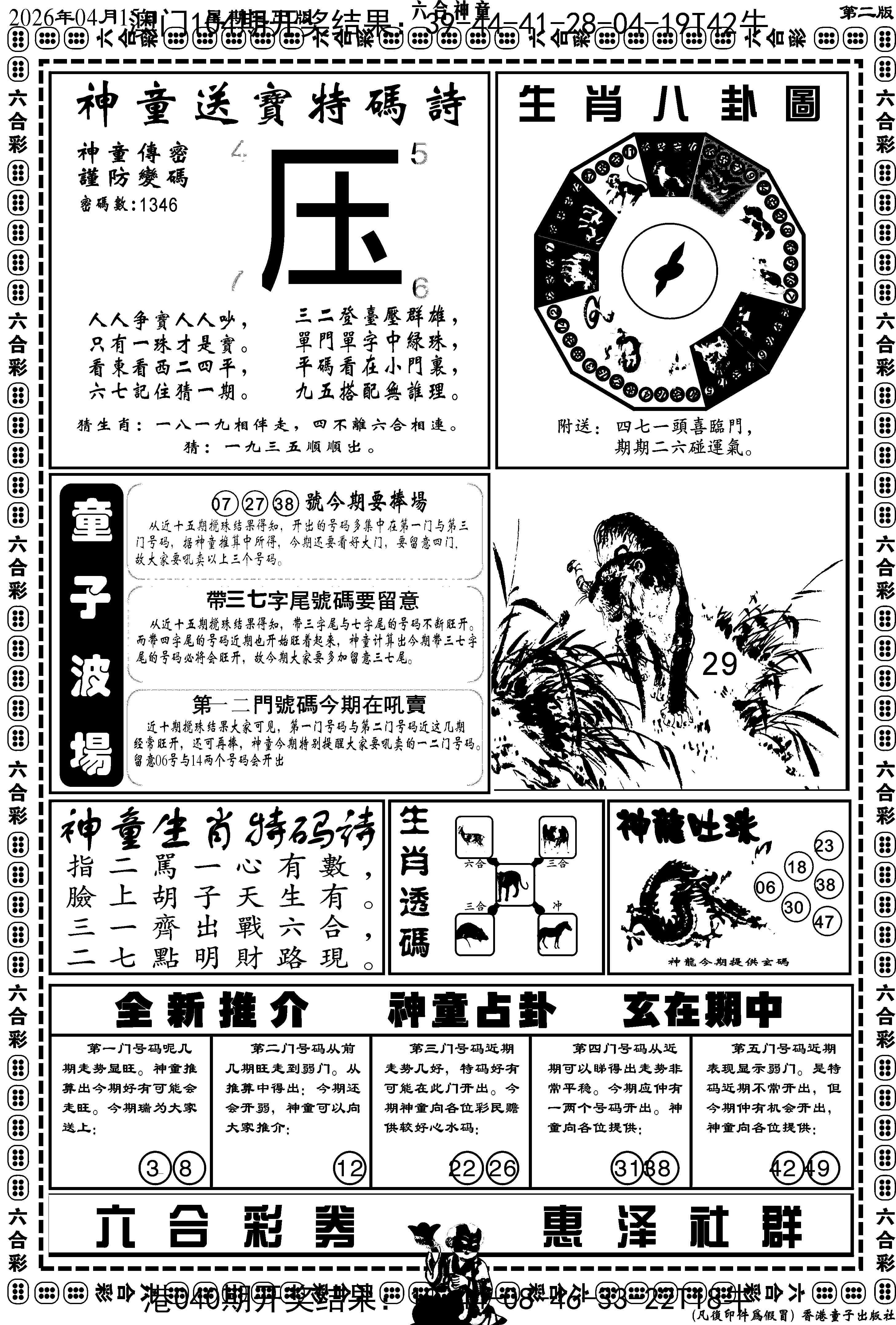 ·香港六合彩葡京印刷图库提倡有節制博彩,下重注須防上有父老下有妻小。