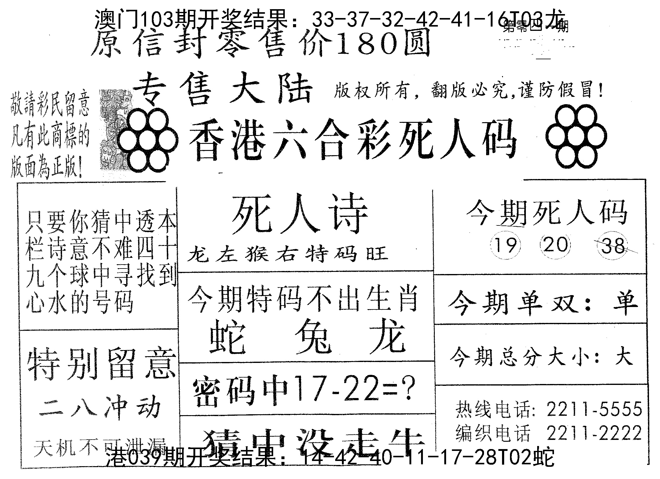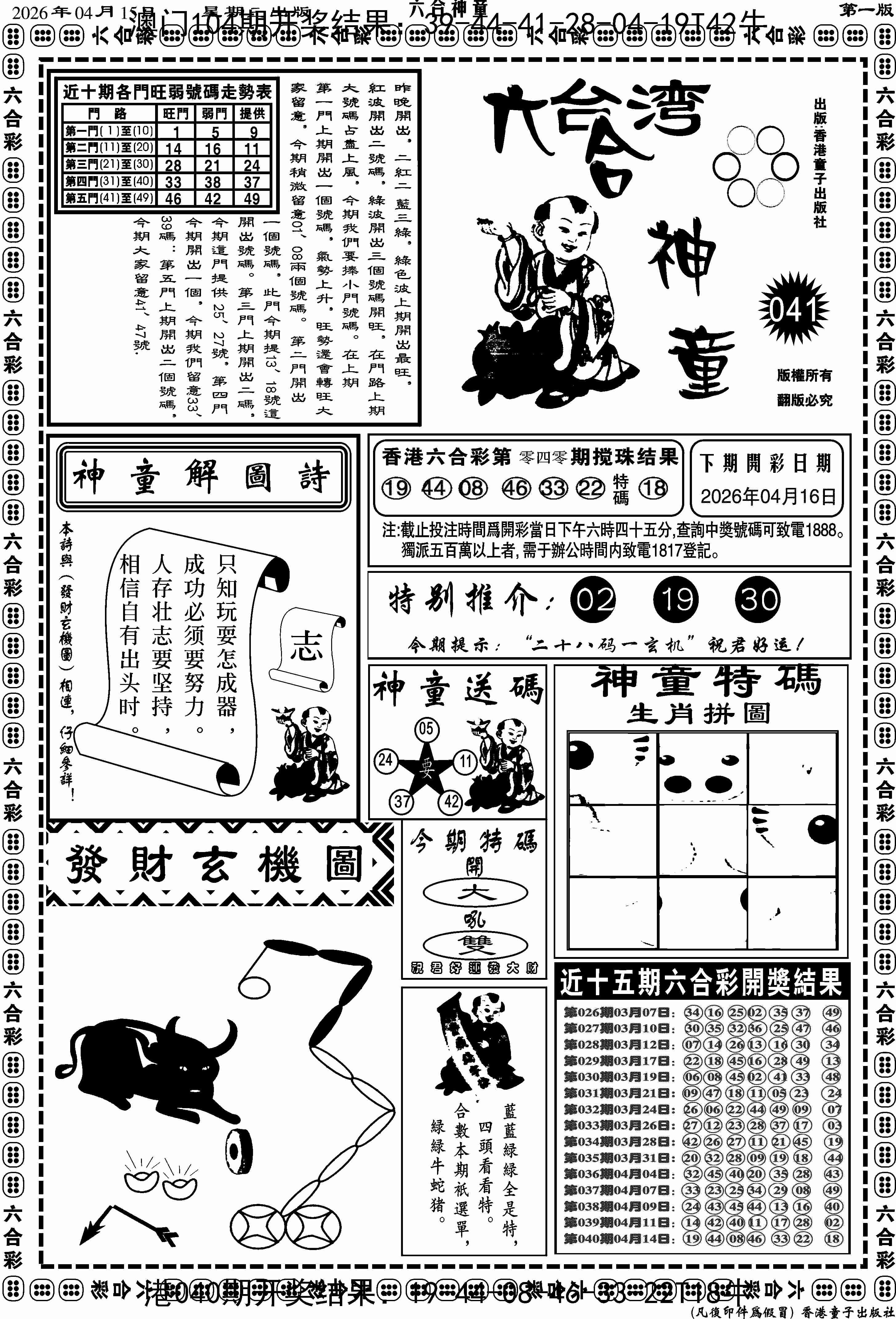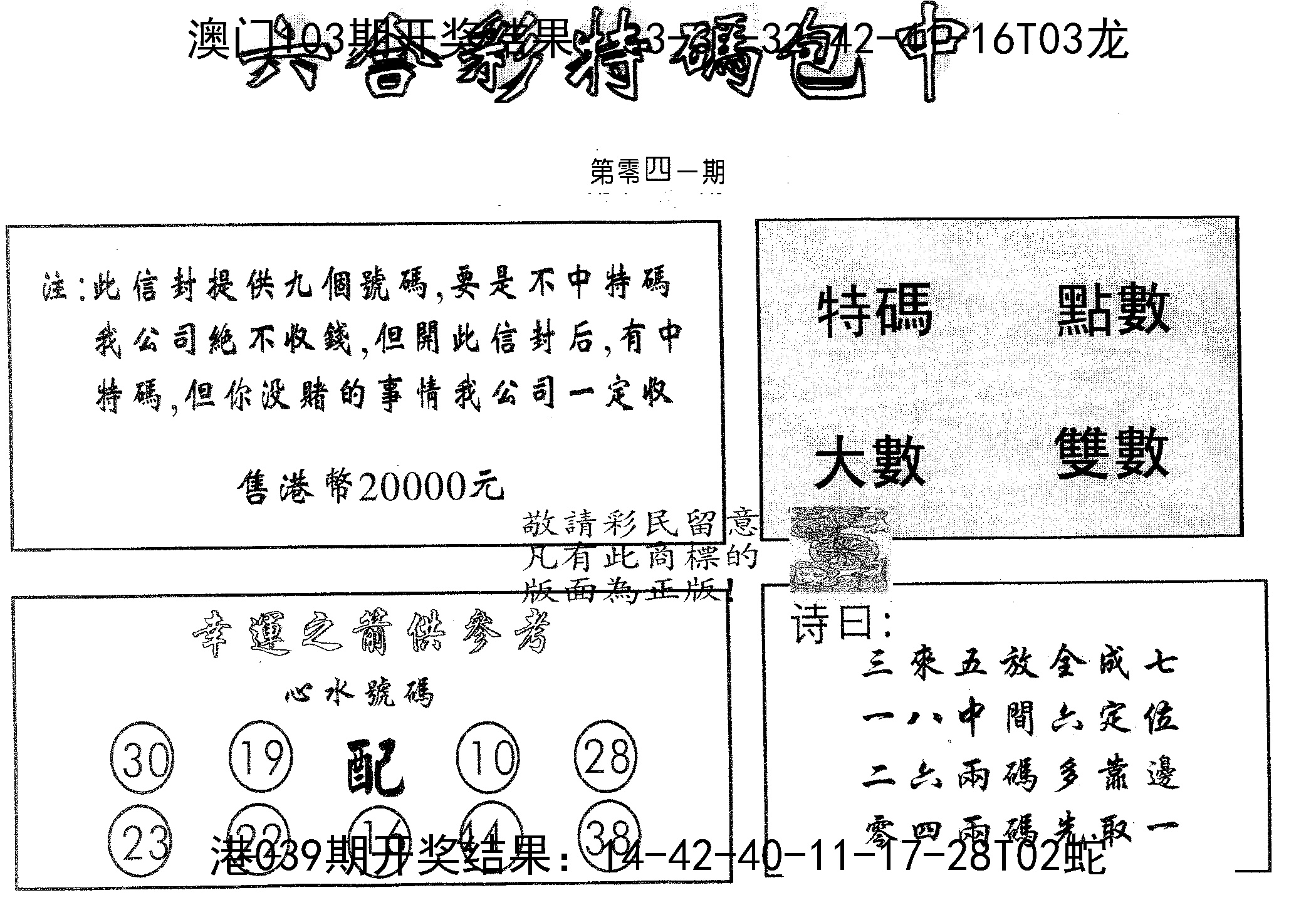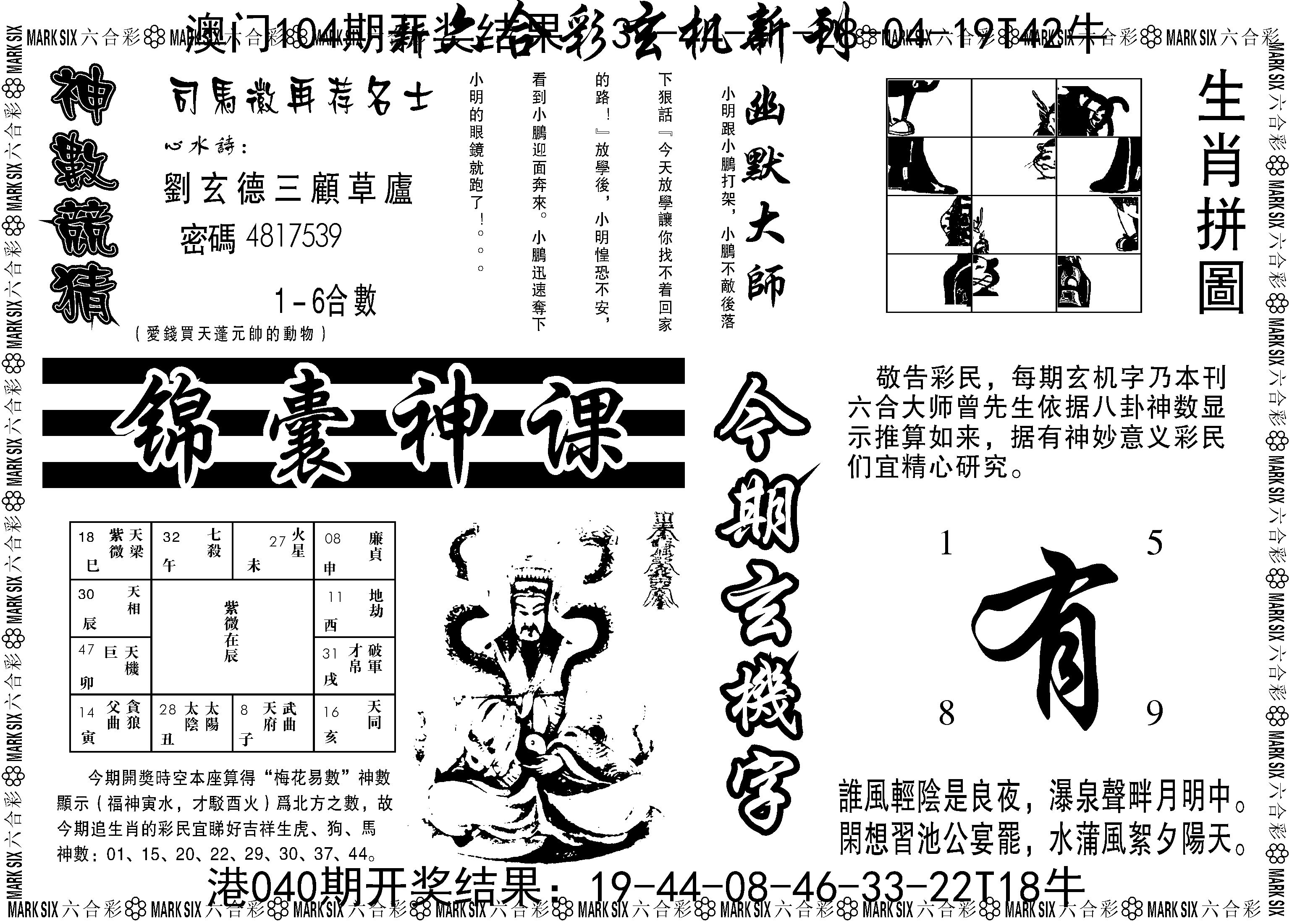 ·香港六合彩葡京印刷图库提倡有節制博彩,下重注須防上有父老下有妻小。