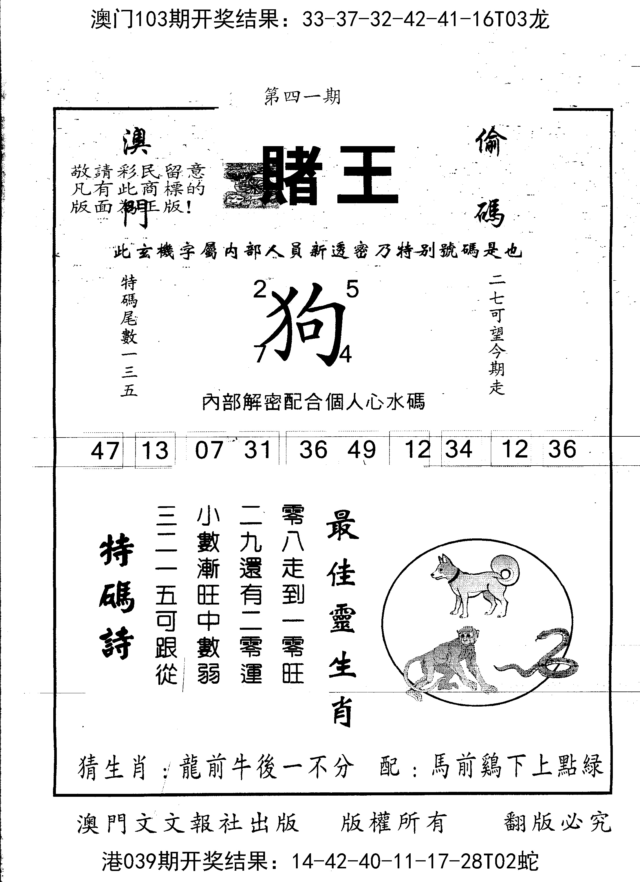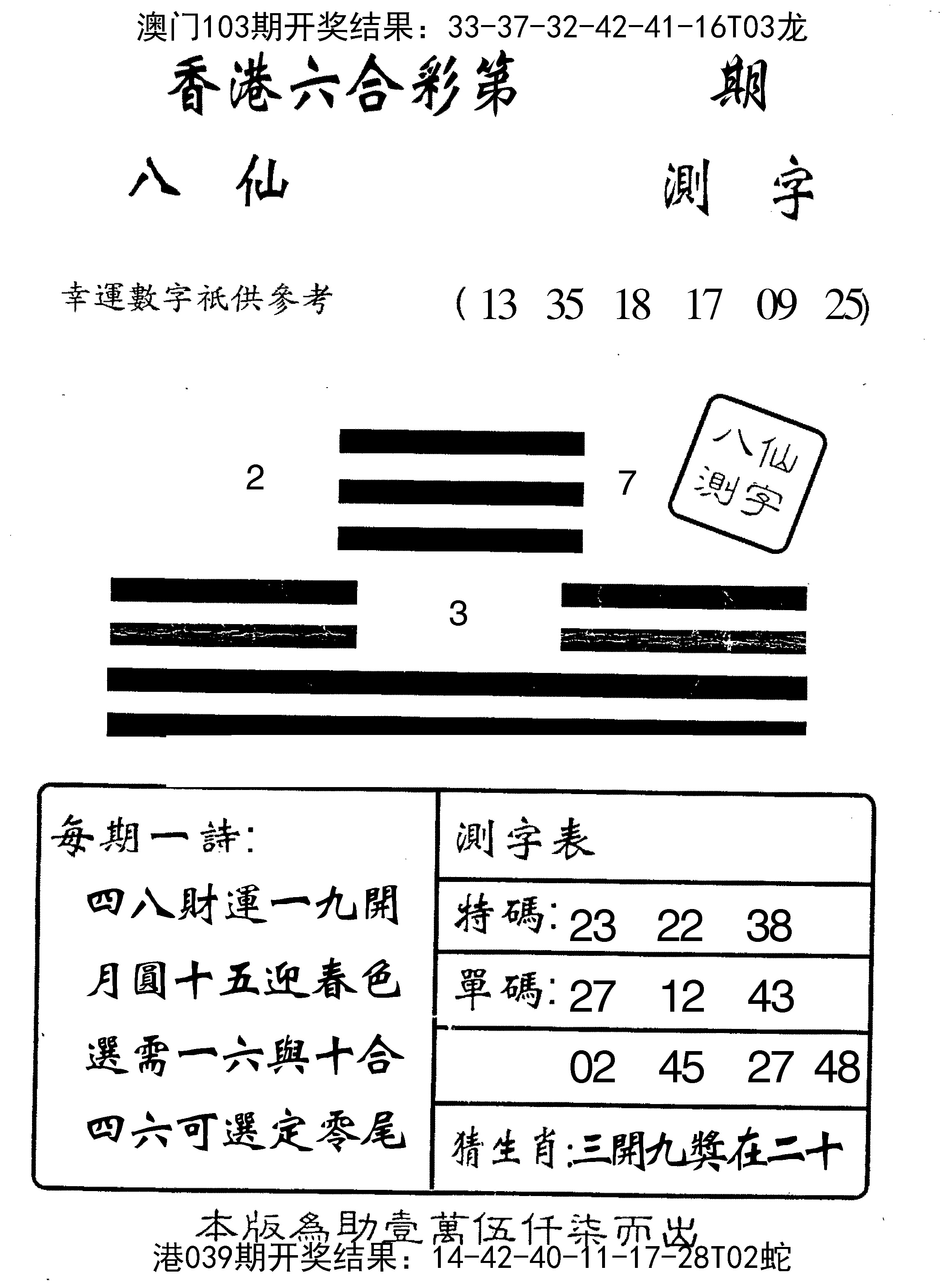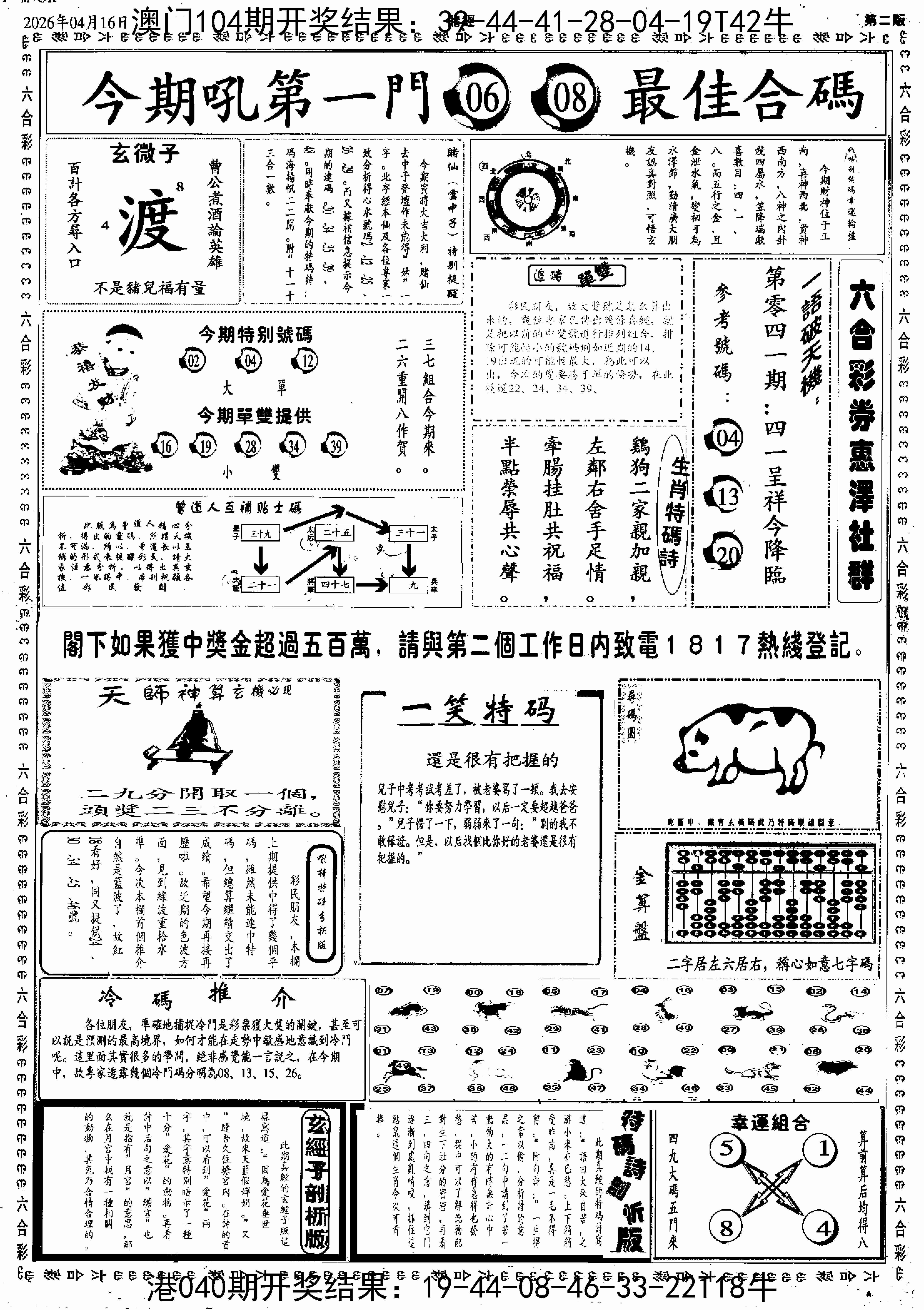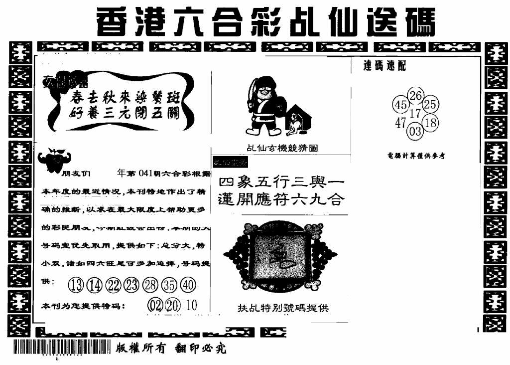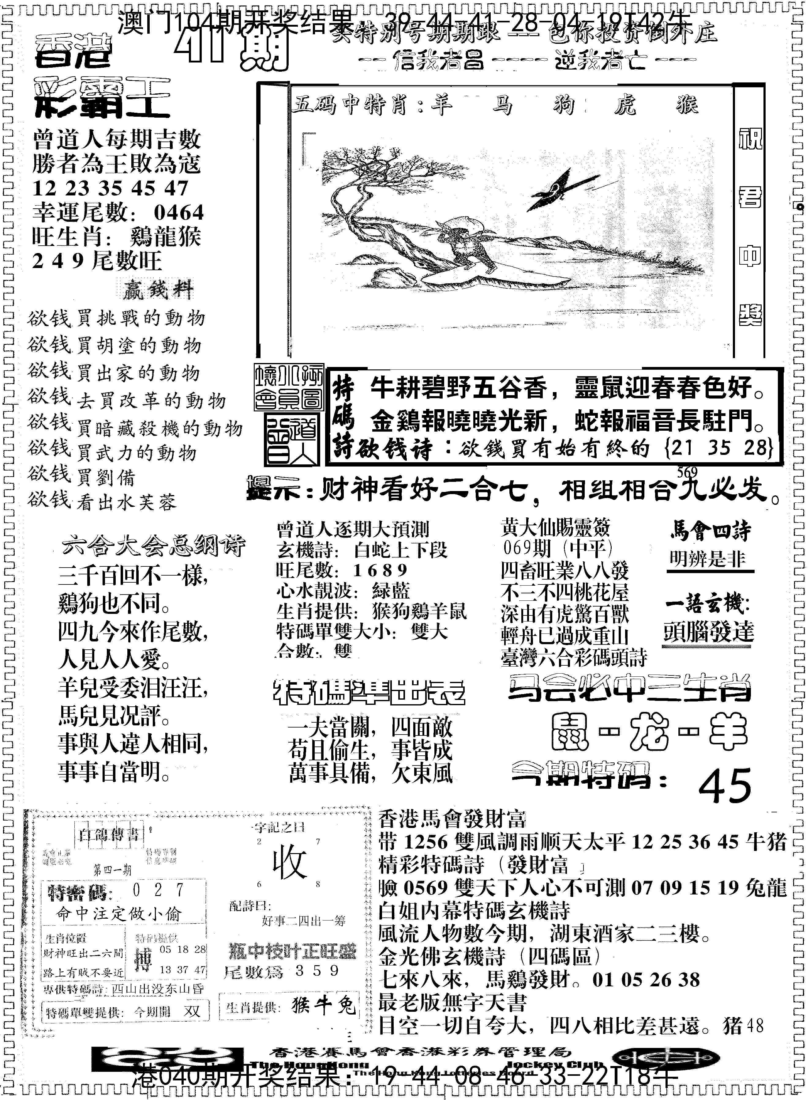 ·香港六合彩葡京印刷图库提倡有節制博彩,下重注須防上有父老下有妻小。