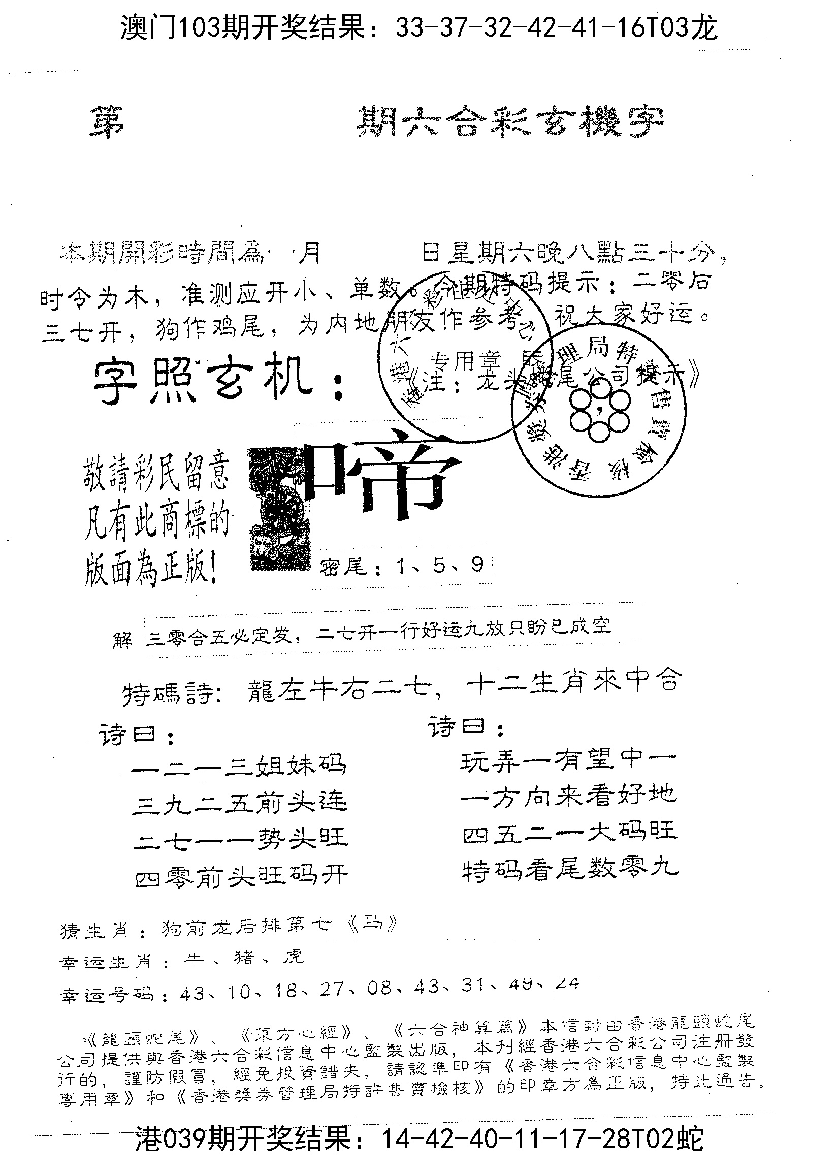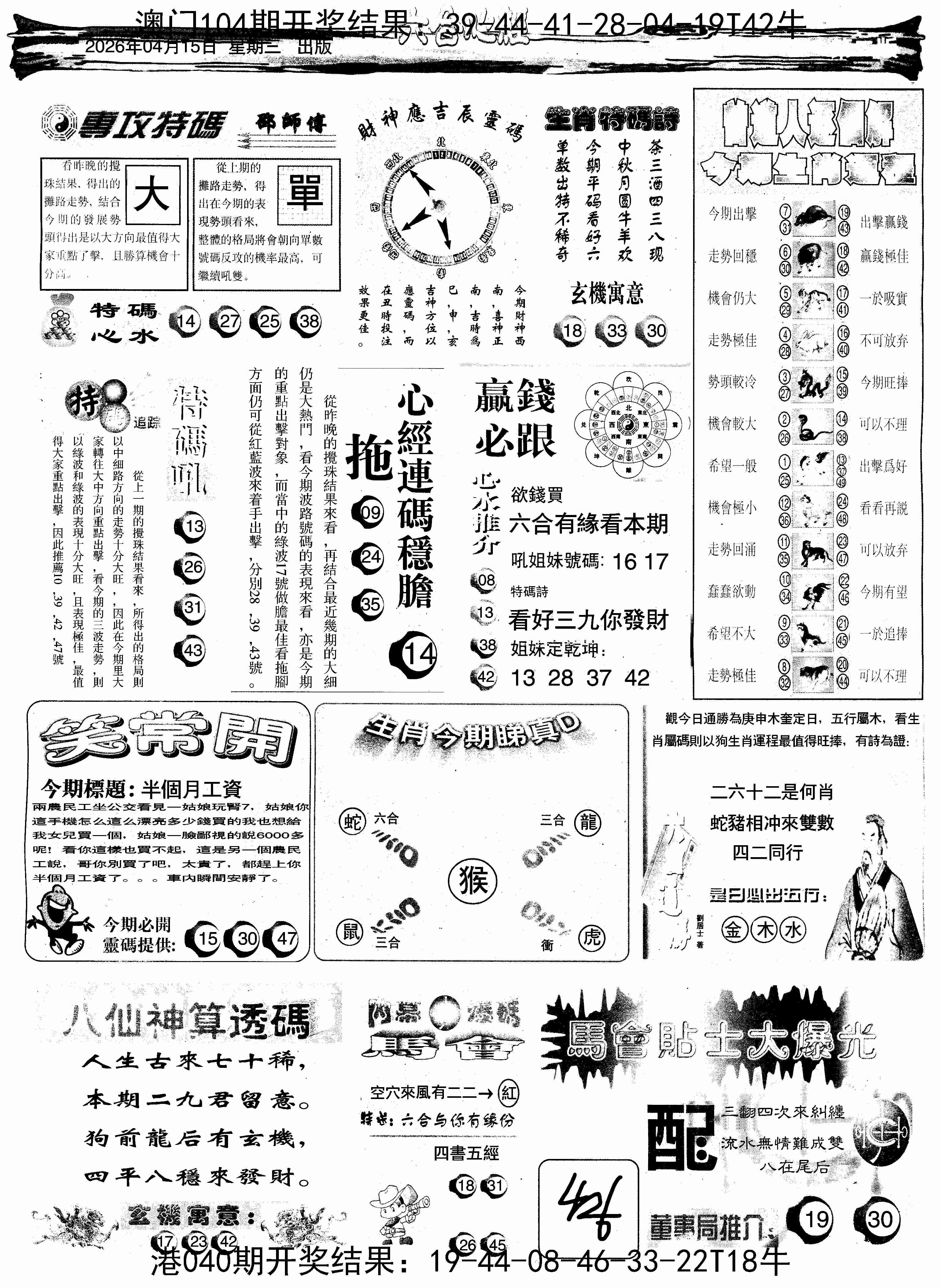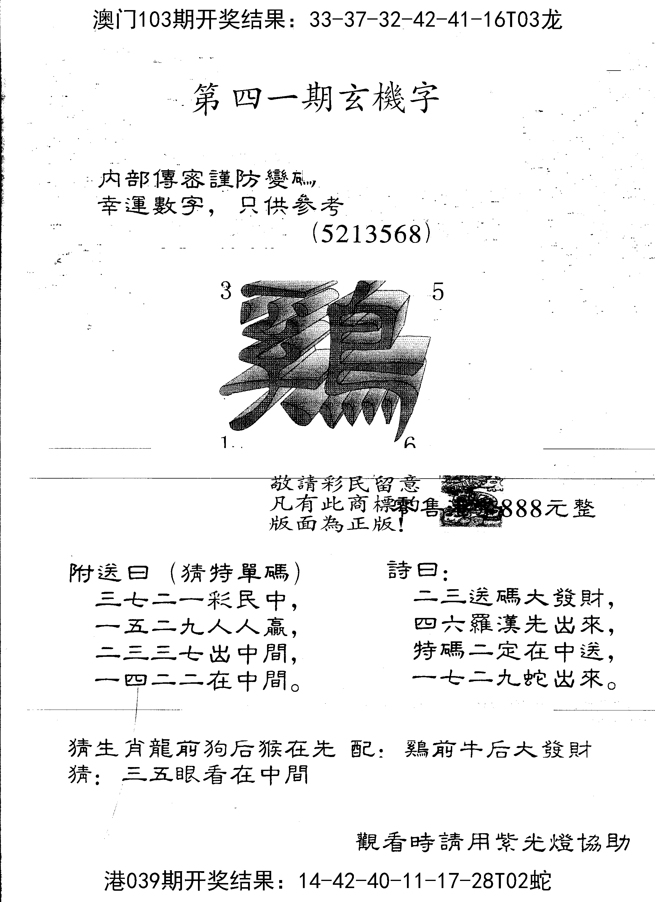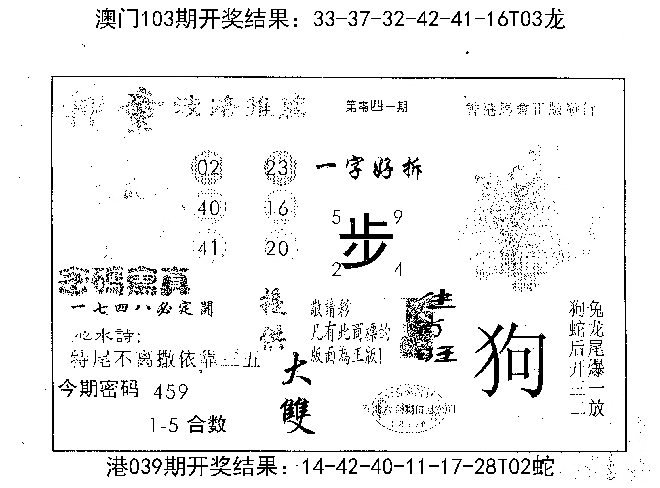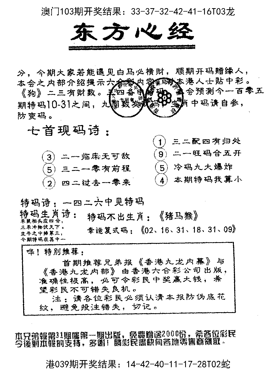 ·香港六合彩葡京印刷图库提倡有節制博彩,下重注須防上有父老下有妻小。