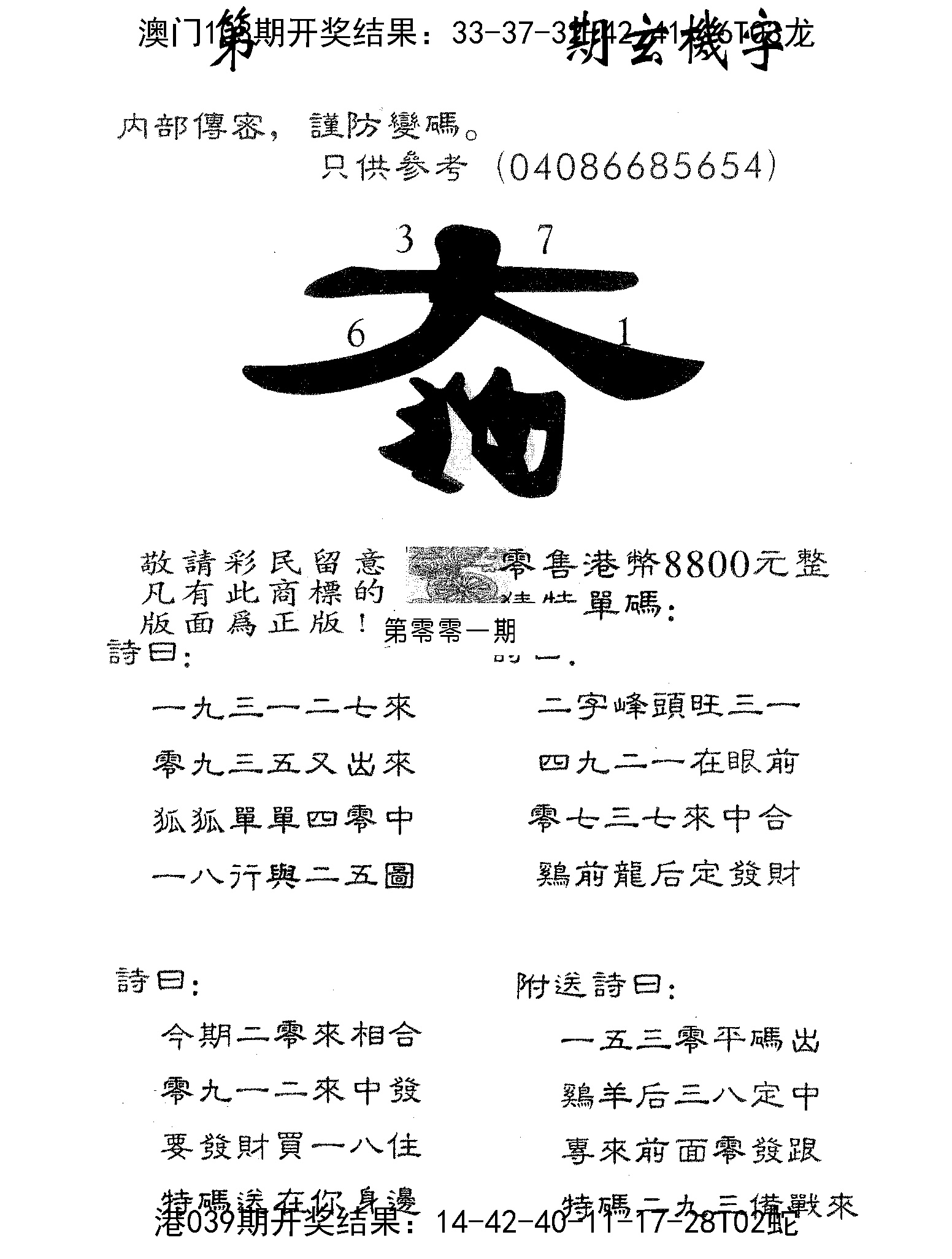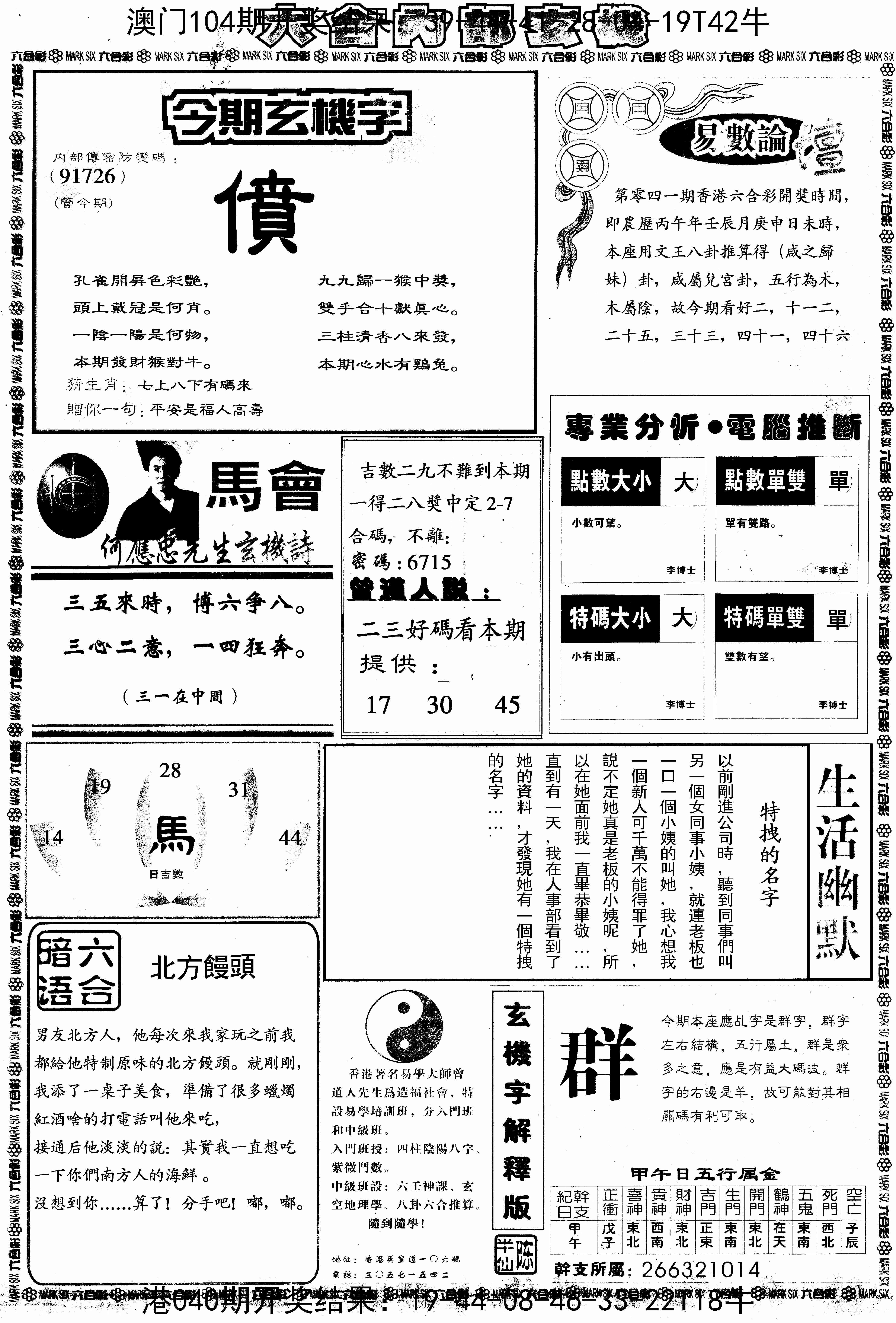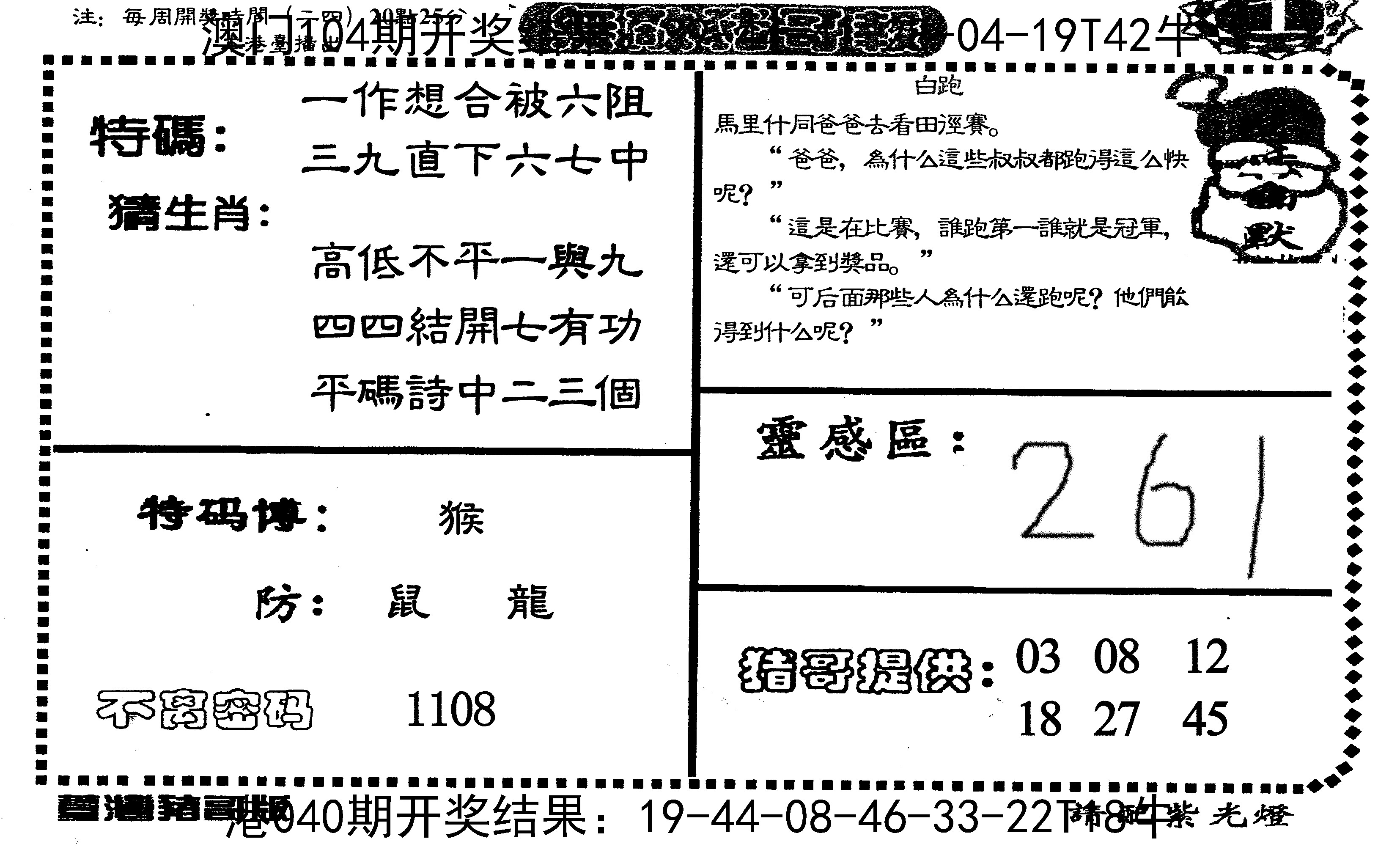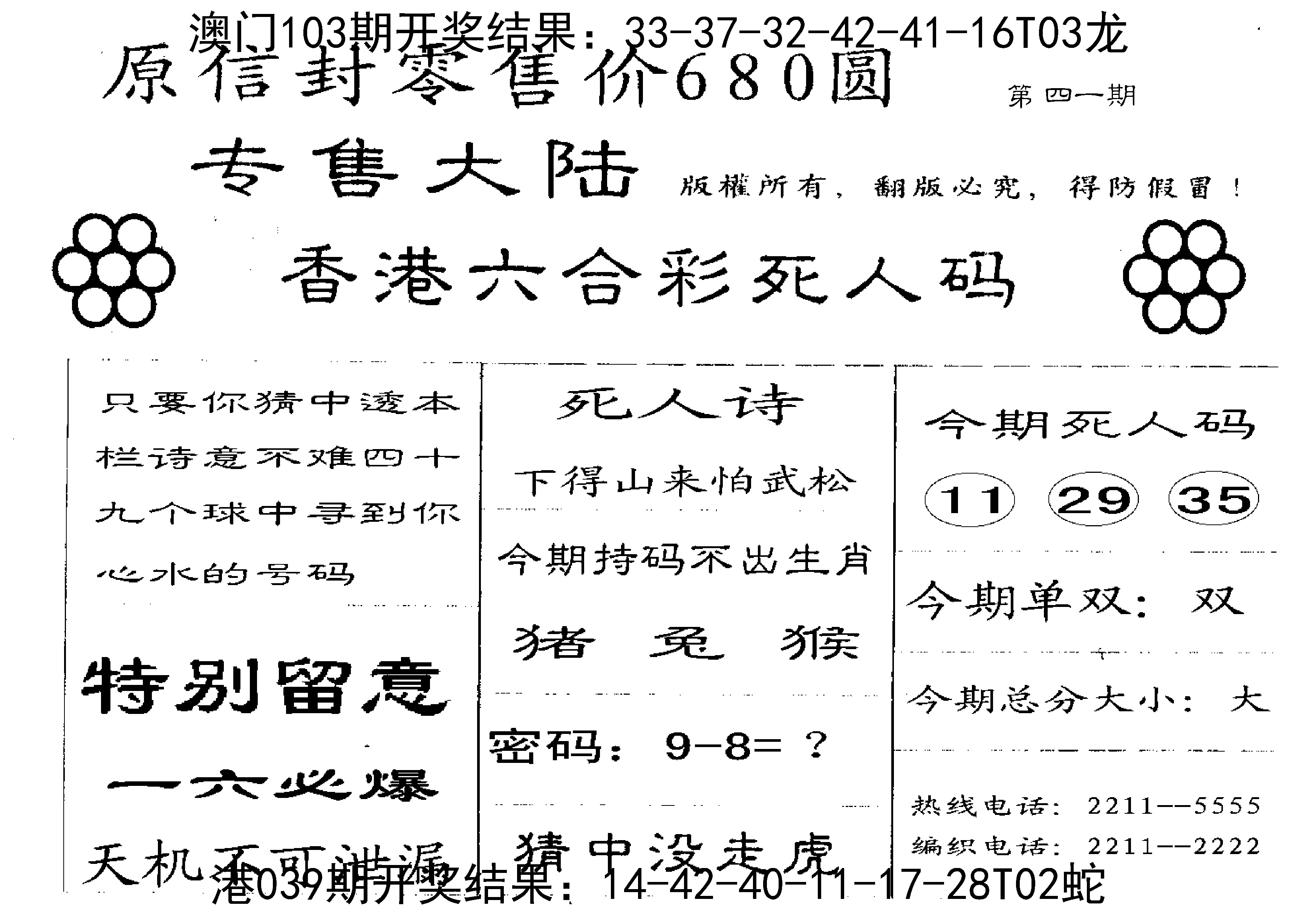 ·香港六合彩葡京印刷图库提倡有節制博彩,下重注須防上有父老下有妻小。
